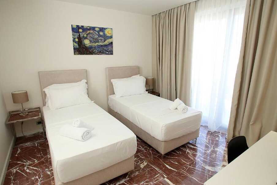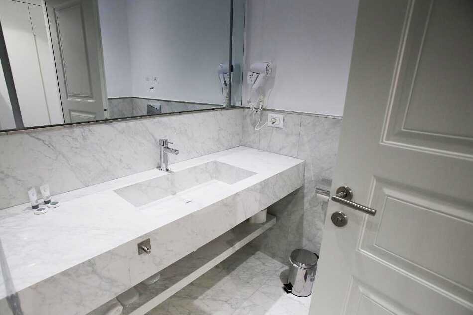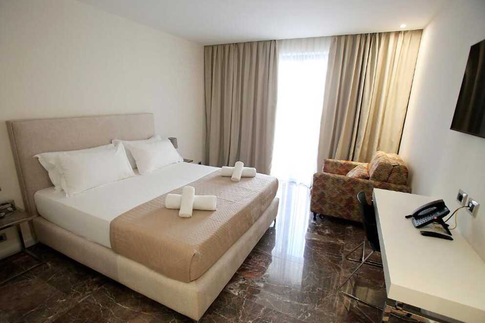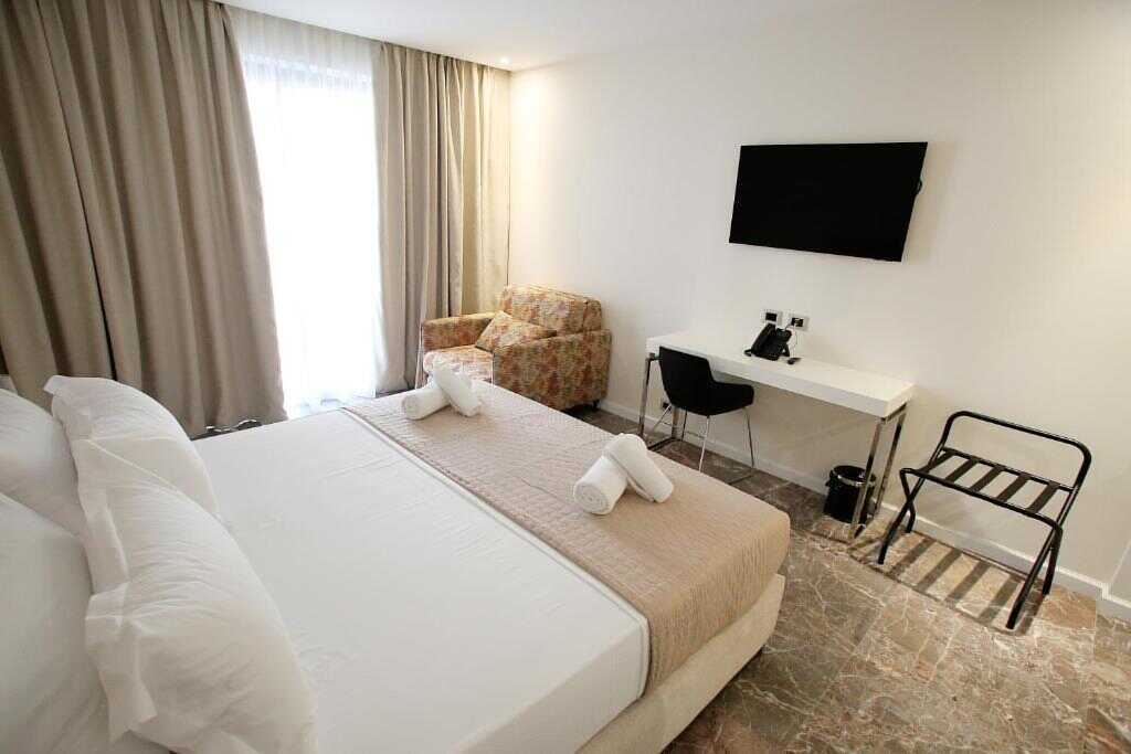 Dobbeltværelse med balkon. En dobbeltseng eller to enkeltsenge. Gratis wifi, aircondition og deponering. Tv. Hårtørrer. Badeværelse med badekar/bruser og toilet. Rengøring 7 gange om ugen.