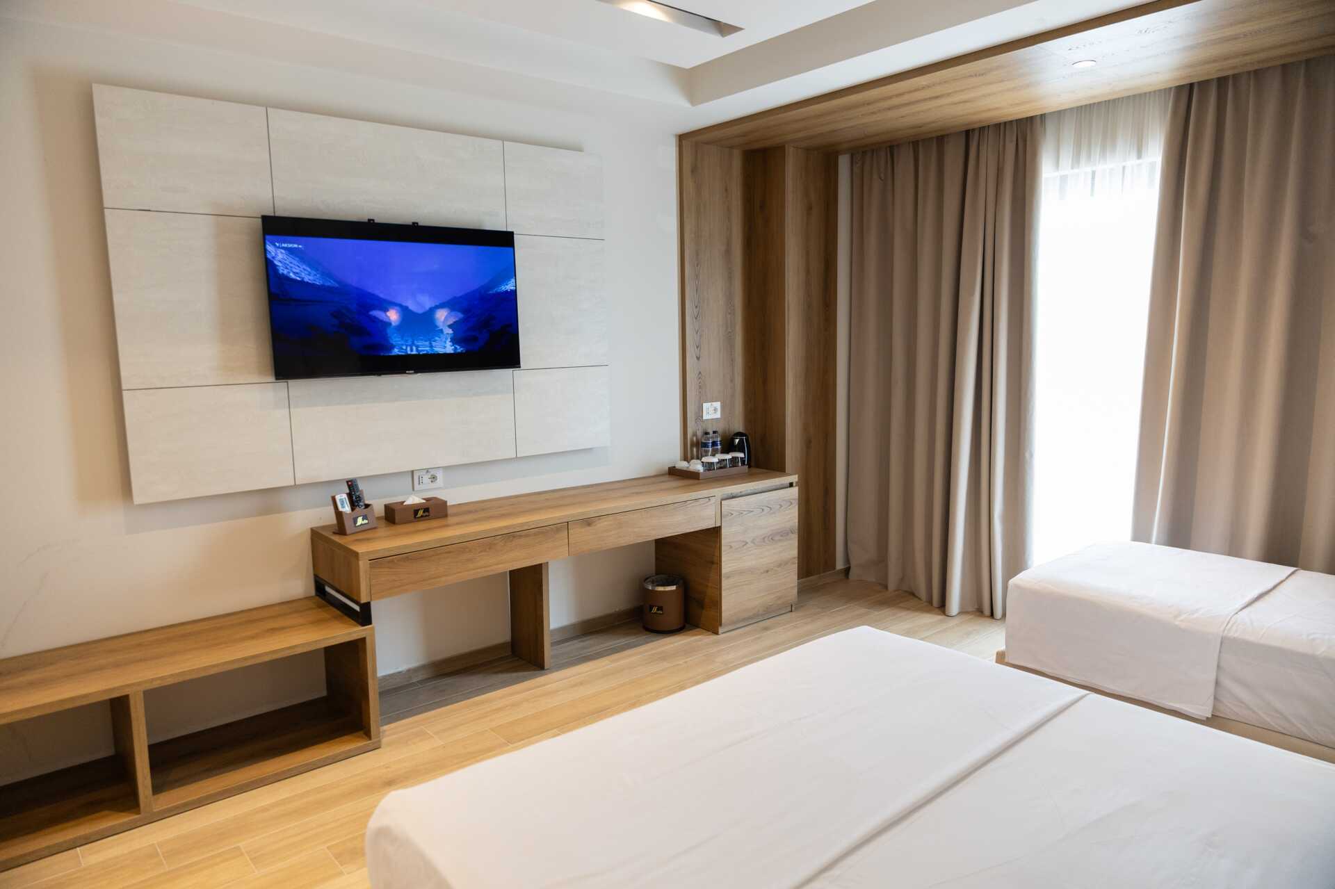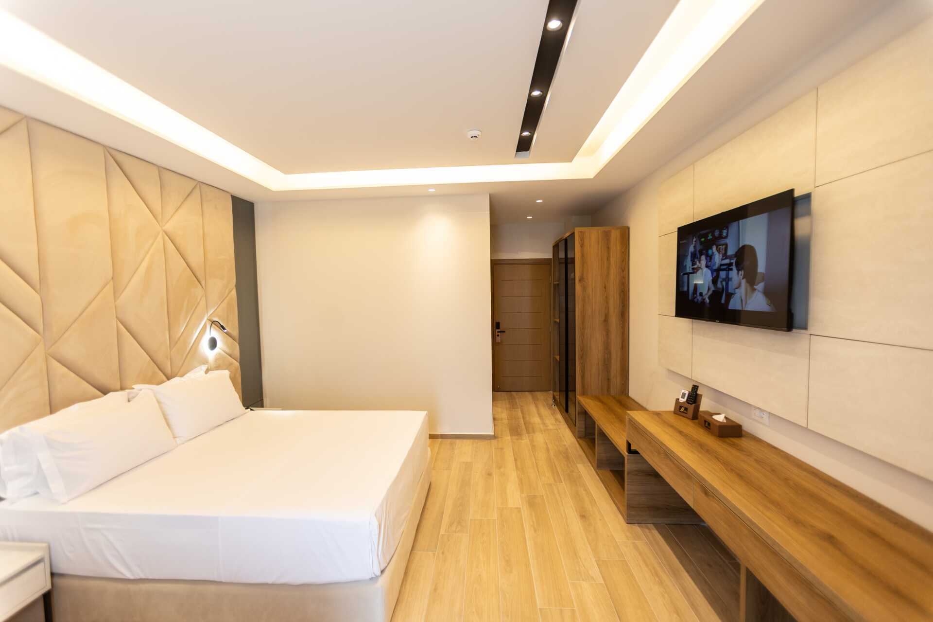 Dobbeltværelse med balkon eller terrasse. En dobbeltseng eller to dobbeltsenge. Mulighed for ekstra opredning i fold ud-seng. Gratis wifi, aircondition og deponering. Minibar. Tv med internationale kanaler. Hårtørrer. Badeværelse med badekar eller bruser samt toilet. Rengøring 7 gange om ugen.