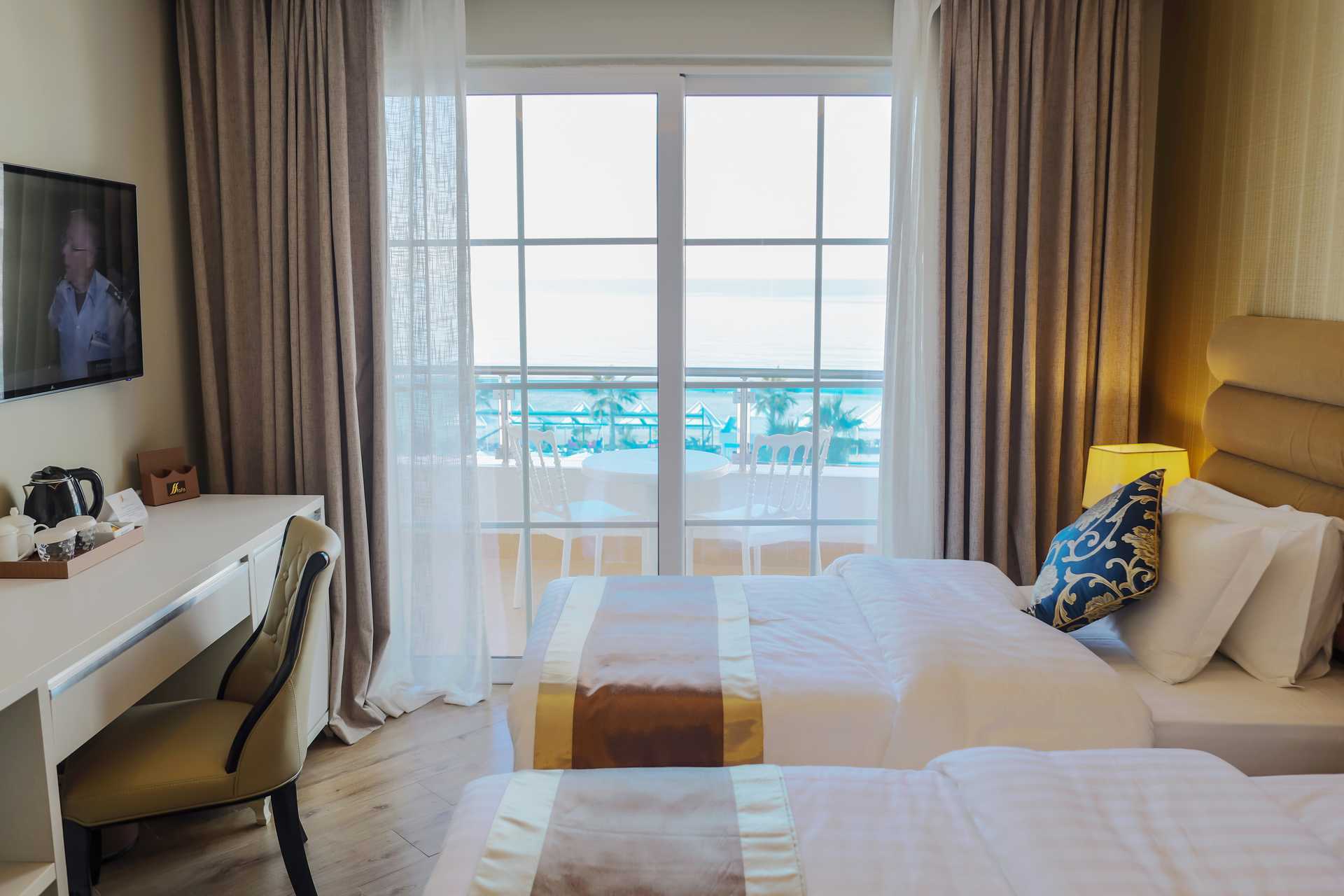 2-værelses lejligheder med balkon, nogle med havudsigt eller med delvis havudsigt. Soveværelse og kombineret opholdsrum med minikøkken. En dobbeltseng. Mulighed for ekstra opredning i en enkeltseng og i en sovesofa. Nogle lejligheder har væg til væg-tæpper. Minikøkken med køleskab, kogeplader og enkelt køkkenudstyr. Gratis wifi, aircondition og deponering. Hårtørrer. Badeværelse med bruser og toilet. Rengøring 7 gange om ugen.