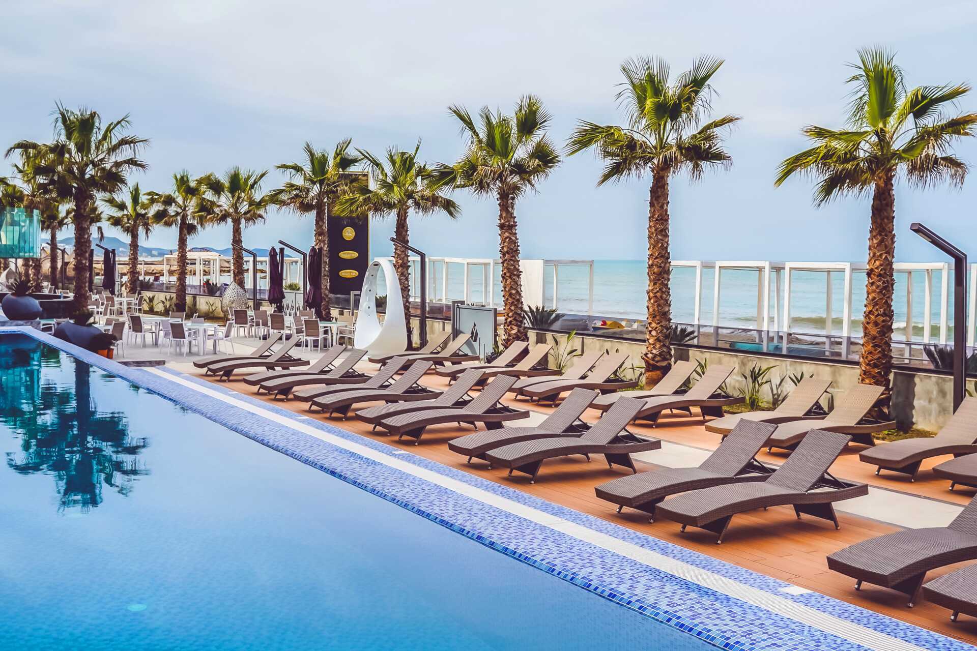 Très déçu de notre voyage en Albanie. L'hôtel n'est pas un 5 étoiles, le personnel à la réception ne parle pas tous anglais, c'est quand même le minimum pour un hôtel qui se dit 5 étoiles. Le personnel en général est désagréable sauf 2 ou 3 personnes qui sont au restaurant, les femmes de ménage, et les personnes qui donnent les serviettes. Ceux qui sont au bar cocktail sont désagréables au possible. Le all inclusive n'en est pas un, juste bière, Raki, et cognac ( ces 2 là étant au passage des digestifs ) Nous voyageons pas mal, et en all inclusive, nous n'avons jamais rencontré ce problème. Les cocktails sont chers et les tarifs apparemment datent de l'année passée. La plage est sale, beaucoup de mégots dans le sable et le tas d'algues mis en vrac sur la plage avec un tracteur où il a fallu déménager tous les transats pour qu'il remonte sur la plage alors qu'il y avait plein de monde c'est juste INADMISSIBLE ! Pas de snack l'après midi nos ados étaient déçus et idem 1ère fois que nous voyons cela en all inclusive. Le restaurant toujours la même chose, et surtout ni chaud, ni froid toujours tiède. Beaucoup d'enfants en bas âge et qui font ce qu'ils veulent, les parents qui mettent des dessins animés fort au restaurant à leurs bambins. Une clientèle non respectueuse qui se comporte comme des mal élevés. Un spa où il n'y a pas de personnel et où on trouve des enfants qui jouent au ballon ou avec des grandes bouées dans la piscine du spa, du jamais vu.... Des grandes chaises de maîtres nageurs sur la plage sans maîtres nageurs??? Bref rien qui va, nous concernant l'Albanie c'était la 1ère fois et la dernière. Un conseil : faites venir des managers des chaînes espagnoles pour apprendre au personnel à travailler et à respecter les touristes parce que là c'est de l'amateurisme ! Les photos sur internet ne représentent pas la réalité, par exemple Ksamil et la main et les plages en général car en bordure de plage lorsque l'on est dans la mer jusqu'à la taille on ne voit pas ses pieds. Un seul point positif : la literie, nous avons bien dormi