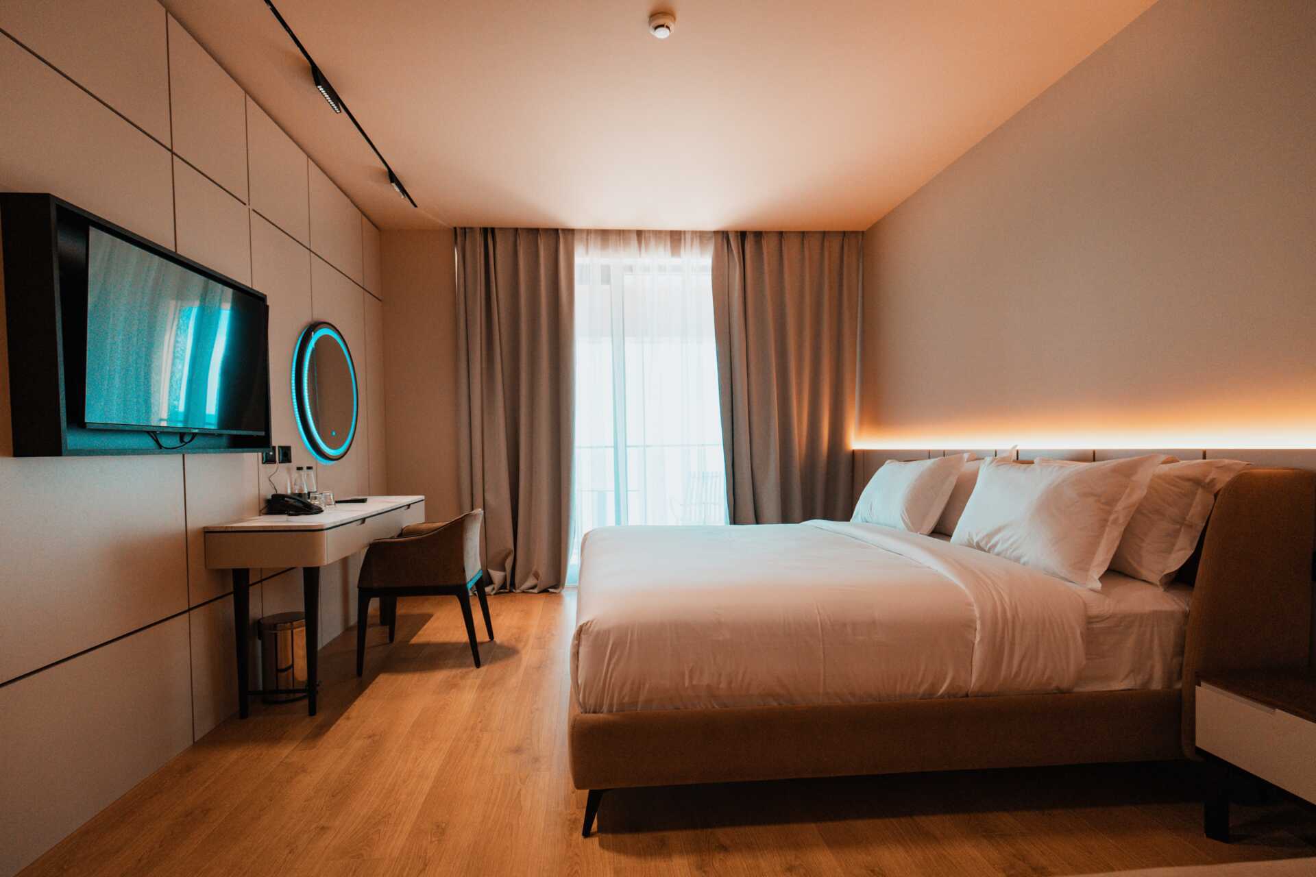 Dobbeltværelser med balkon, nogle med havudsigt. En dobbeltseng eller to enkeltsenge. Mulighed for ekstra opredning i sovesofa eller fold ud-seng. Gratis wifi, aircondition og deponering. Køleskab. Tv med internationale kanaler. Hårtørrer. Badeværelse med bruser og toilet. Rengøring 7 gange om ugen.