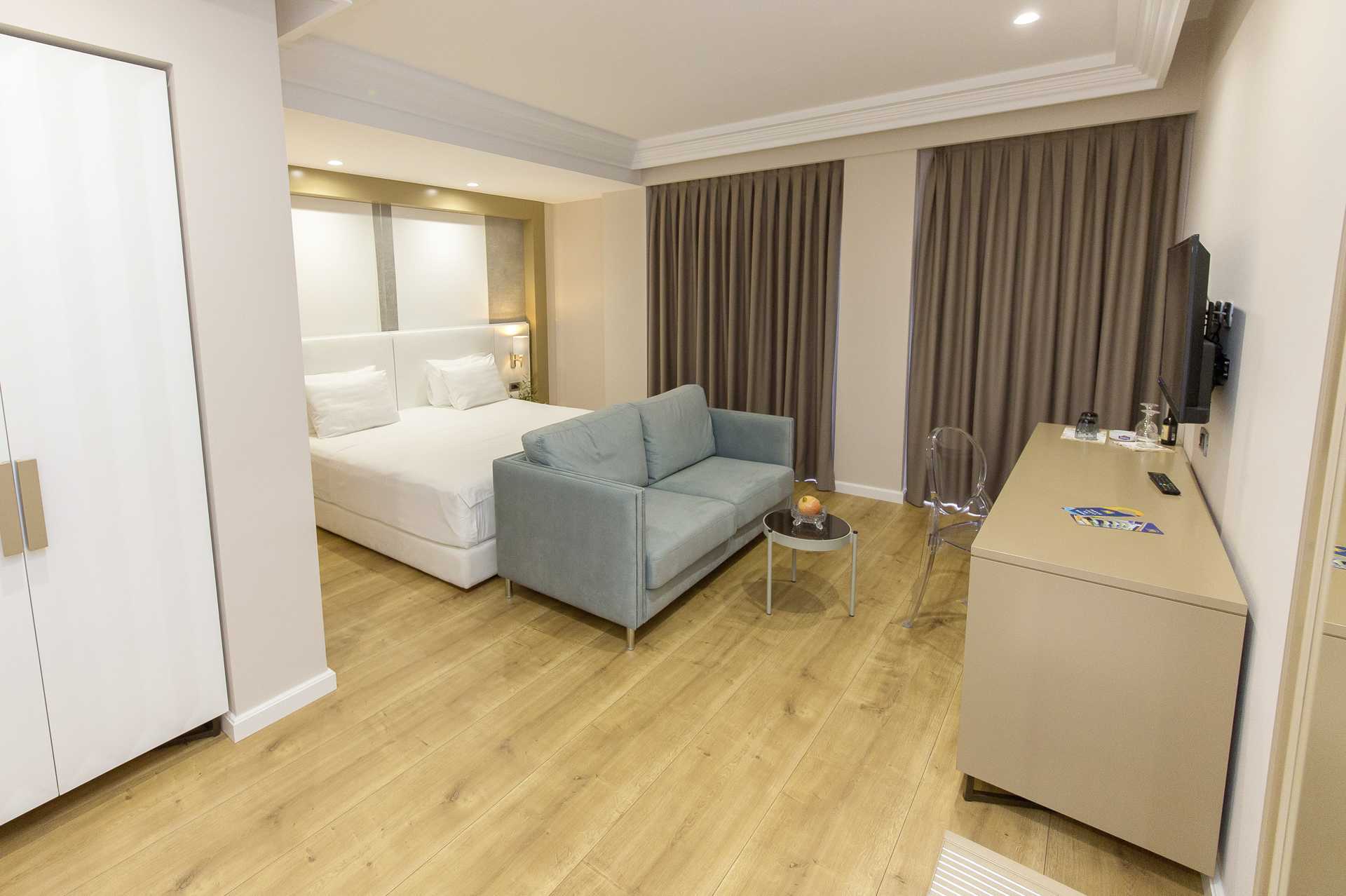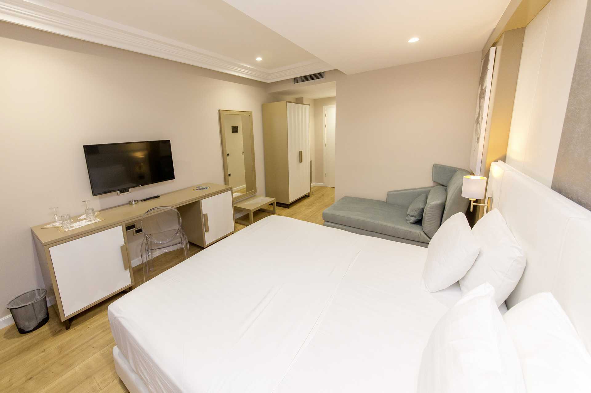 Superior-værelser med balkon med havudsigt eller delvis havudsigt. En dobbeltseng og mulighed for ekstra opredninger i sovesofaer. Gratis wifi, aircondition og deponering. Køleskab. Tv med lokale kanaler. Hårtørrer. Badeværelse med bruser og toilet. Rengøring 7 gange om ugen.