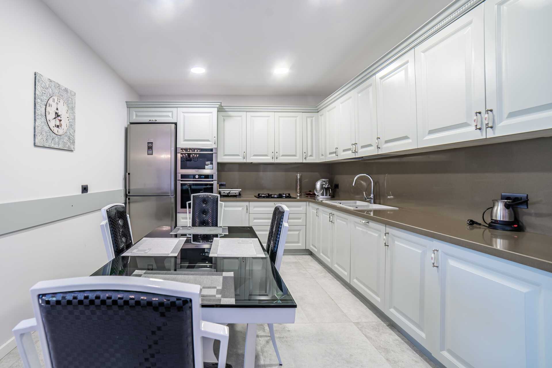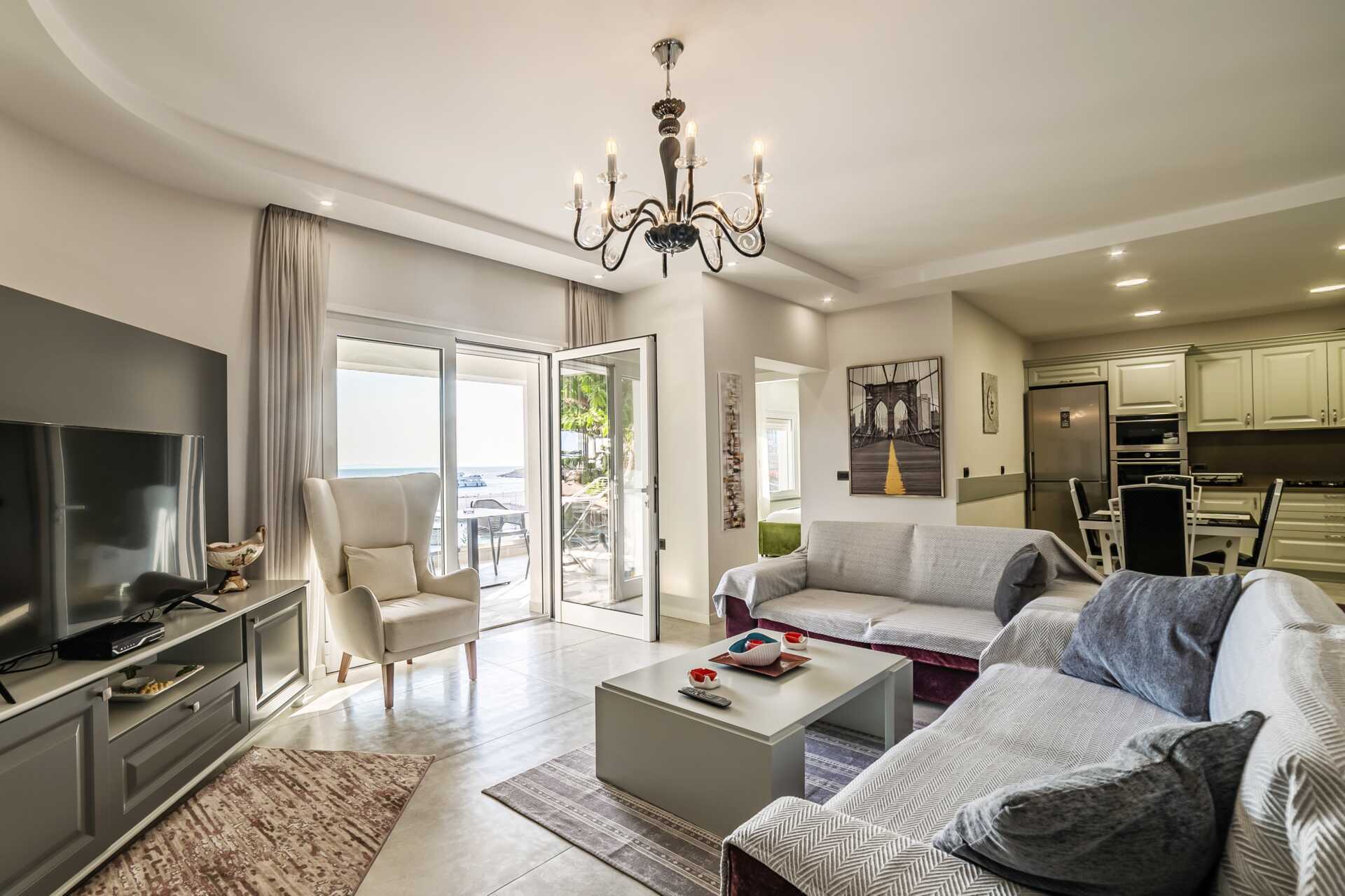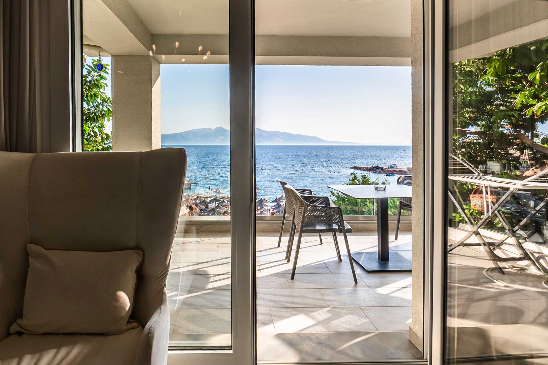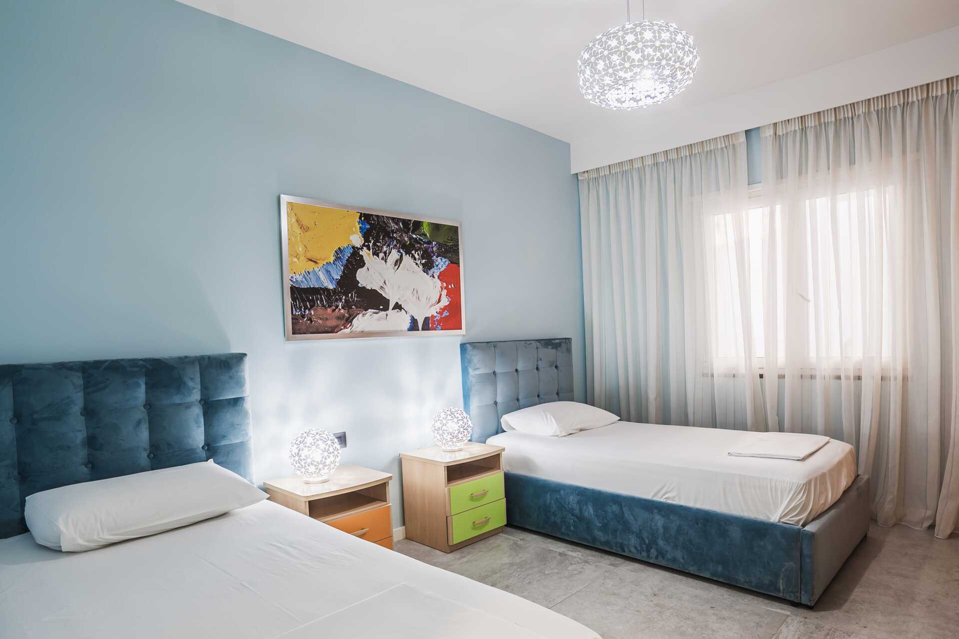 4-værelses lejlighed med balkon med havudsigt. 4-værelses lejlighederne ligger i en separat bygning. Tre soveværelser og et kombineret opholdsrum og køkken. To dobbeltsenge og to enkeltsenge. Veludstyret køkken med køleskab, lille fryser, kogeplader, mikrobølgeovn, kaffemaskine og enkelt køkkenudstyr. Gratis wifi, aircondition og deponering. Tv med internationale kanaler. To badeværelser med bruser og toilet. Rengøring 7 gange om ugen.