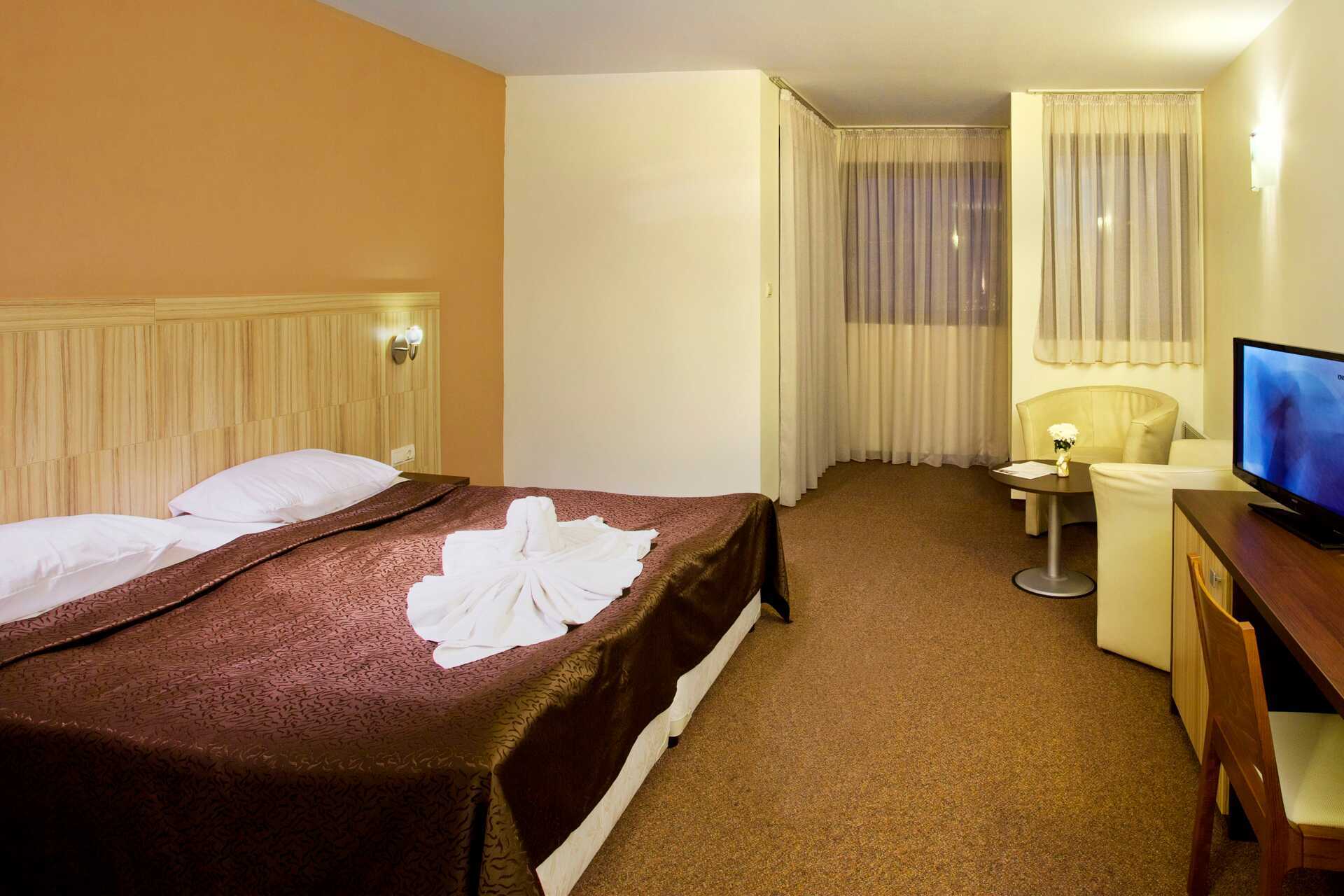 Familie-værelser med balkon. Værelserne består af et soveværelse med dobbeltseng og et opholdsrum. Mulighed for ekstra opredning i sovesofa. Gratis wifi, deponering og aircondition til opvarmning. El-kedel og faciliteter til at lave kaffe og te. Tv med internationale kanaler. Badeværelse med badekar eller bruser og toilet. Rengøring 7 gange om ugen.