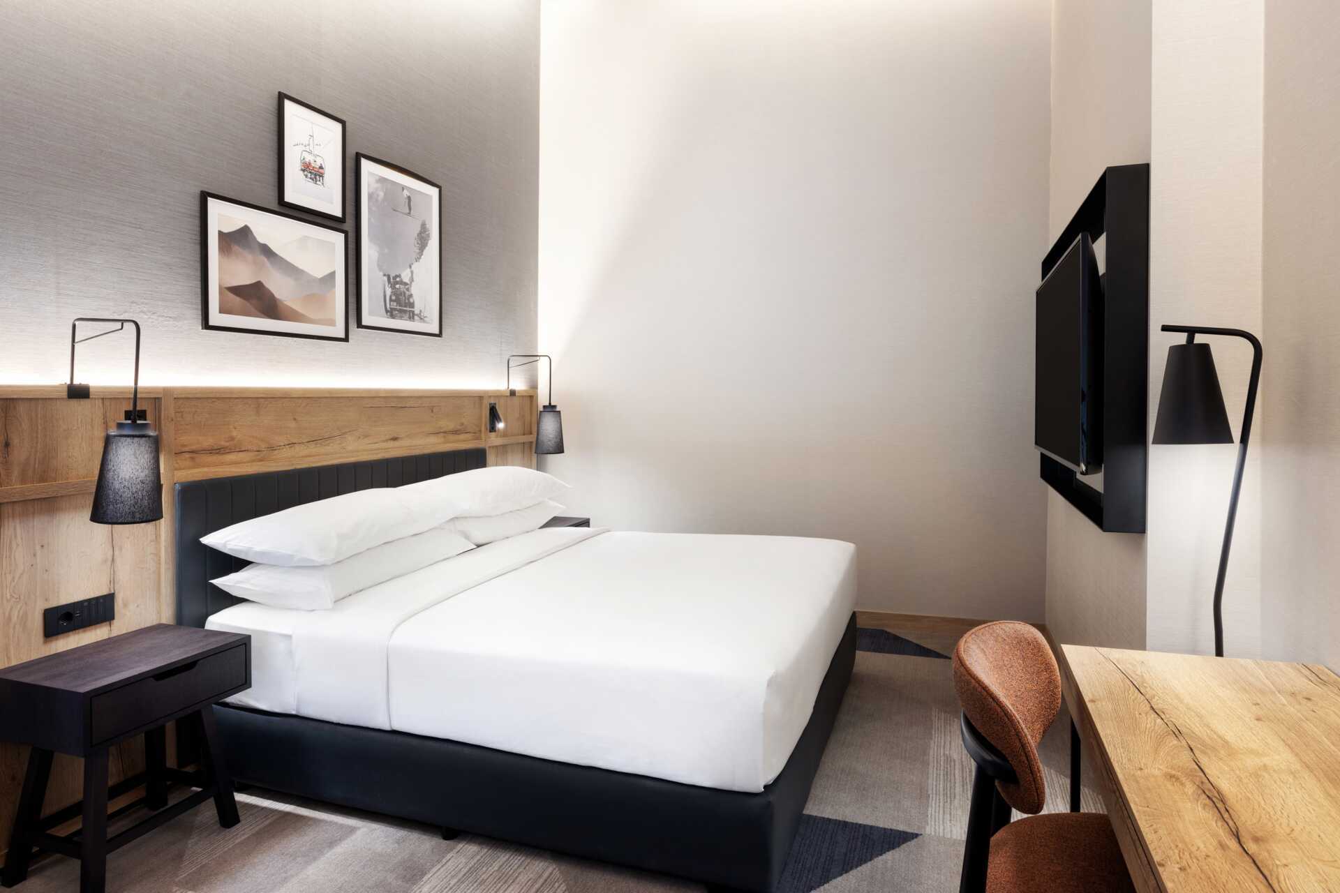 Dobbeltværelse med balkon. En dobbeltseng. Mulighed for ekstra opredning i sovesofa. Gratis wifi, deponering og varme via aircondition. Minibar. El-kedel og kaffe/te. Tv med internationale kanaler. Væg til væg-tæppe. Strygejern og strygebræt. Hårtørrer. Badeværelse med bruser og toilet. Rengøring 6 gange om ugen.