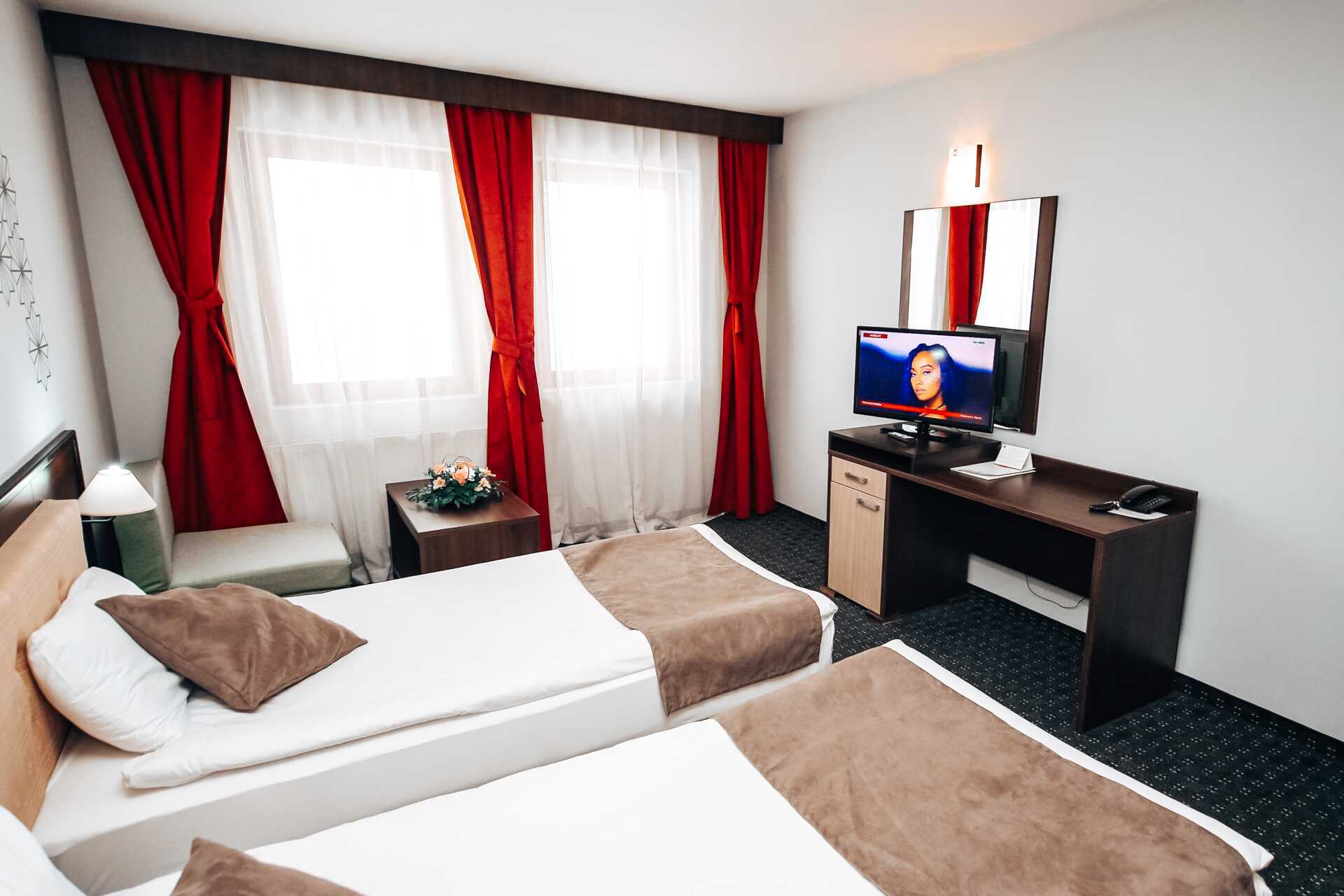 Dobbeltværelser med balkon med udsigt over byen eller bjergene. En dobbeltseng eller to enkeltsenge. Mulighed for ekstra opredning i sovesofa. Gratis wifi, aircondition med varme og deponering. Køleskab. El-kedel. Tv med internationale kanaler. Hårtørrer. Badeværelse med bruser og toilet. Rengøring 7 gange om ugen.