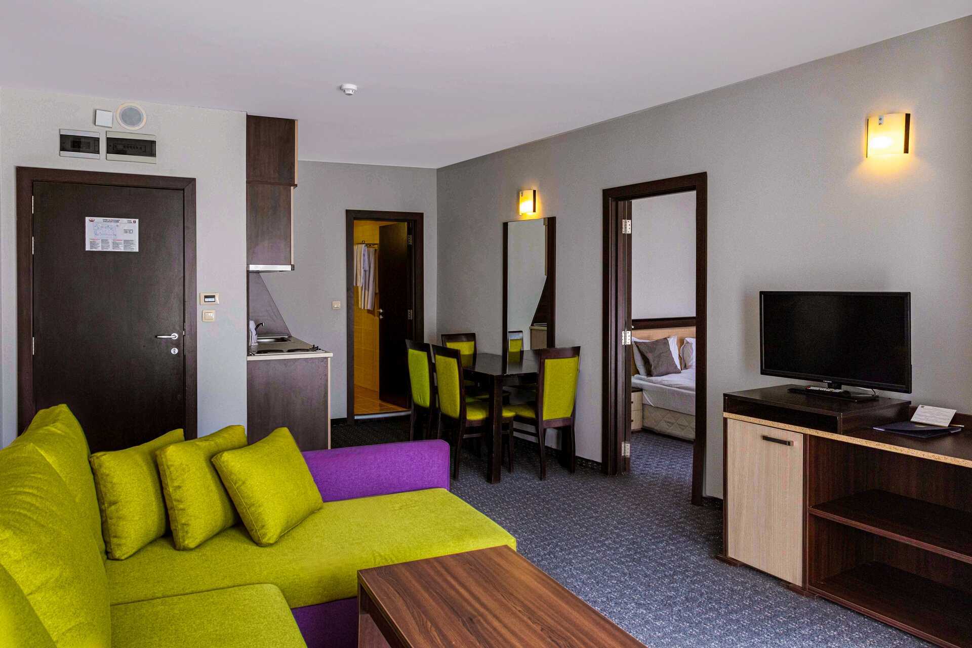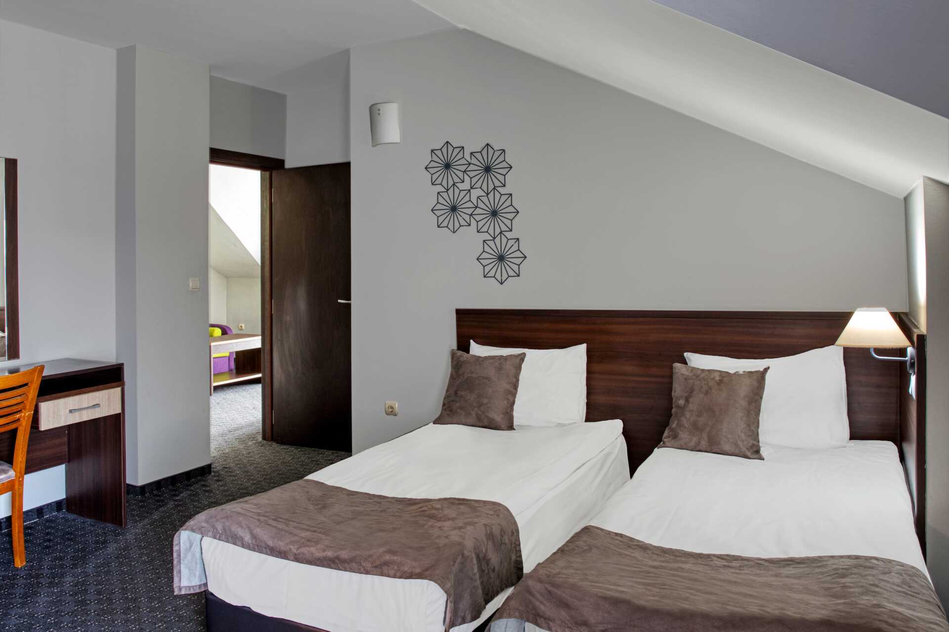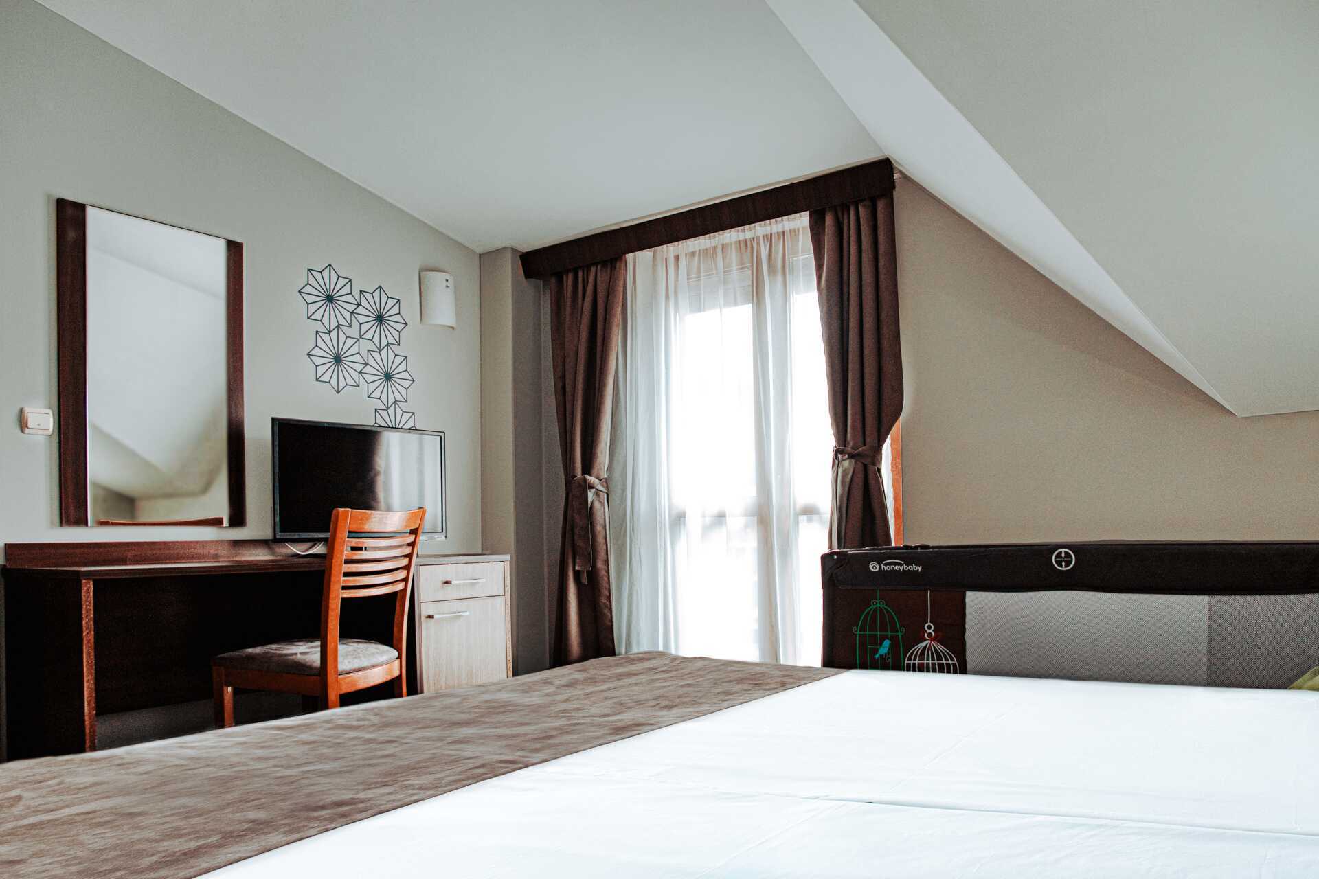 Familie-værelser med balkon med udsigt over byen eller bjergene. Familie-værelserne består af et soveværelse og et opholdsrum. To enkeltsenge. Mulighed for ekstra opredning i to sovesofaer. Gratis wifi, aircondition med varme og deponering. Køleskab. Tv med internationale kanaler. Væg til væg-tæppe. Hårtørrer. Badeværelse med bruser og toilet. Rengøring 7 gange om ugen.