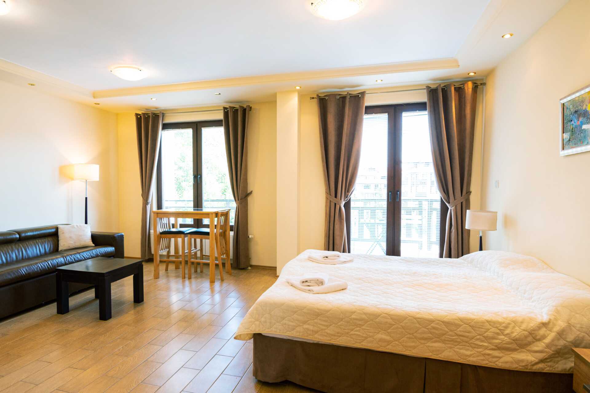 Familie-værelser med balkon og bjergudsigt. Et soveværelse med dobbeltseng og et opholdsrum med mulighed for to ekstra opredninger i en sovesofa. Gratis wifi, aircondition med varme og deponering. Køleskab. El-kedel og kaffe og te - vand og kaffe og te indgår ved ankomst - genopfyldning mod betaling. Tv med internationale kanaler. Rengøring 7 gange om ugen.