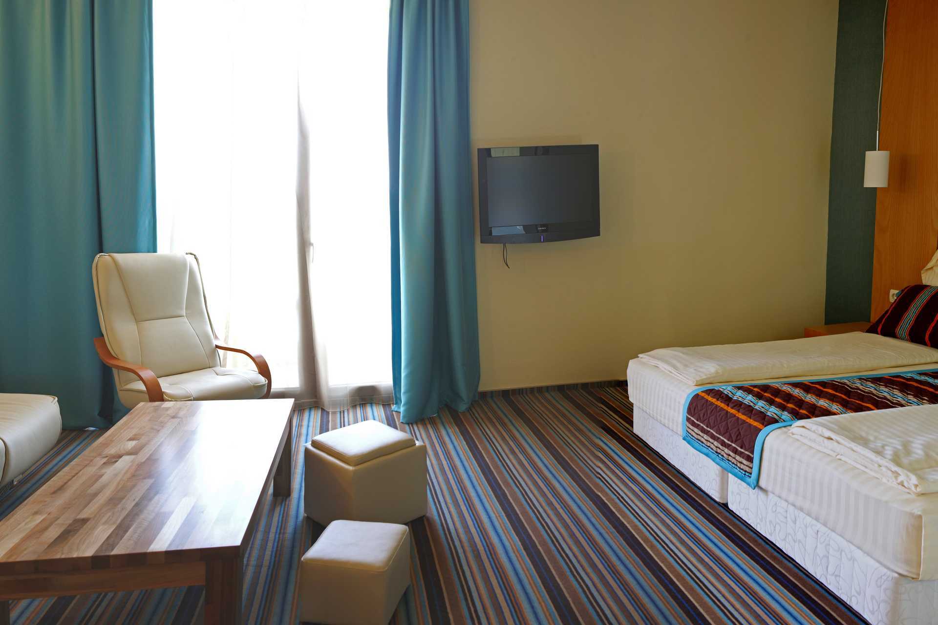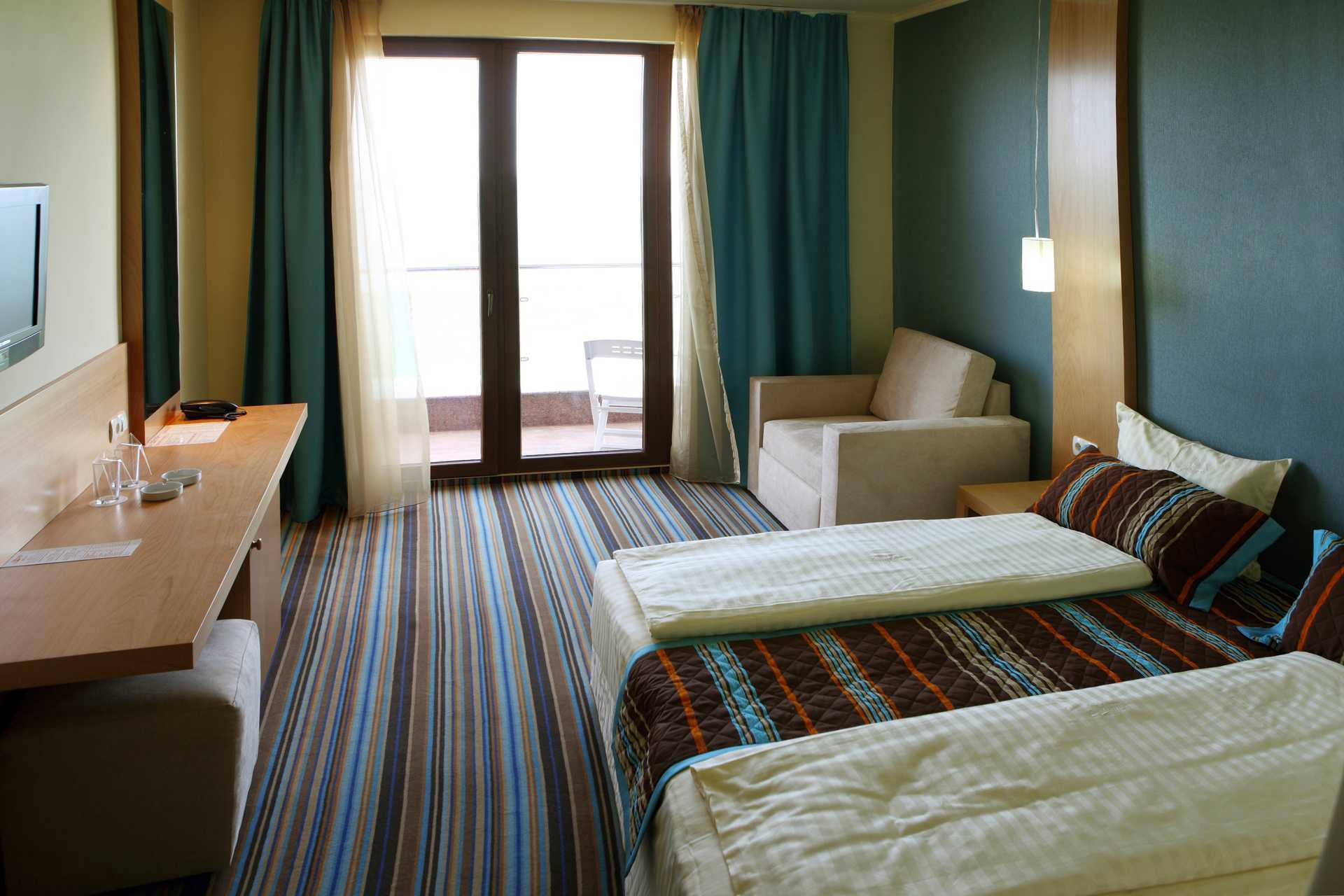 Dobbeltværelser med balkon, nogle med havudsigt. En dobbeltseng eller to enkeltsenge. Mulighed for ekstra opredning i fold ud-stol/sofa. Gratis wifi og aircondition. Køleskab. El-kedel, te og kaffe. Tv med internationale kanaler. Væg til væg-tæppe. Hårtørrer. Badeværelse med badekar eller bruser samt toilet. Rengøring 7 gange om ugen.
