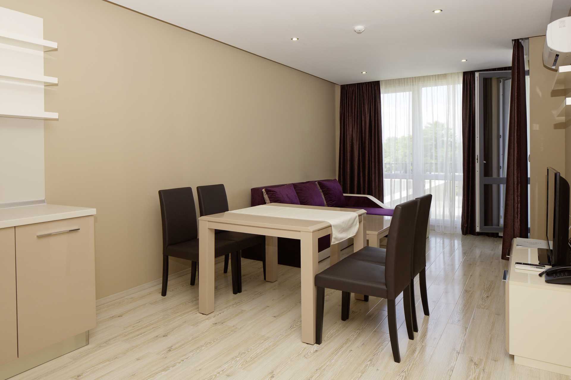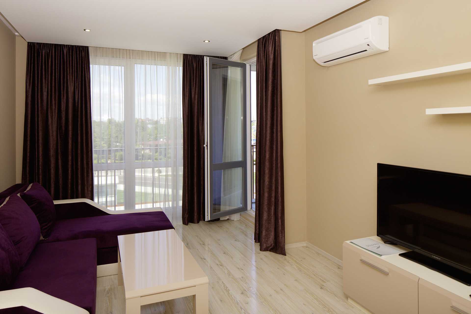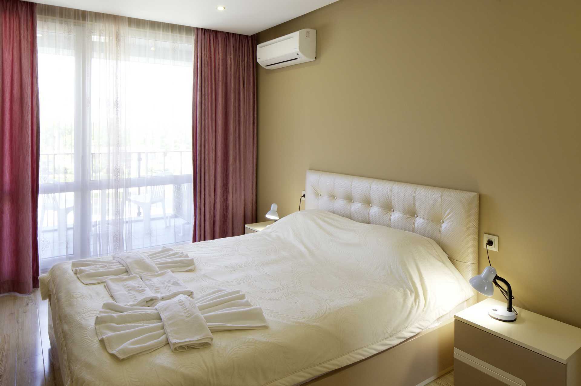 2-værelses lejlighed med balkon. Soveværelse og kombineret opholdsrum med minikøkken. En dobbeltseng. Mulighed for ekstra opredninger i sovesofa. Minikøkken med kogeplader, køleskab, el-kedel og enkelt køkkenudstyr. Gratis wifi, aircondition og deponering. Tv med internationale kanaler. Hårtørrer. Badeværelse med bruser og toilet. Rengøring 7 gange om ugen.