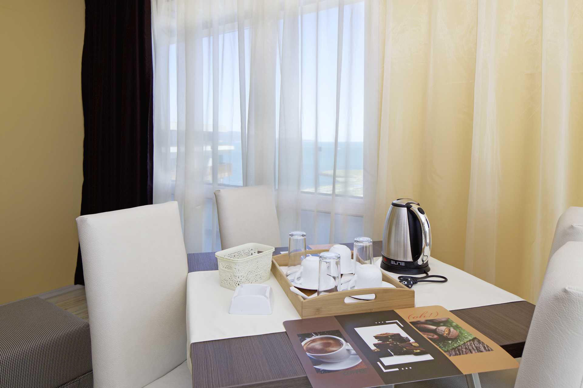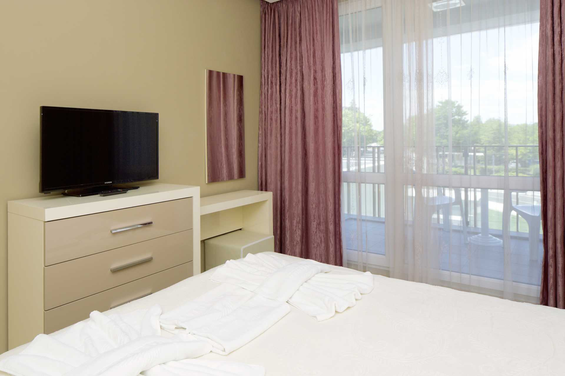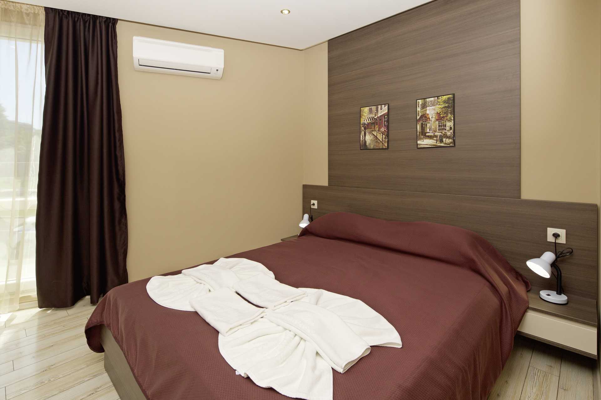 1-værelses lejligheder med balkon, nogle med delvis havudsigt. Soveværelse og opholdsrum. En dobbeltseng. Mulighed for ekstra opredninger i sovesofa. El-kedel og kaffe/te. Gratis wifi, aircondition og deponering. Tv med internationale kanaler på begge værelser. Hårtørrer. Badeværelse med bruser og toilet. Rengøring 7 gange om ugen.