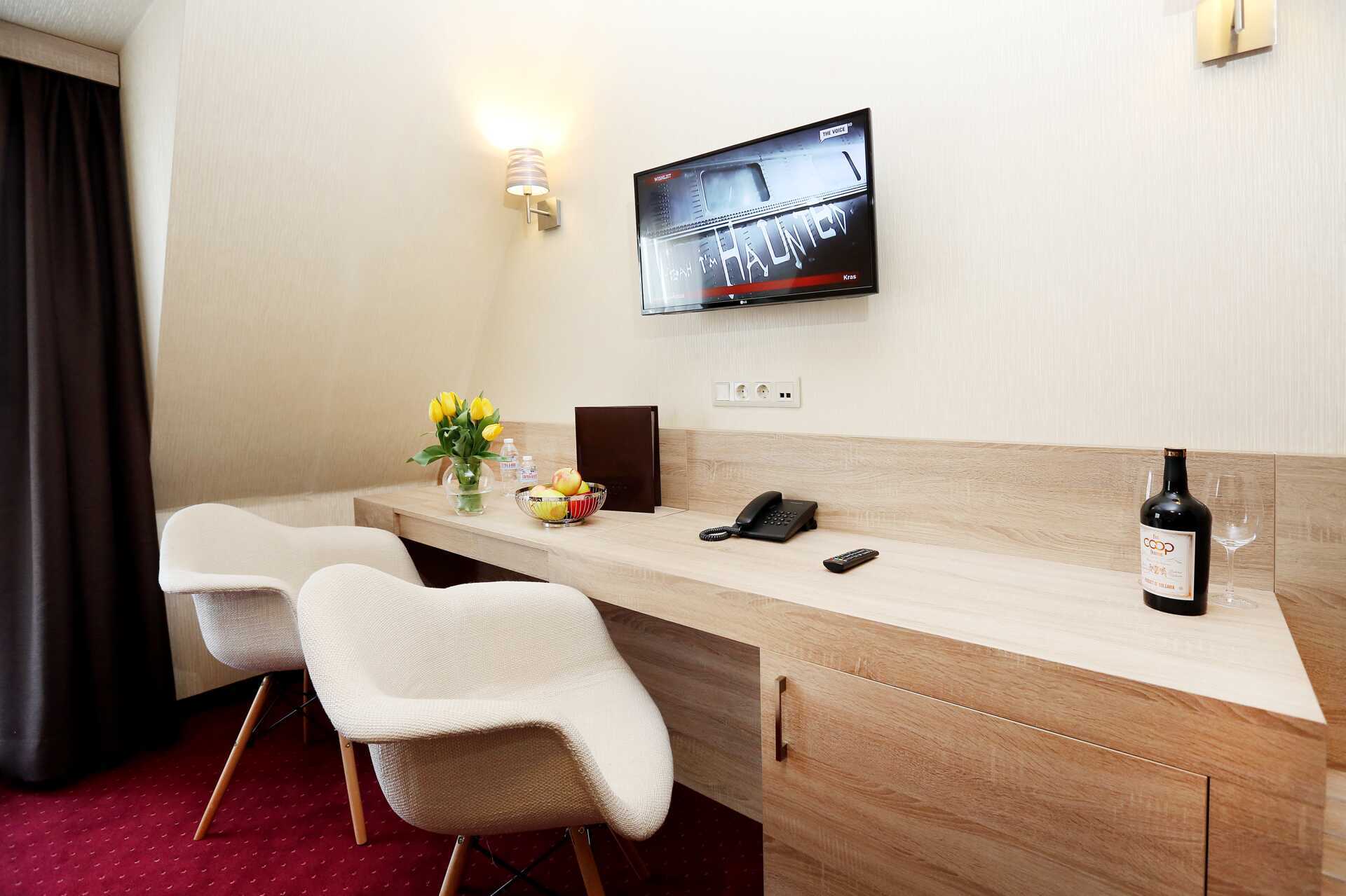 Dobbeltværelse med balkon eller terrasse. En dobbeltseng eller to enkeltsenge. Gratis wifi, aircondition og deponering. Køleskab. El-kedel og kaffe/te. Tv med internationale kanaler. Væg til væg-tæppe. Badekåber og tøfler. Hårtørrer. Badeværelse med badekar eller bruser samt toilet. Rengøring 7 gange om ugen.