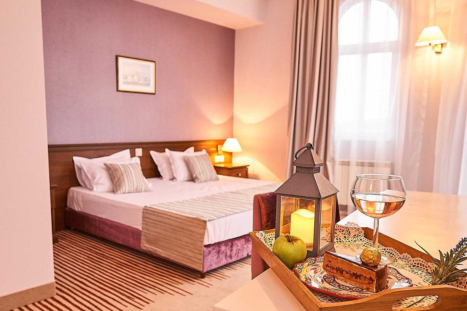 Deluxe-værelse uden udeplads. En dobbeltseng. Mulighed for ekstra opredning i sovesofa. Gratis wifi og aircondition som også kan varme. Køleskab. Tv med internationale kanaler. Væg til væg-tæppe. Hårtørrer. Badeværelse med badekar eller bruser samt toilet. Rengøring 6 gange om ugen.
