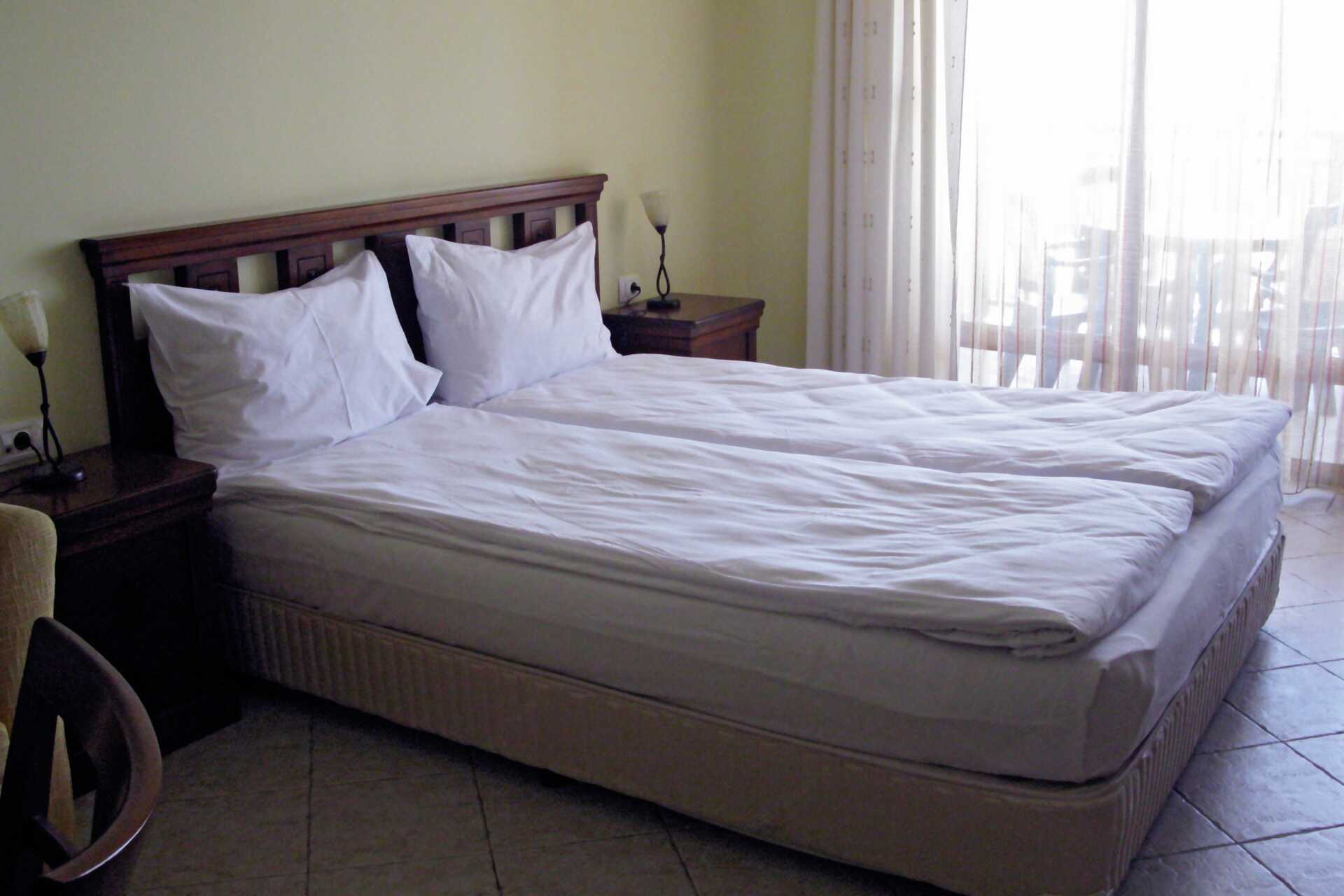 1-værelses lejligheder med balkon. Hver lejlighed har sit eget unikke udseende, men alle har lignende faciliteter. Soveværelse kombineret med minikøkken. En dobbeltseng eller to enkeltsenge. Mulighed for ekstra opredning i sovesofa. Minikøkken med kogeplader, køleskab, mikroovn, brødrister, el-kedel og enkelt køkkenudstyr. Gratis wifi og aircondition. Tv med internationale kanaler. Nogle lejligheder har væg til væg-tæpper. Strygejern og strygebræt. Hårtørrer. Badeværelse med bruser og toilet. Rengøring 7 gange om ugen.