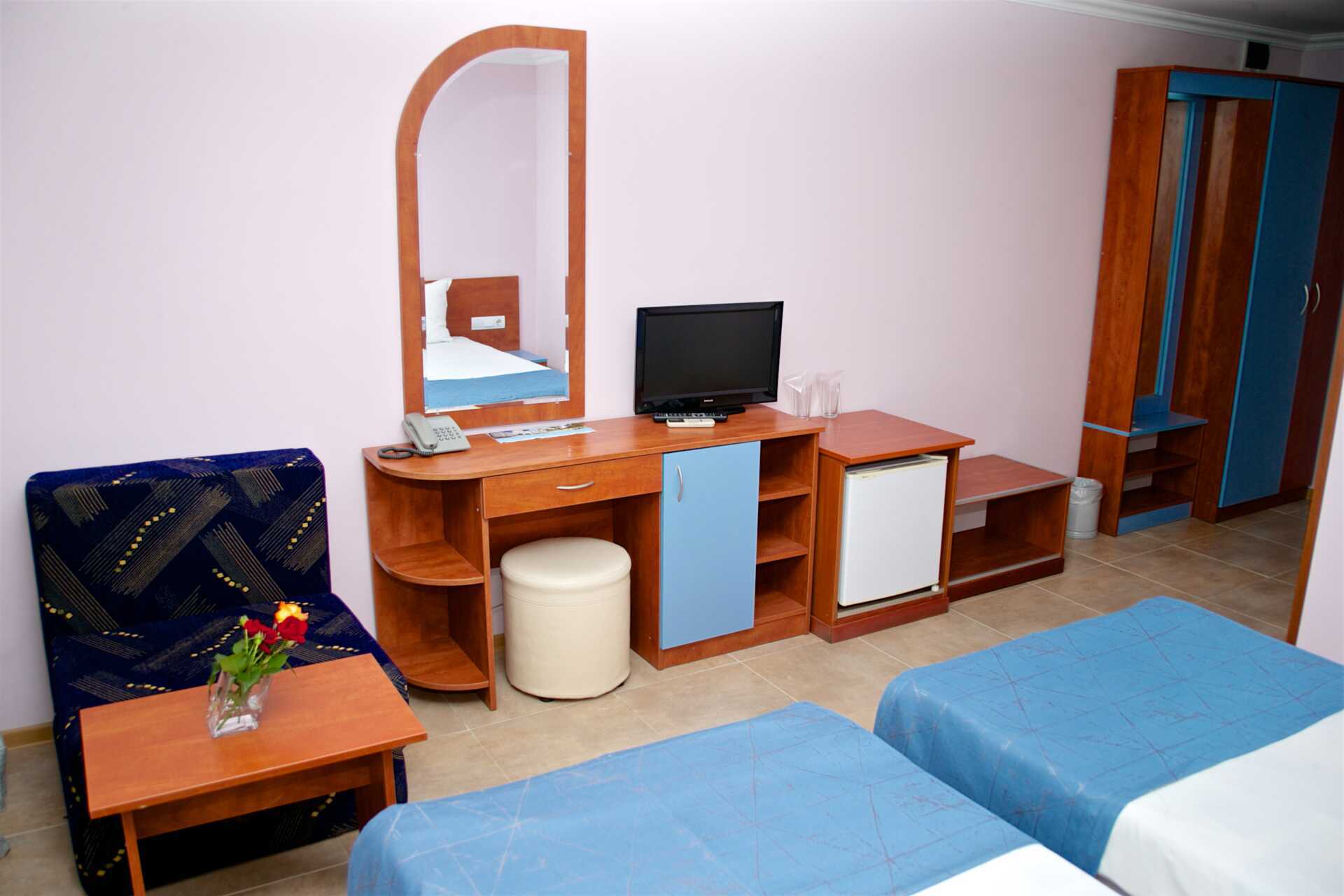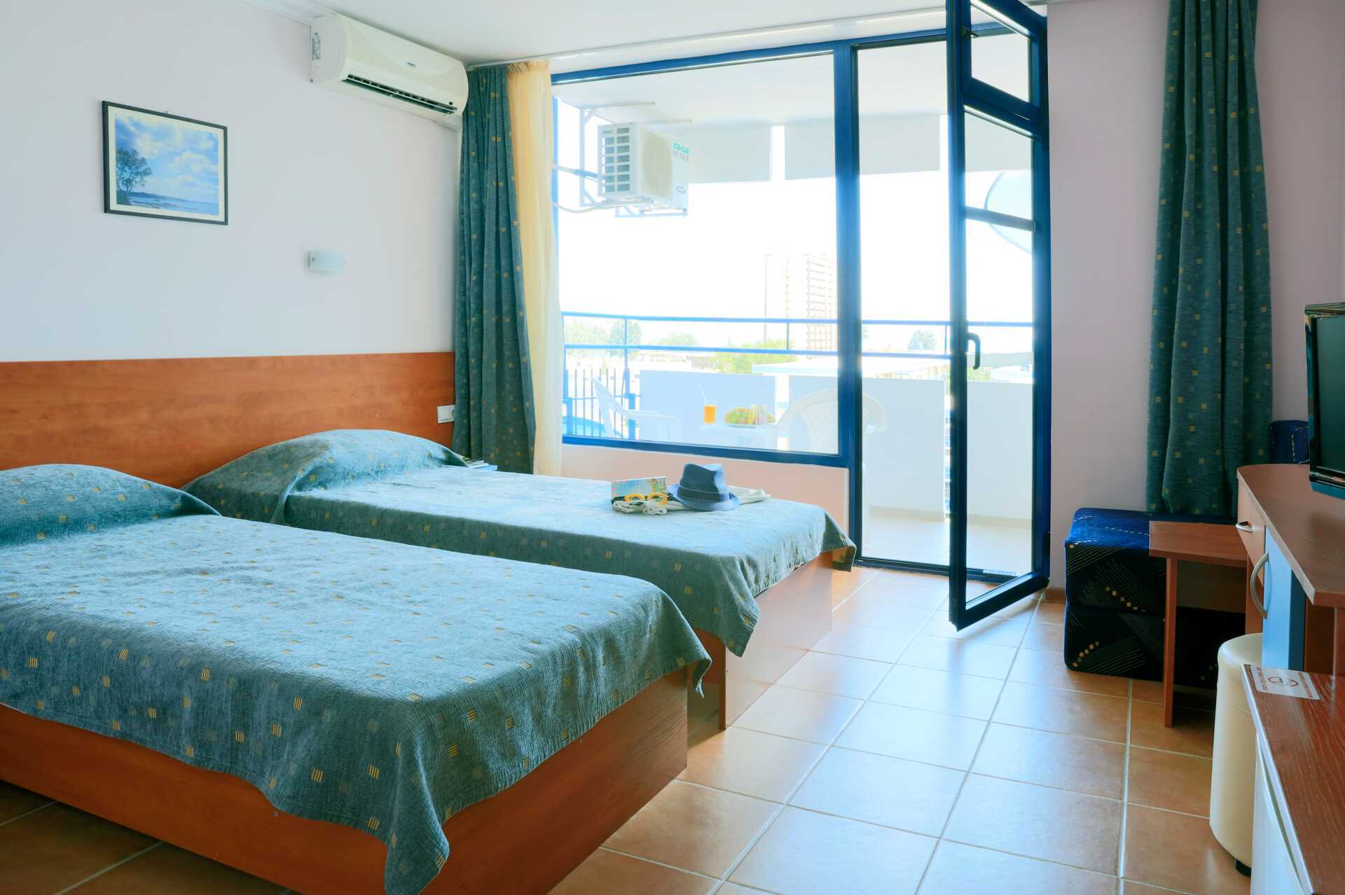 Dobbeltværelser med balkon. Nogle af værelserne er blevet renoveret og er lidt større og nogle af værelserne har væg til væg-tæppe. To enkeltsenge. Mulighed for ekstra opredning. Gratis wifi og aircondition. Køleskab. Tv med lokale kanaler. Badeværelse med bruser og toilet. Rengøring 7 gange om ugen.