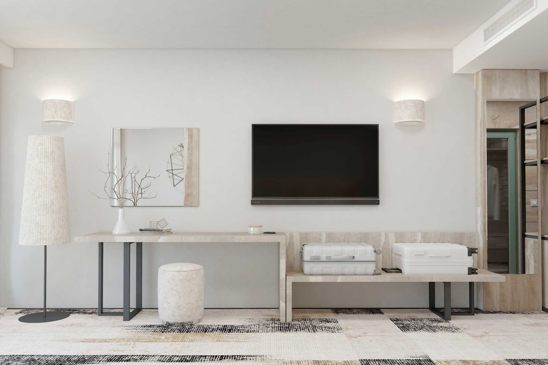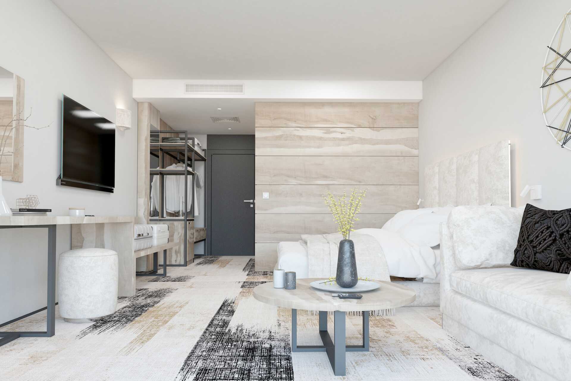 Standard-værelse med balkon eller terrasse. En dobbeltseng eller to enkeltsenge. Mulighed for ekstra opredning i sovesofa. Gratis wifi og aircondition. Køleskab. Tv med internationale kanaler. Væg til væg-tæppe. Hårtørrer. Badeværelse med bruser og toilet. Rengøring 7 gange om ugen.