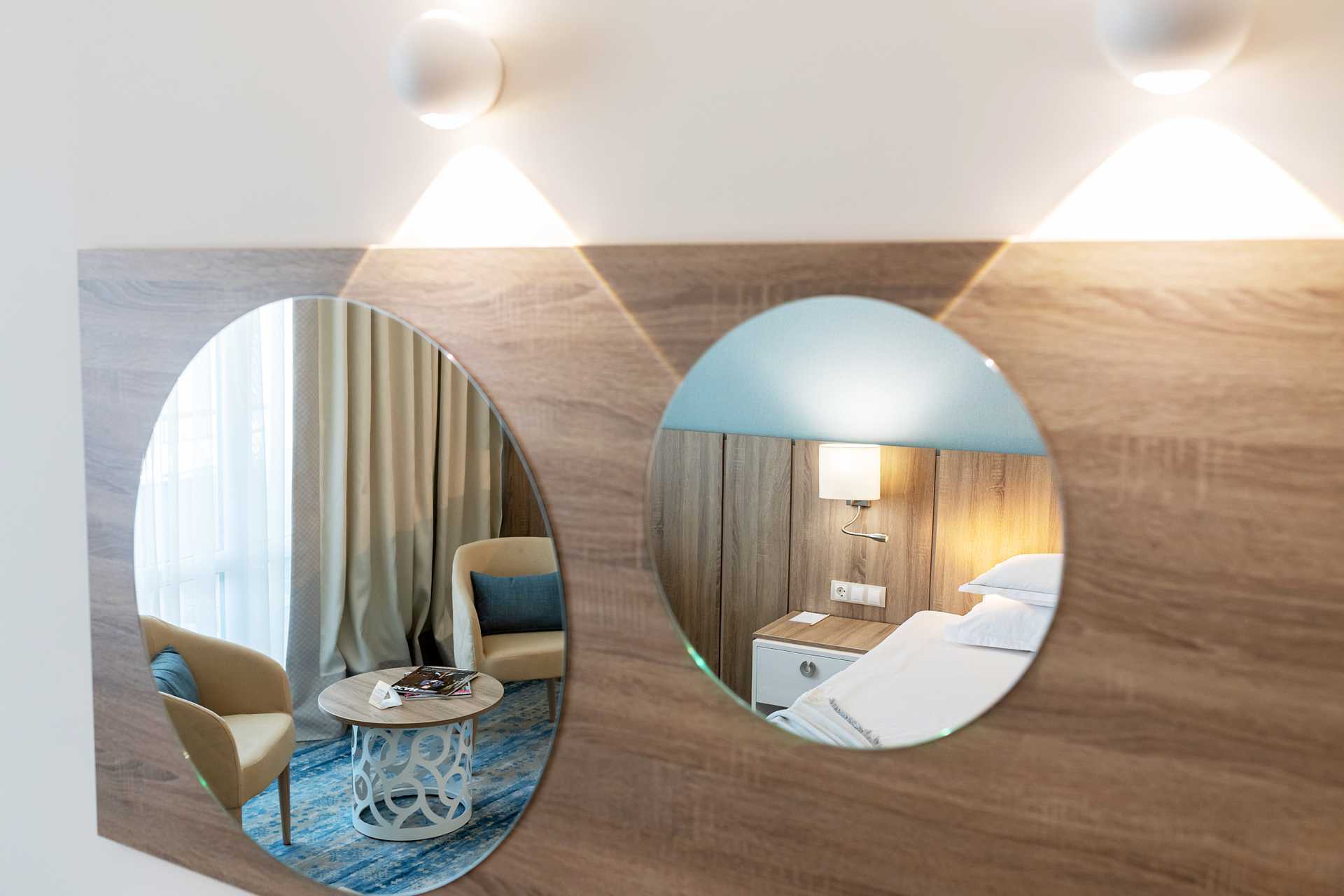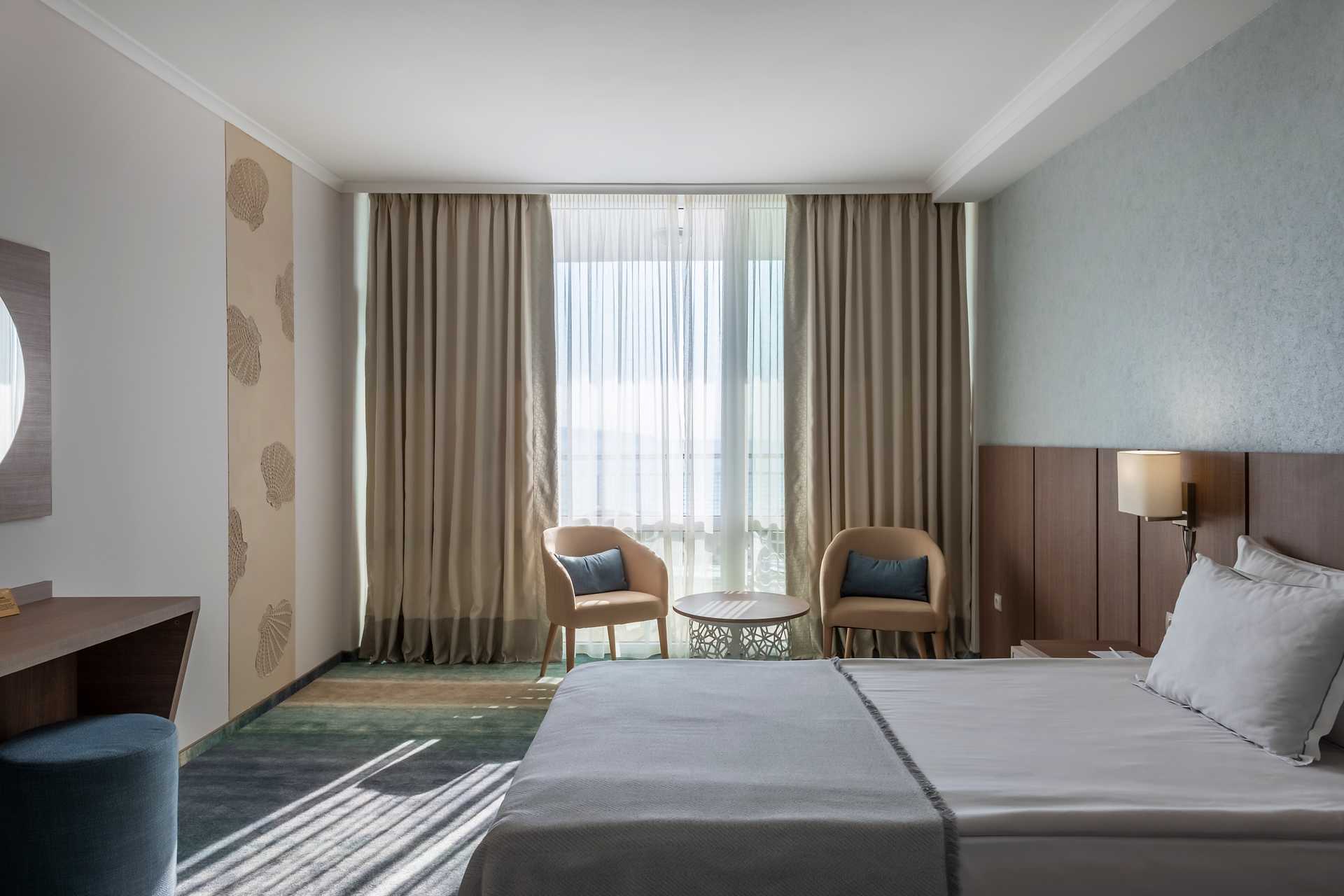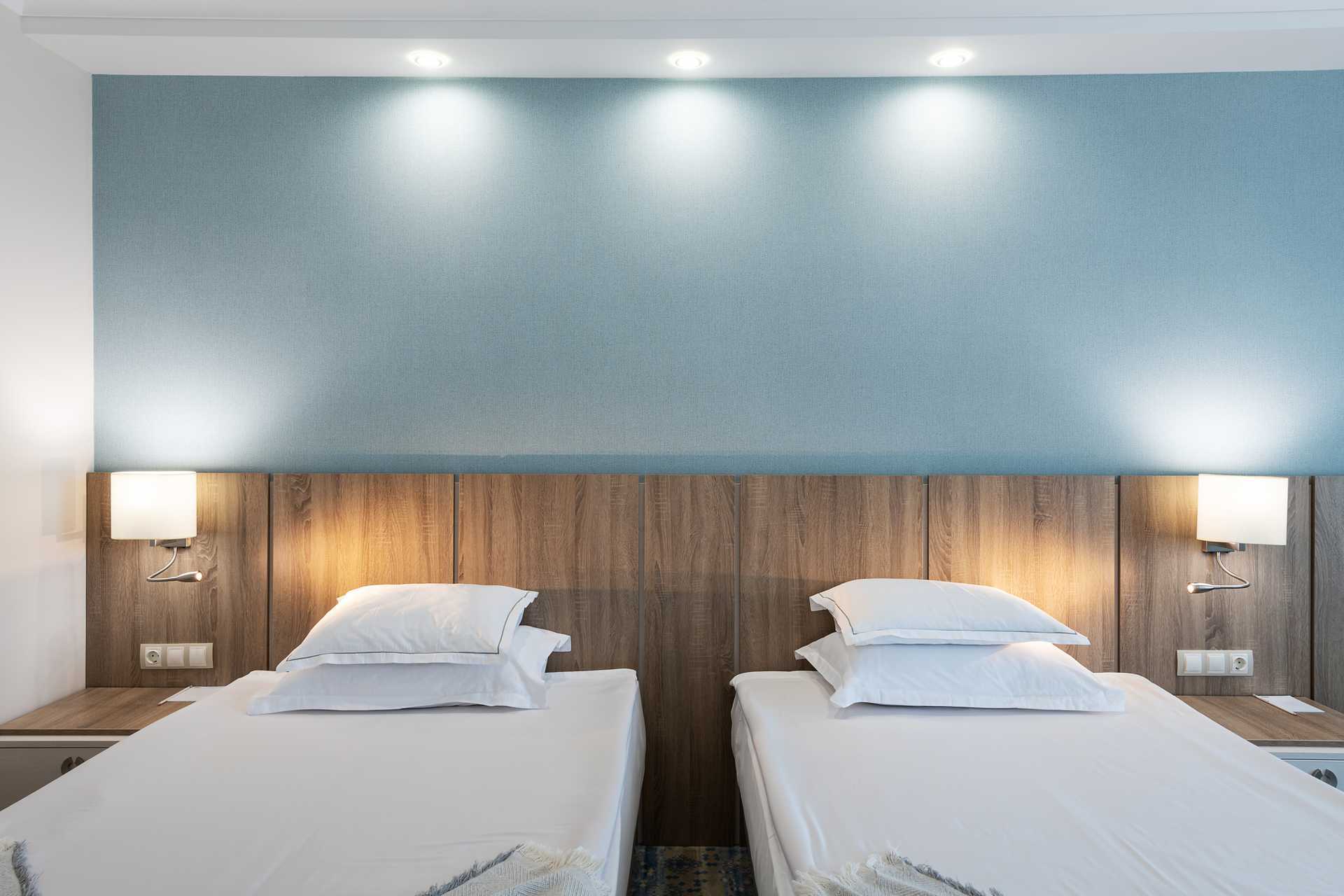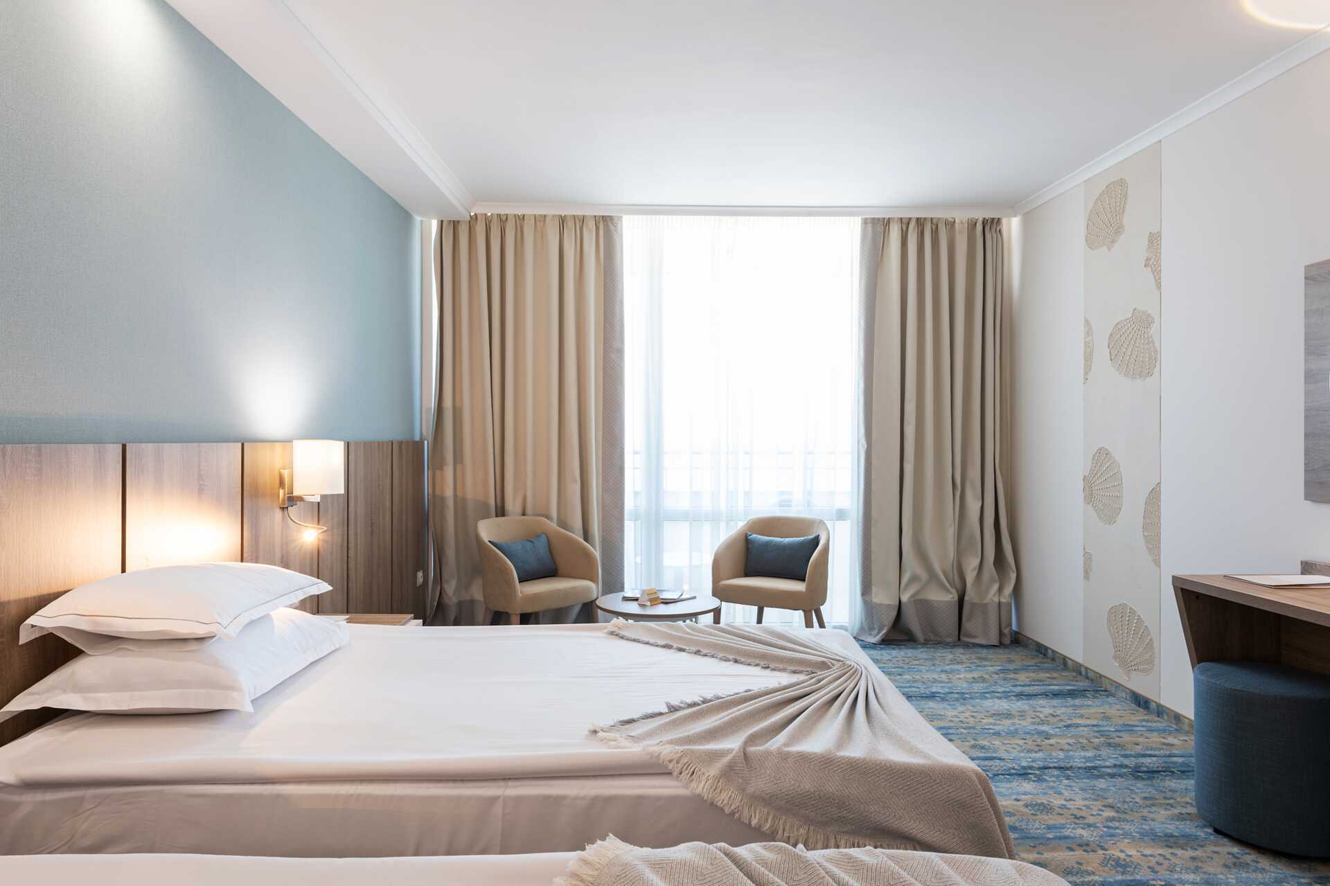 Superior-værelser med balkon, nogle med havudsigt. Værelserne er placeret i hotellets hovedbygning. To enkeltsenge. Mulighed for ekstra opredning i en enkeltseng eller i en sovesofa/lænestol. Gratis wifi, aircondition og deponering. Væg til væg-tæppe. Minibar mod betaling. Kaffemaskine - kapsler indgår og genopfyldes i løbet af ugen. Tv med internationale kanaler. Hårtørrer. Badeværelse med bruser og toilet. Rengøring 7 gange om ugen.