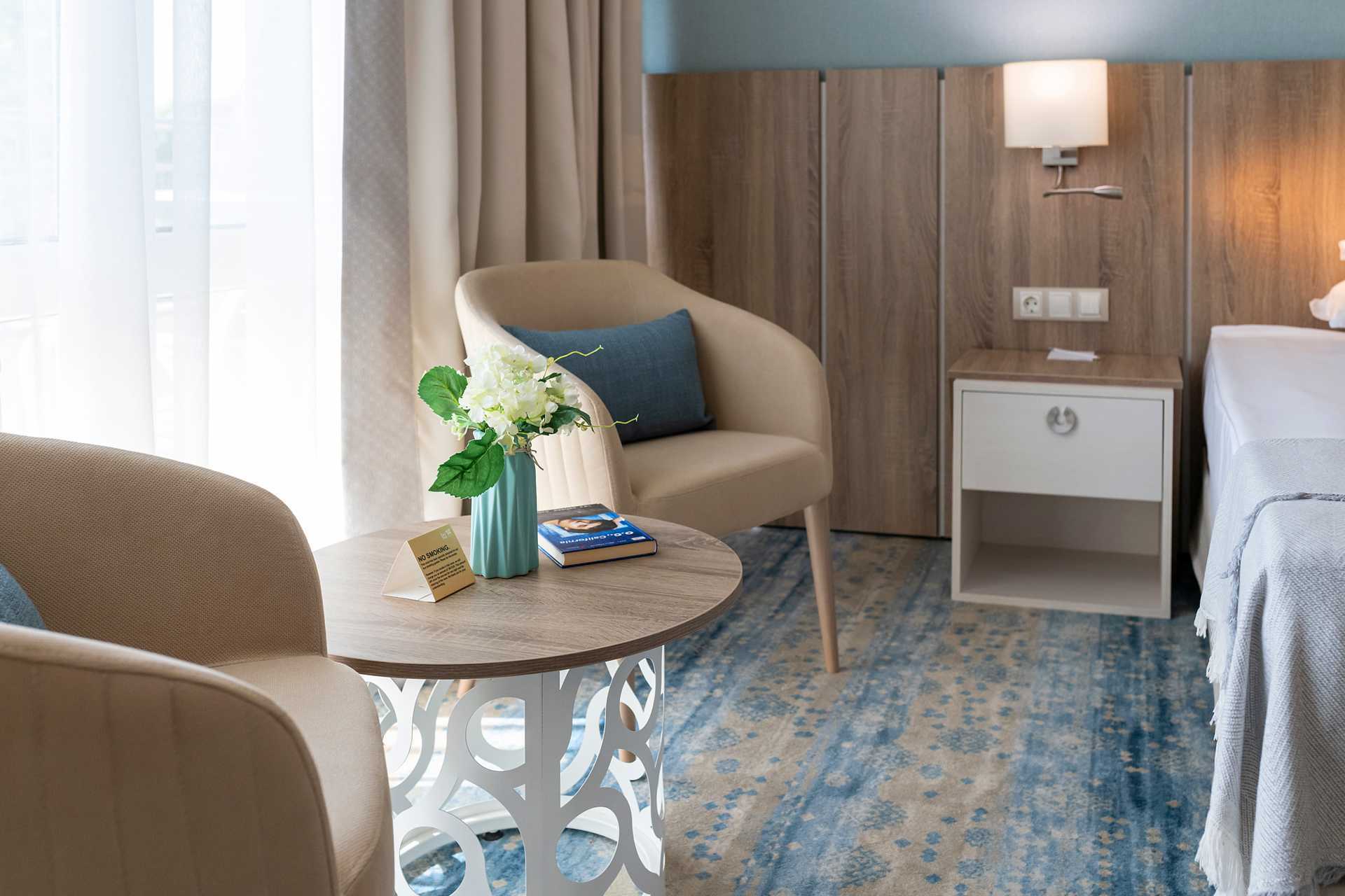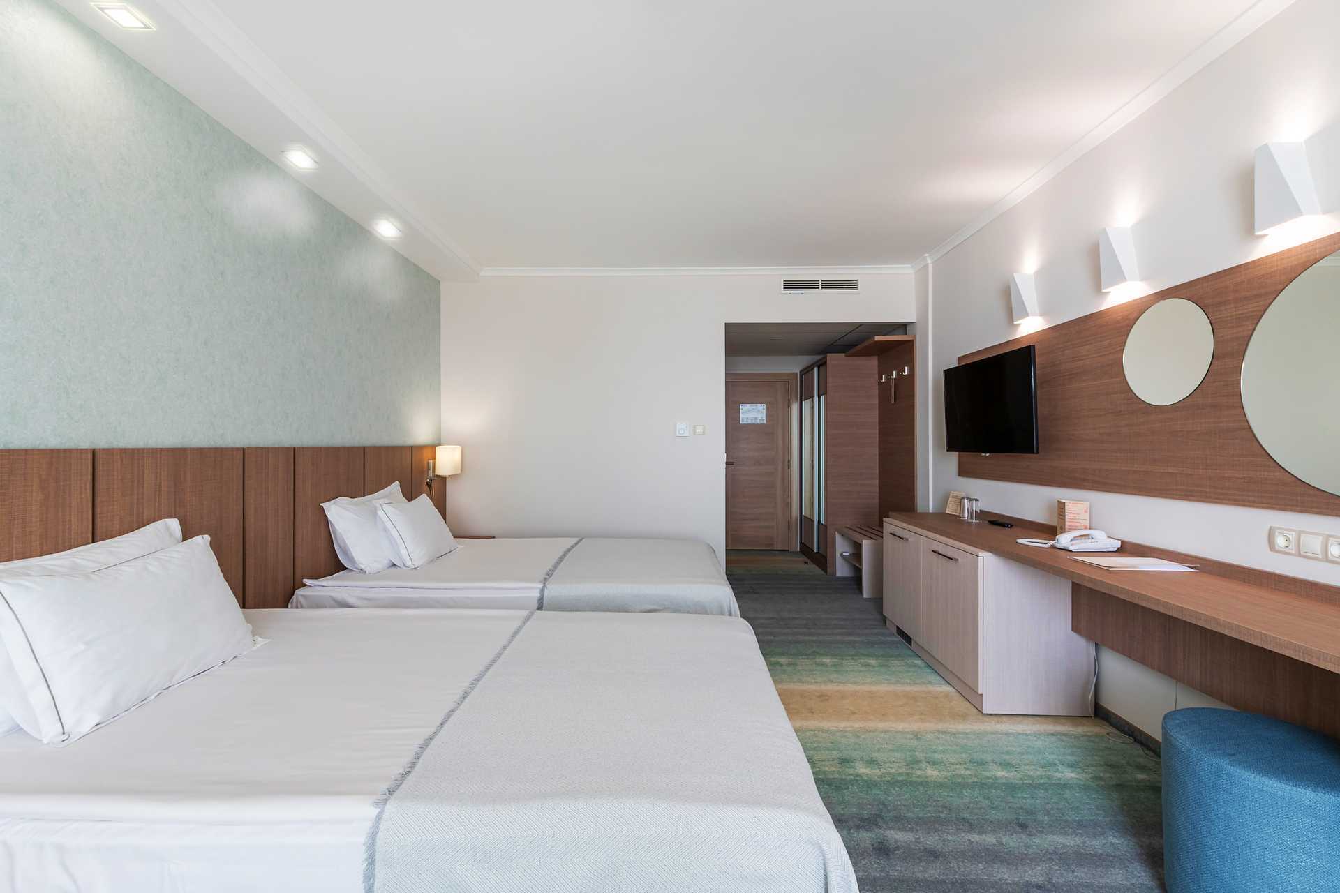 Standardværelse med balkon. Værelserne ligger i hotellets anneksbygning. To enkeltsenge. Mulighed for ekstra seng i sovesofa/lænestol. Gratis wifi, aircondition og deponering. Væg til væg-tæppe. Minibar mod betaling. Kaffemaskine - kapsler indgår og genopfyldes i løbet af ugen. Tv med internationale kanaler. Hårtørrer. Badeværelse med bruser og toilet. Rengøring 7 gange om ugen.