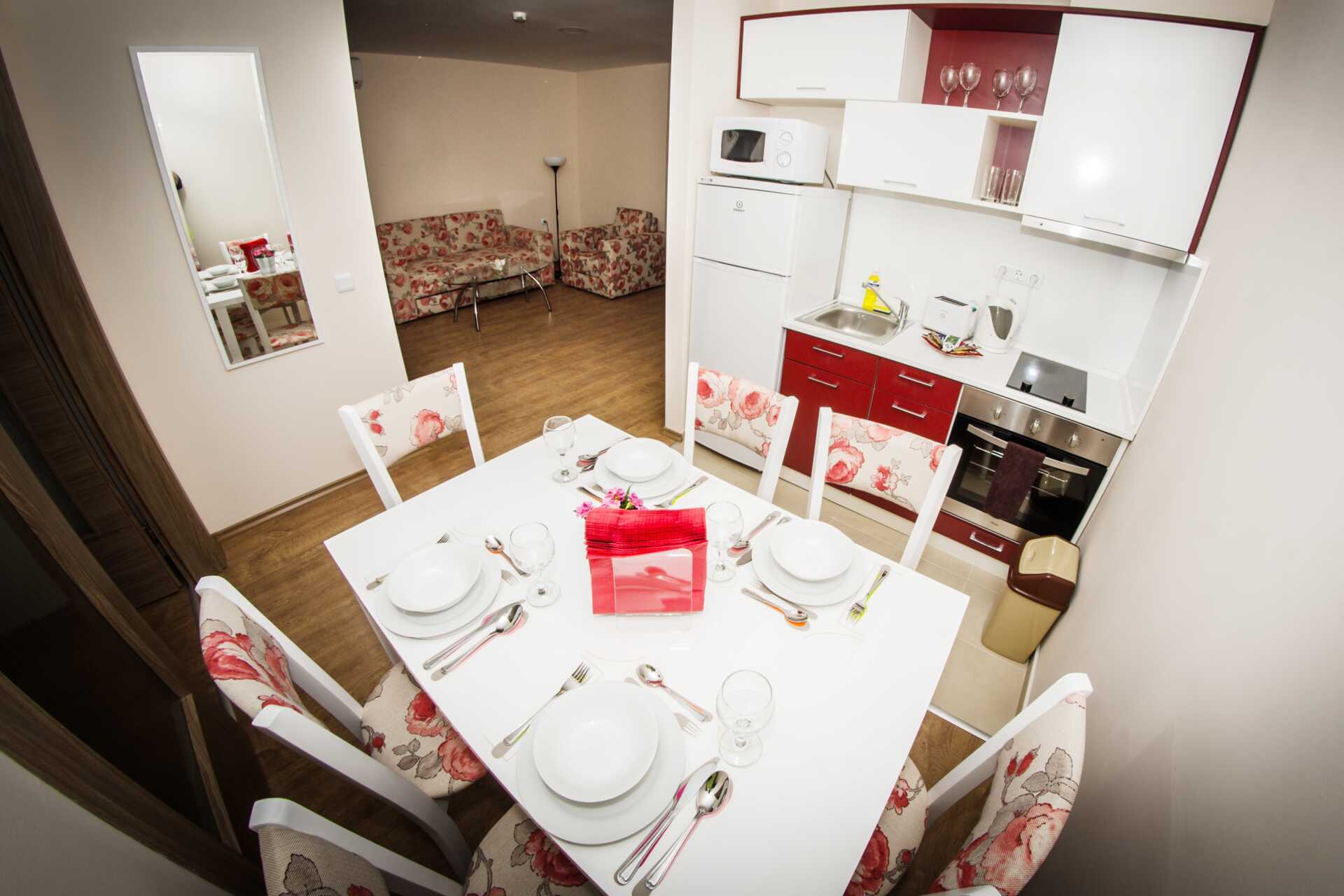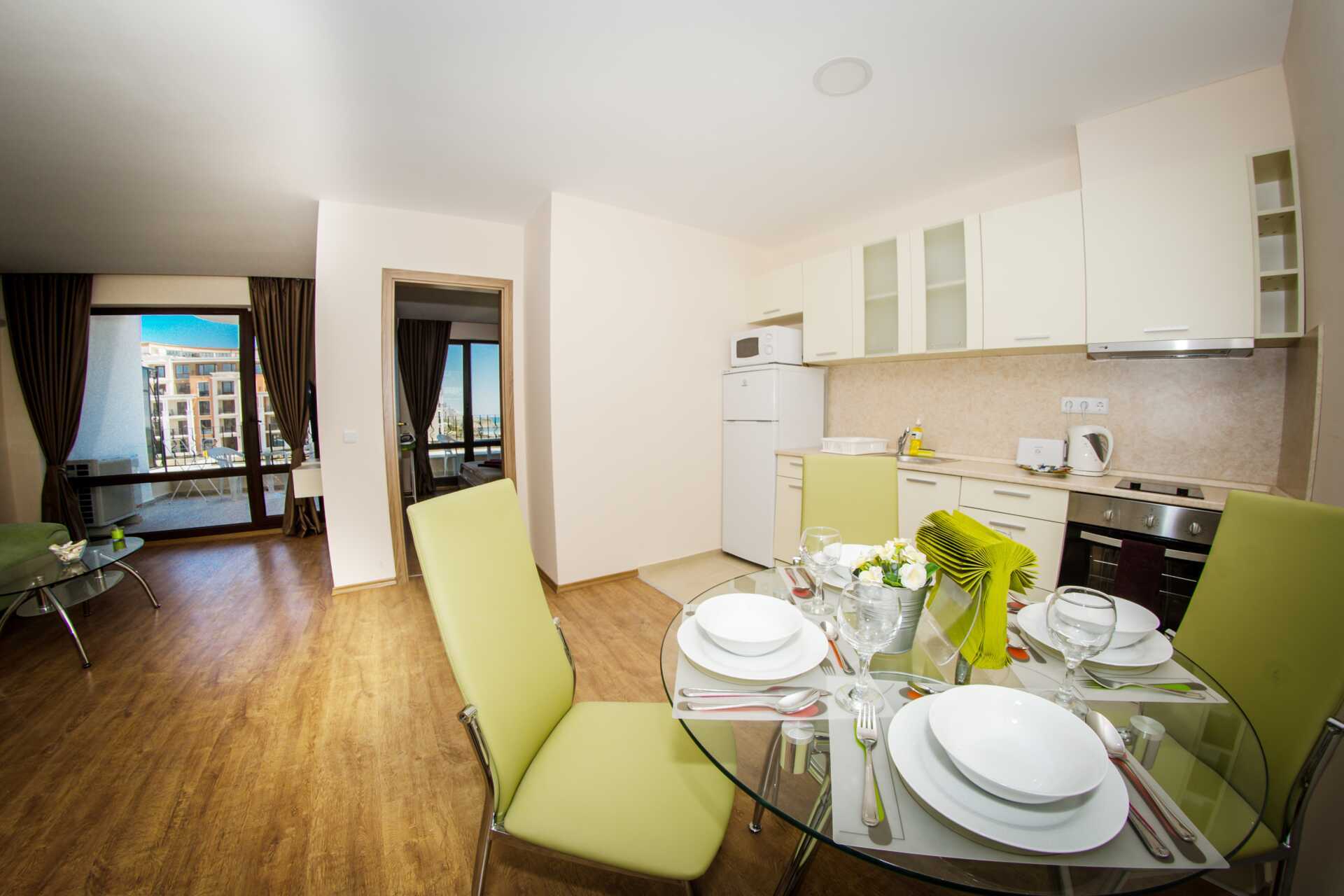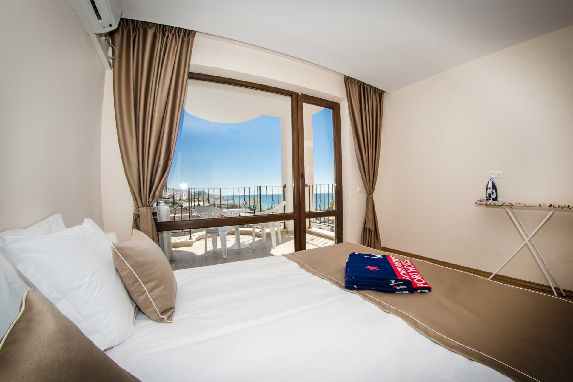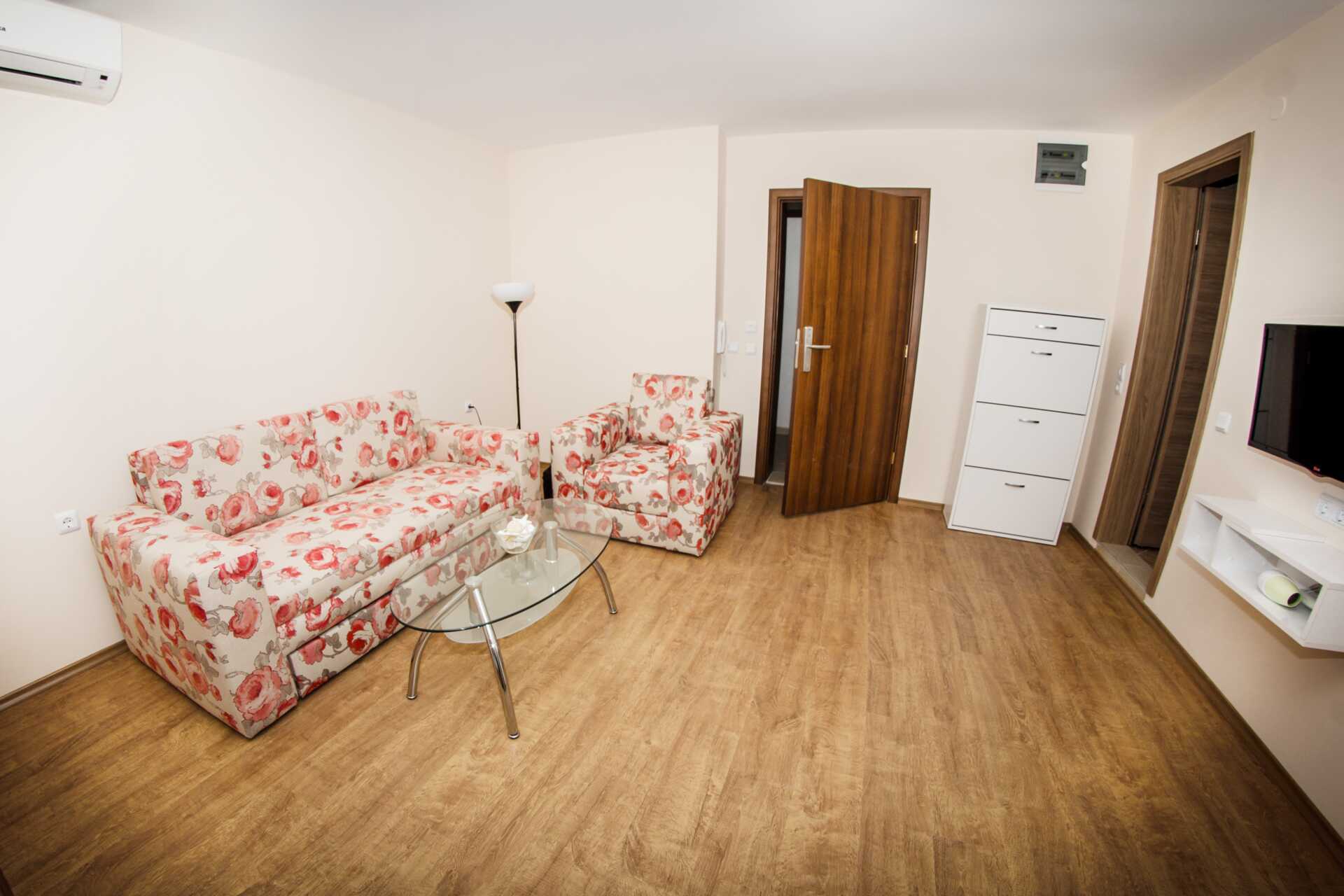 2-værelses lejlighed med balkon. Soveværelse og kombineret opholdsrum/minikøkken. En dobbeltseng. Mulighed for ekstra opredning i sovesofa. Minikøkken med kogeplader, emhætte, køleskab, el-kedel, brødrister, mikroovn og enkelt køkkenudstyr. Nogle lejligheder har også ovn. Gratis wifi, aircondition og deponering. Tv med internationale kanaler. Vaskemaskine. Strygejern og strygebræt. Hårtørrer. Badeværelse med bruser og toilet. Rengøring 7 gange om ugen.