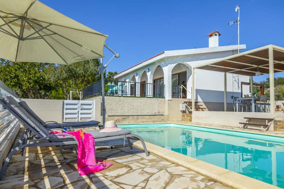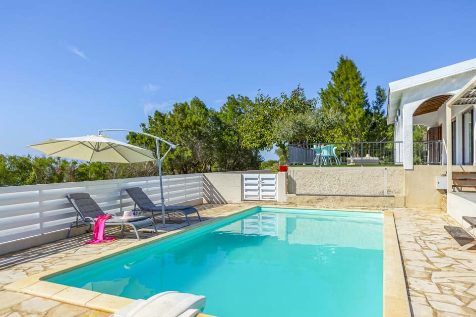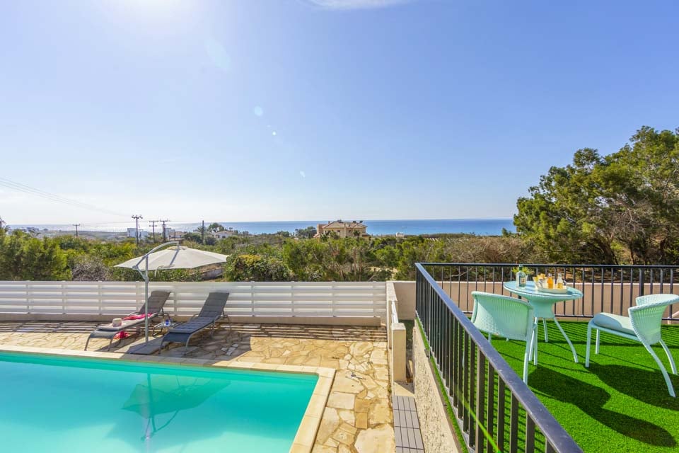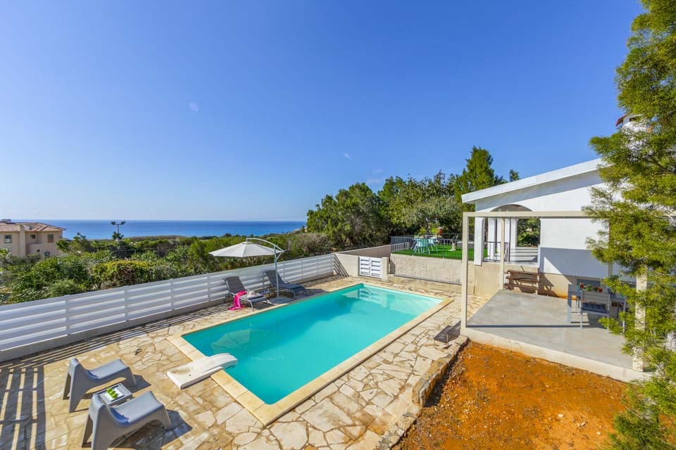 Udenfor tilbyder denne villa en privat swimmingpool, lukket have og en skyggefuld pergola-terrasse komplet med udendørs havemøbler, hvor du kan nyde spisning under åben himmel. Omgivet af spektakulær udsigt over havet og landskabet, ville du aldrig vide, at du kun er en kort afstand fra den travle by.