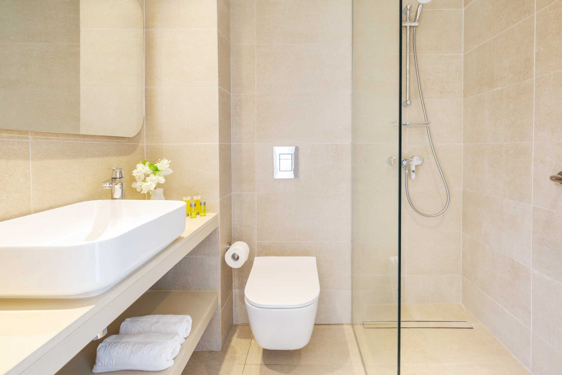Dobbeltværelse med balkon. En dobbeltseng. Mulighed for ekstra opredning i enkeltseng. Gratis wifi, aircondition og deponering. Køleskab. Tv med internationale kanaler. Hårtørrer. Badeværelse med bruser og toilet. Rengøring 6 gange om ugen.