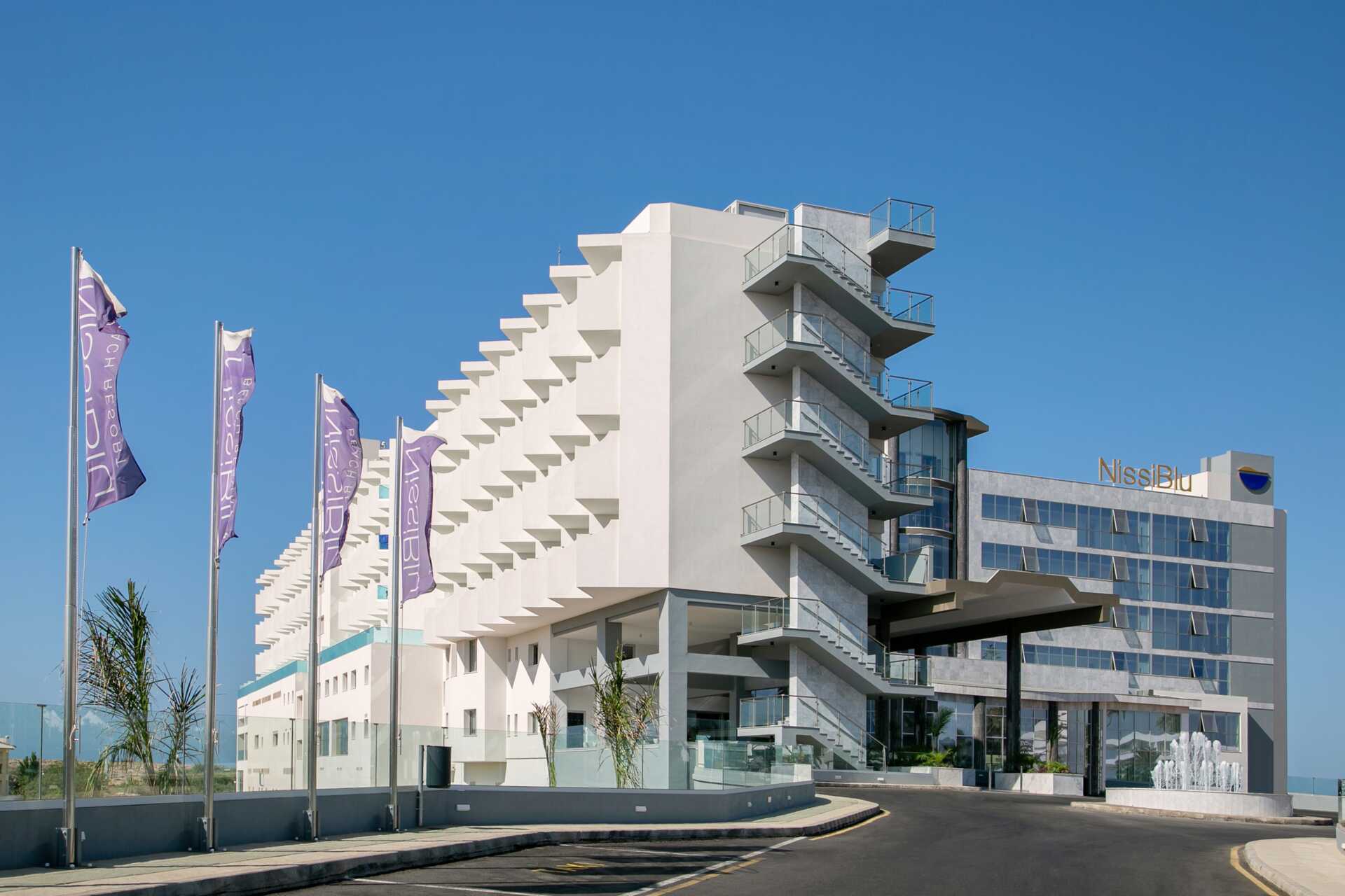 NissiBlu Beach Resort er et stilfuldt og moderne hotel i let gåafstand til Nissi Beach. Hotellet har flere forskellige måltidspakker med alt fra halvpension til All Inclusive - en stor generøs morgenmadsbuffet inkluderet. På hotellet finder du også et dejligt poolområde, en spa til afslapning og har du lyst til at træne eller dig finder du en tennisbane og hotellet har også yoga og holdtræning.