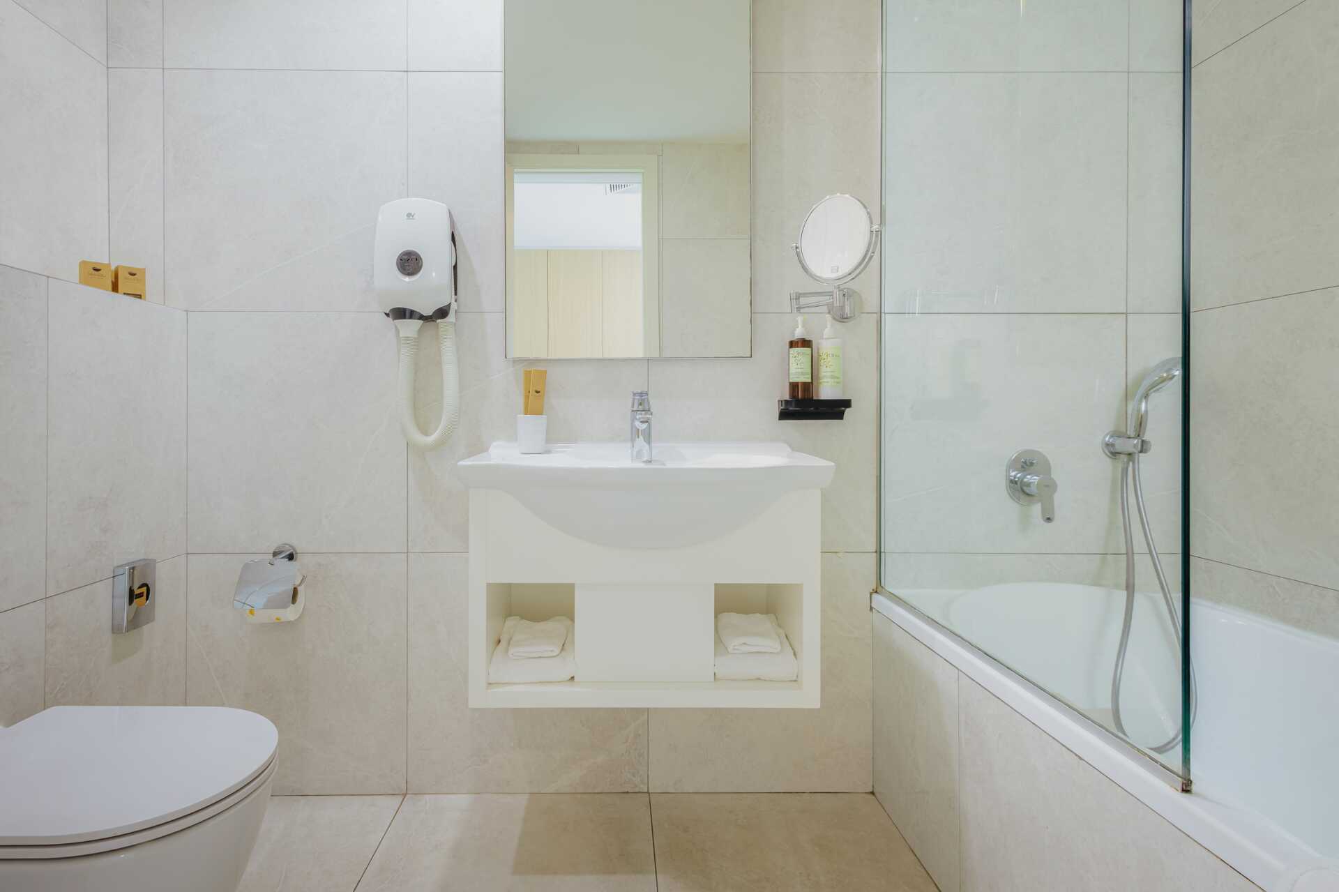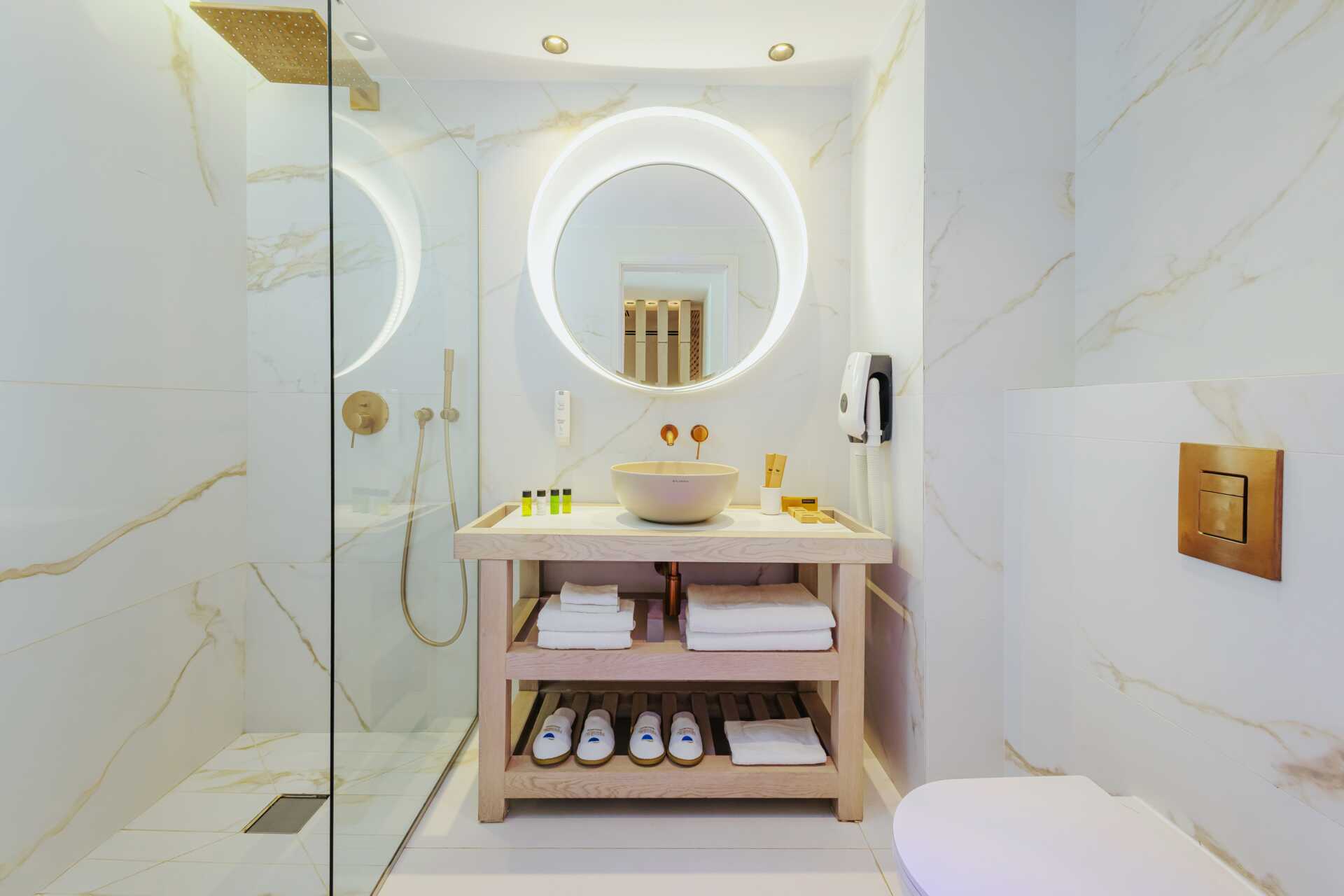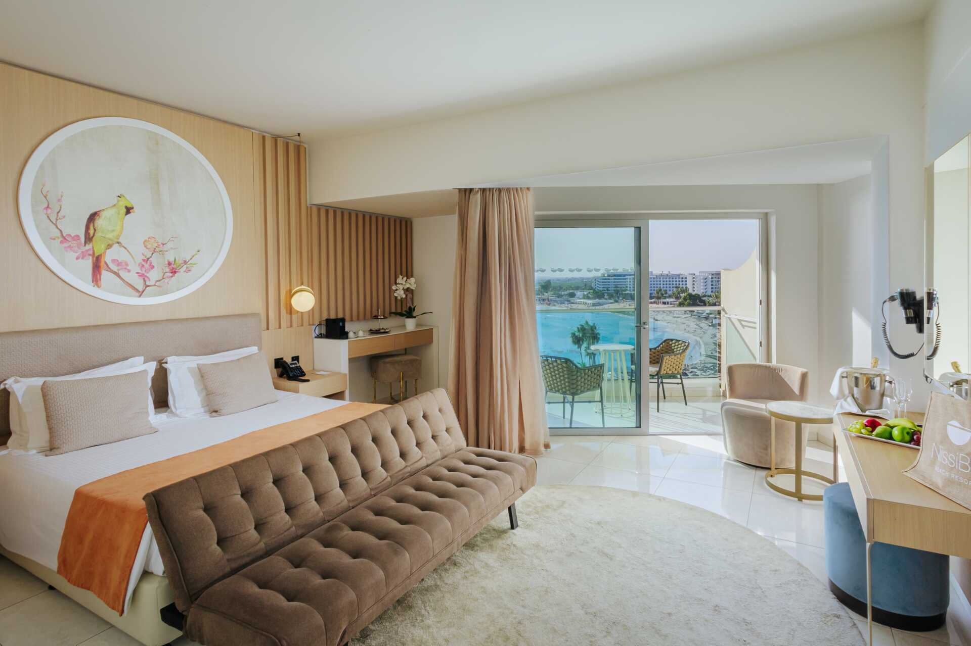 Junior-suite med balkon og havudsigt. En dobbeltseng. Mulighed for ekstra opredning i sovesofa eller fold ud-seng. Gratis wifi, aircondition og deponering. Minibar mod betaling. El-kedel og kaffe/te. Kaffemaskine. Tv med internationale kanaler. Strygejern og strygebræt. Badekåber og tøfler. Hårtørrer. Badeværelse med badekar og toilet. Rengøring 7 gange om ugen. Børn under to år tæller med i det maksimale antal personer på værelset.