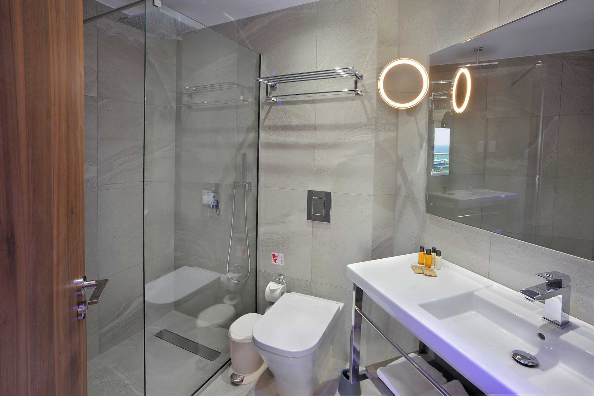 Deluxe-værelse med balkon og havudsigt. En dobbeltseng eller to enkeltsenge. Mulighed for ekstra opredning i sovesofa eller fold ud-seng. Gratis wifi, aircondition og deponering. Køleskab. El-kedel samt kaffe/te. Kaffemaskine Espresso. Tv med internationale kanaler. Hårtørrer. Badekåber og tøfler. Badeværelse med bruser og toilet. Rengøring 7 gange om ugen. Børn under to år tæller med i det maksimale antal personer på værelset.