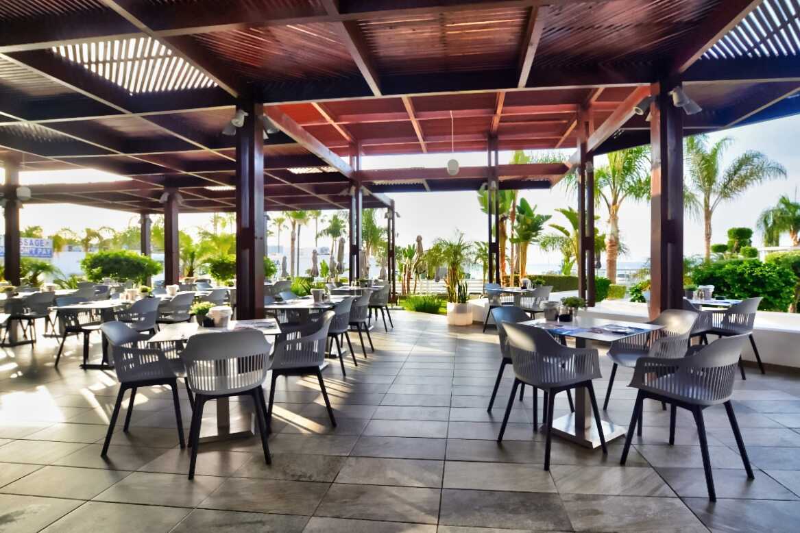 Vassos Nissi Plage Hotel & Spa har en buffetrestaurant til alle dagens måltider - morgenmad, frokost og middag. Hotellet har også en kombineret à la carte restaurant med poolbar med lettere anretninger om dagen og om aftenen åbner tagterrassen også op til middag. En bar, der er åben fra eftermiddagen og i løbet af aftenen. Bordreservation er påkrævet i nogle à la carte-restauranter. Dresscode - lange bukser til mænd under middagen.