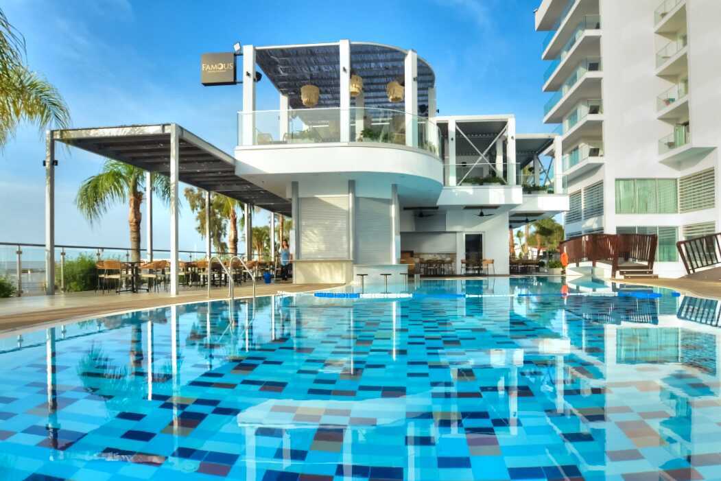 Vassos Nissi Plage Hotel & Spa har et stort og dejligt poolområde med pool med et mere lavvandet afsnit for børn med vandrutsjebane til børn og jacuzzi. Poolen er opdelt i flere dele med forskellige dybder. Solsenge, Balissenge og parasoller er inkluderet. Pool-og strandhåndklæder mod depositum. Der er også en indendørs pool, som er åben fra marts til oktober og kan benyttes gratis.