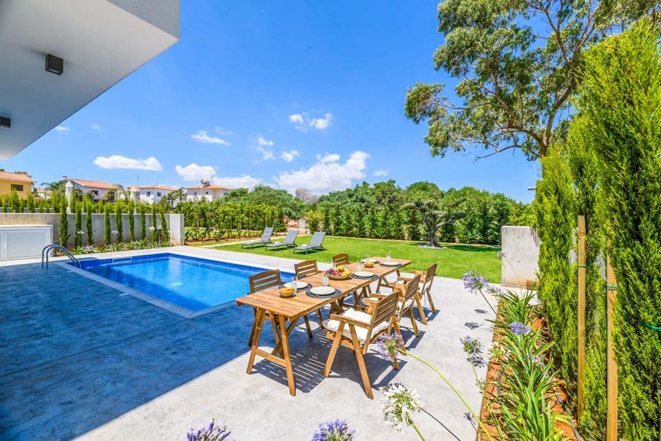 By the Beach - Sea Pearl er en villa, man bare skal se, beliggende i Pernera og kan prale af en storslået have med udsigt over havet i det fjerne over Middelhavet. Den åbne terrasse er i moderne stil med en stor terrasse og en frodig stedsegrøn have. En frokost nydes bedst under åben himmel i det glitrende solskin, da det fuldt udstyrede køkken er det ideelle sted at tilberede et festmåltid af lækre delikatesser. Indenfor er den åbne stue og køkken et frisk pust med hvidkalkede vægge, terrassedøre fra gulv til loft og moderne belysning. Hyggelige retromøbler står ved siden af fladskærms-tv'et med flere internationale kanaler og kølig aircondition. Et gæstetoilet fuldender stueetagen, mens en moderne trappe fører ovenpå.