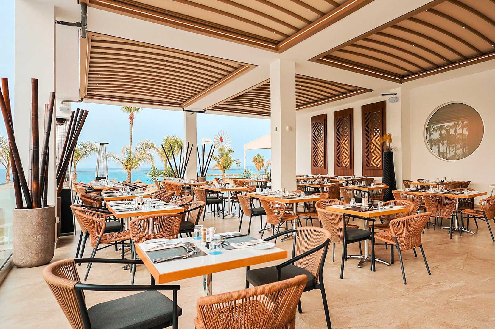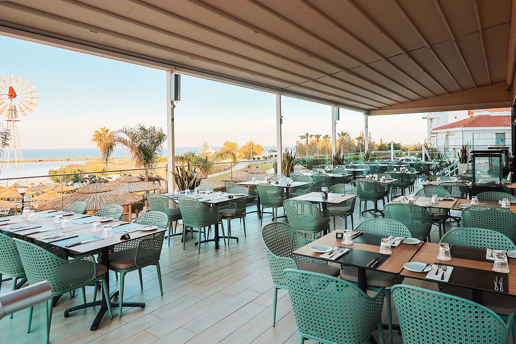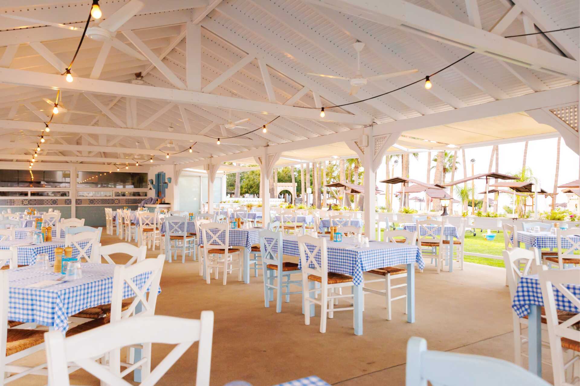 Hotellet har buffetrestauranten Alkion og tre á la carte-restauranter, H Taverna, Argo og Abalone. Der er også en grillrestaurant, Stonegrill, og sushirestauranten Seaweed. I hotellets have er der en traditionel café, To Kafeneion, som serverer kaffe, cypriotisk bagværk og ouzo. Isbar/crêperie. Bar og loungebar. Poolbaren tilbyder snacks, lette måltider og is.