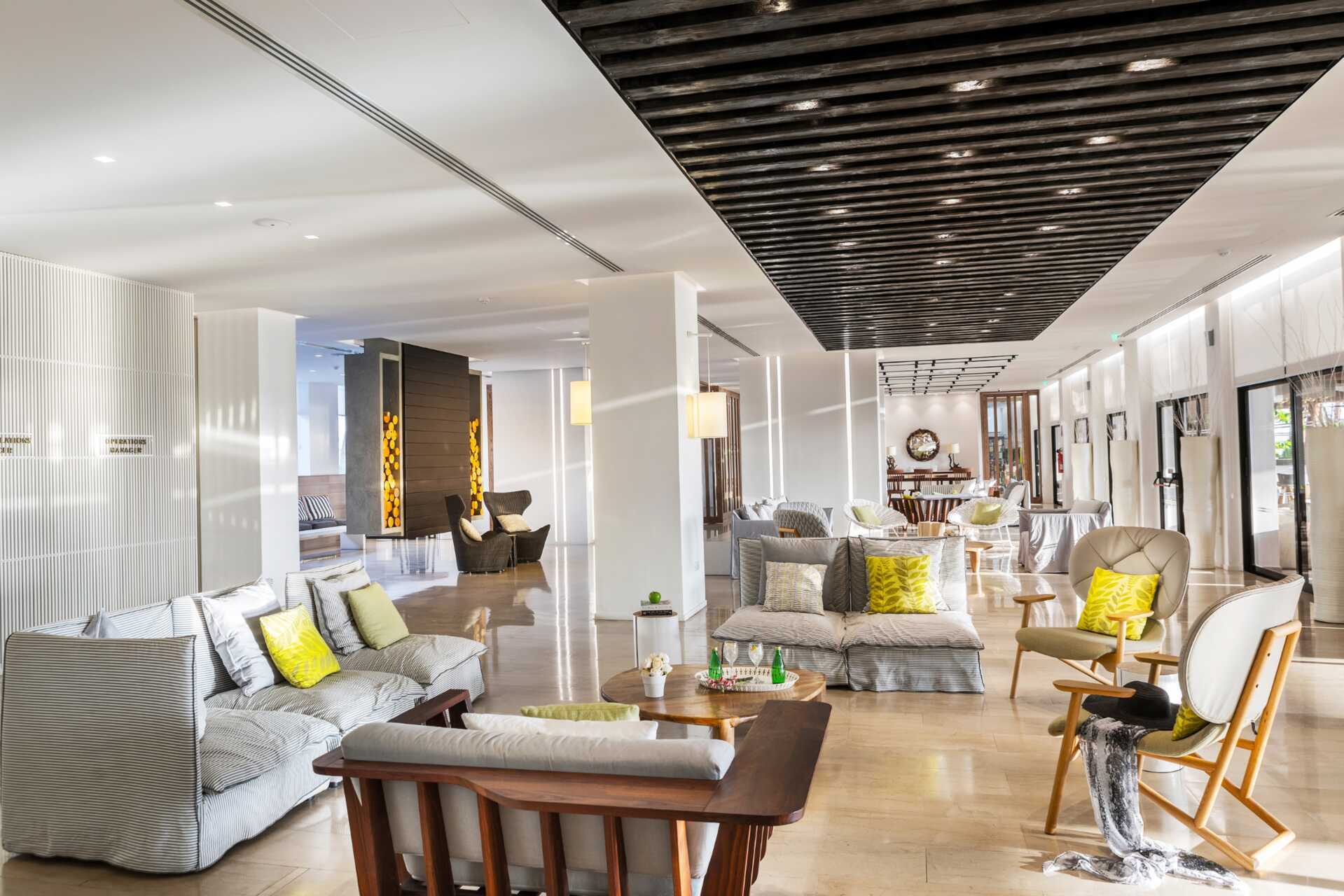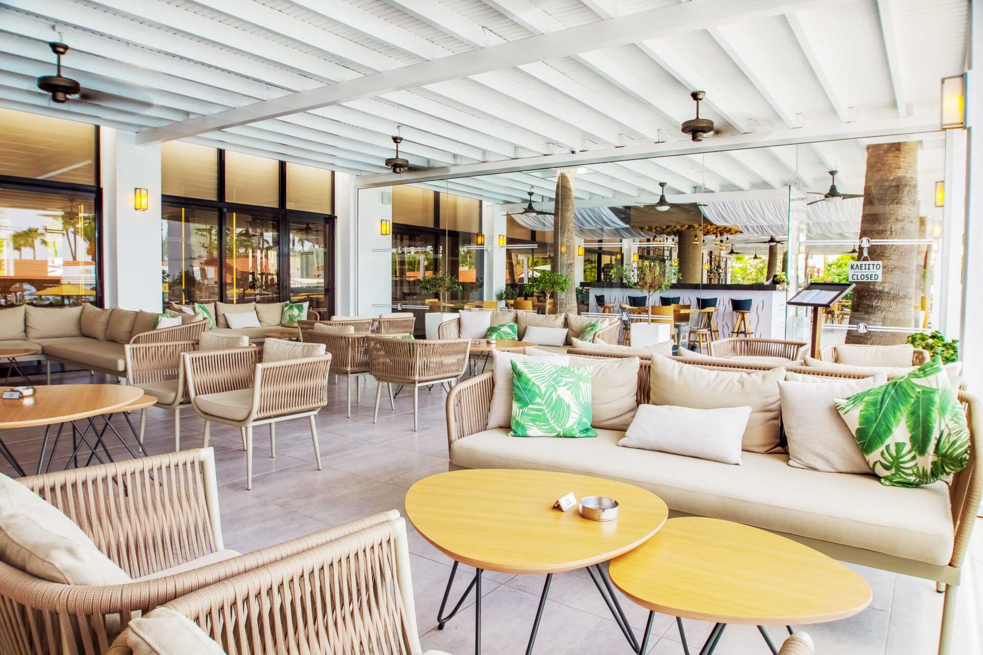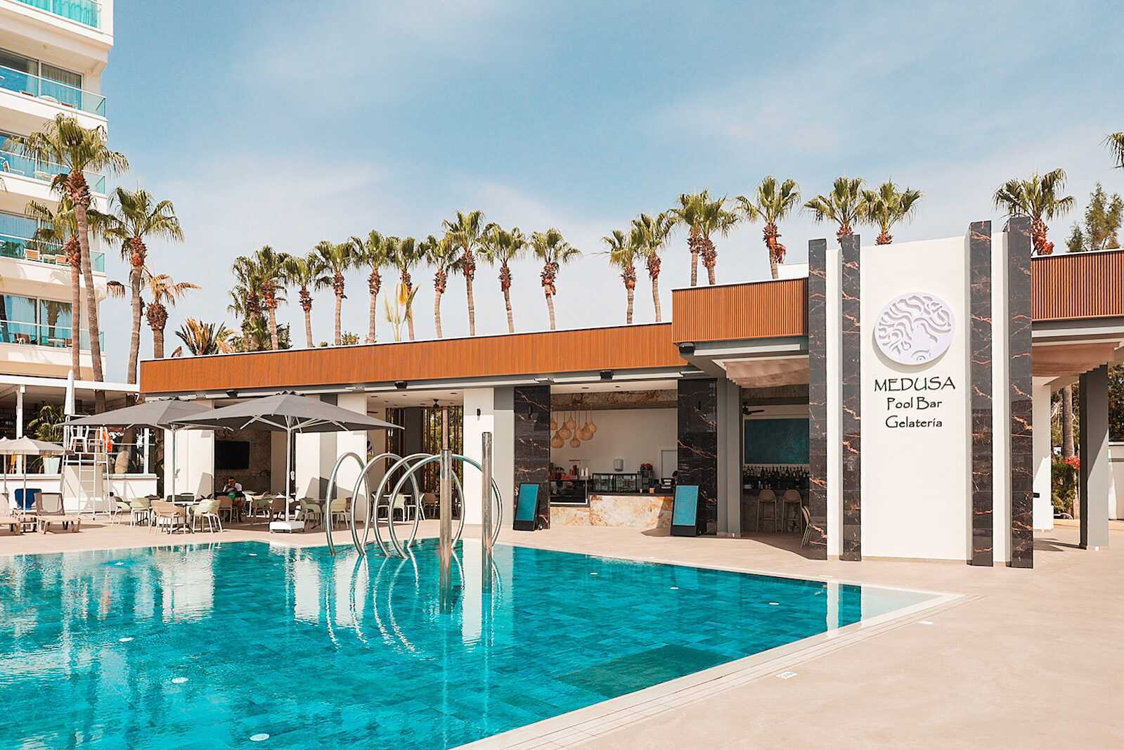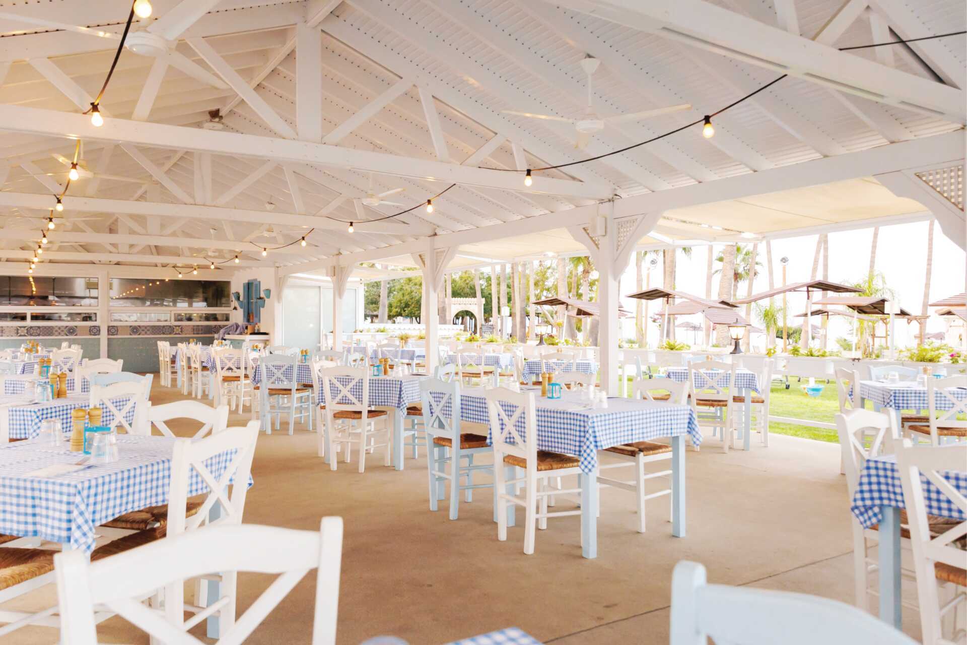 Hotellet har buffetrestauranten Alkion og tre á la carte-restauranter, H Taverna, Argo og Abalone. Der er også en grillrestaurant, Stonegrill, og sushirestauranten Seaweed. I hotellets have er der en traditionel café, To Kafeneion, som serverer kaffe, cypriotisk bagværk og ouzo. Isbar/crêperie. Bar og loungebar. Poolbaren tilbyder snacks, lette måltider og is.