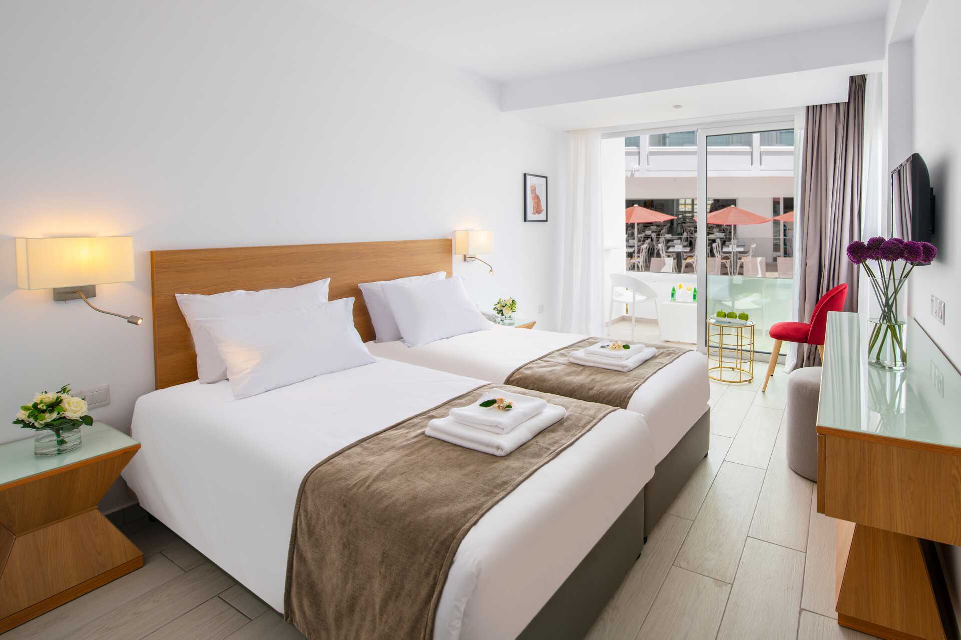 Superior-værelser med balkon, nogle med pooludsigt, nogle med delvis havudsigt og nogle med havudsigt. En dobbeltseng eller to enkeltsenge. Mulighed for ekstra opredning i fold ud-seng. Gratis wifi, aircondition og deponering. Der er køleskab. El-kedel, kaffe og te. Tv med internationale kanaler. Strygejern og strygebræt. Hårtørrer Badeværelse med bruser og toilet. Rengøring 7 gange om ugen.