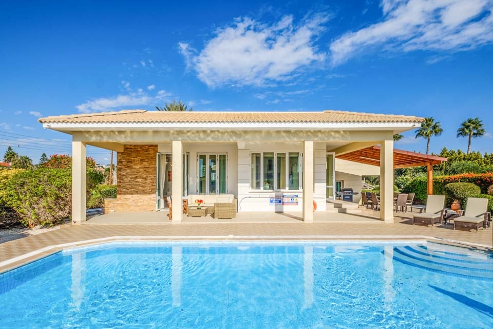 Velkommen til Villa Anastel, en charmerende ejendom beliggende i udkanten af Protaras, tæt på Cyclops Cave, Konnos Strand og et udvalg af restauranter. For sjove dage ude kan du tage til den nærliggende Ayia Napa med dens travle barer, forlystelsesparker, søfartsmuseum og strandpromenade. Selve villaen ligger på en generøs grund, omgivet af en flisebelagt terrasse, eksotiske buske og stedsegrønne buske. Poolen ser indbydende ud på en varm sommerdag, og med sine 11 x 5 m er den den ideelle størrelse til at svømme et par baner inden en frokost under den skyggefulde terrasse. Hvis du foretrækker selskabet af en god bog, er de bløde sofaer udenfor det ideelle sted til den ultimative afslapning.