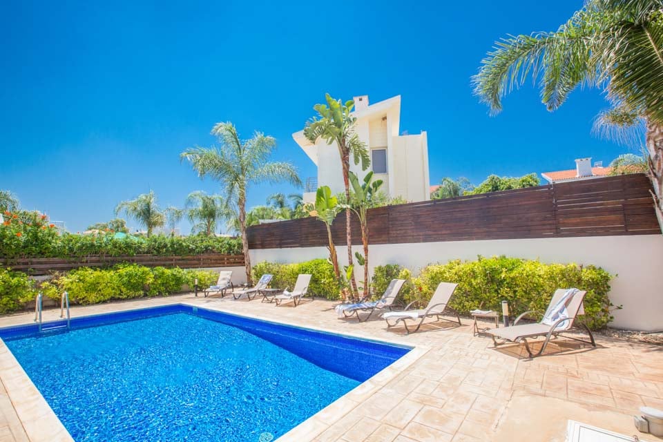 Villa Delfini 27 er det perfekte valg for alle, der ønsker en afslappende ferie tæt på den travle ferieby Protaras. Denne attraktive villa med tre soveværelser har et moderne interiør med åben stue, fuldt udstyret køkken og spiseplads. På første sal finder du tre rummelige soveværelser, et med ensuite, og et familiebadeværelse. Udenfor er der et stort, attraktivt privat poolområde med rigelig plads til udendørs spisning på afslappede sommeraftener.