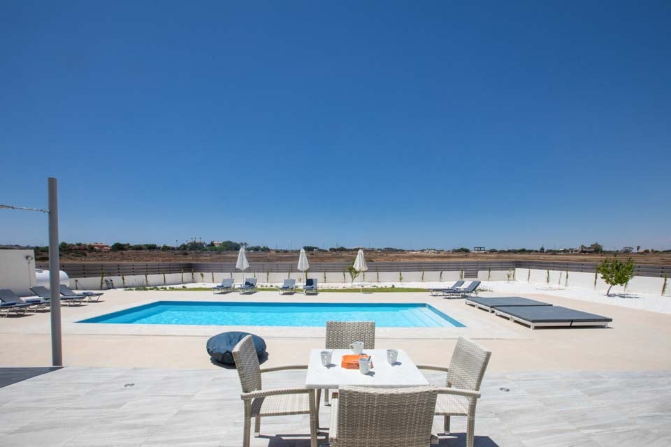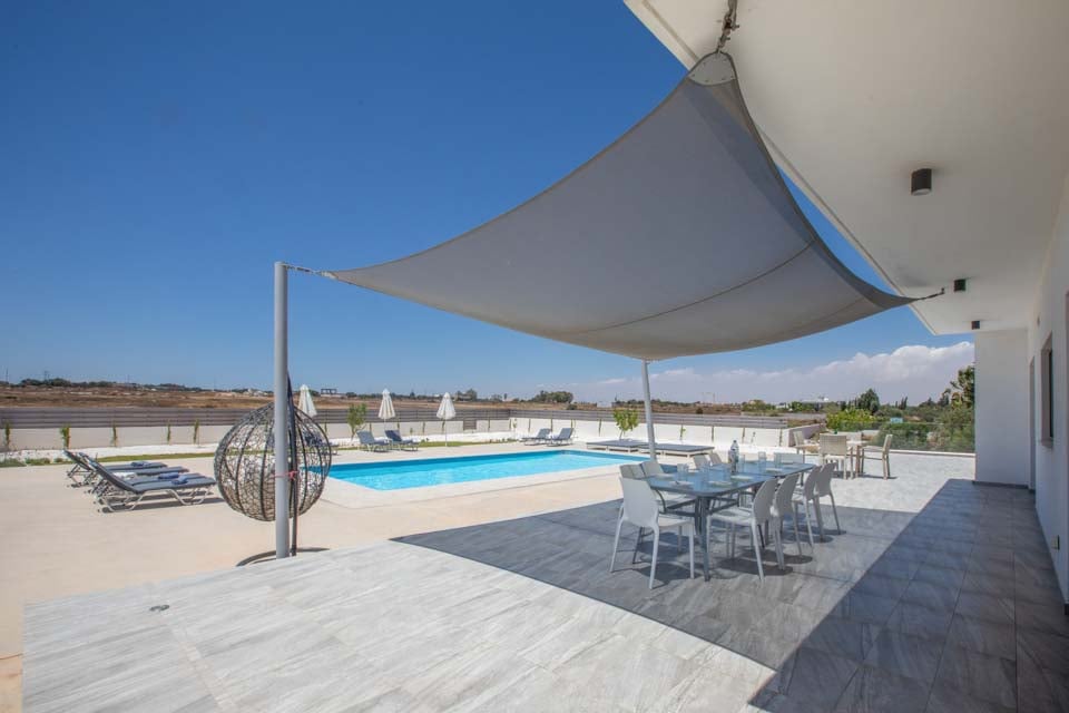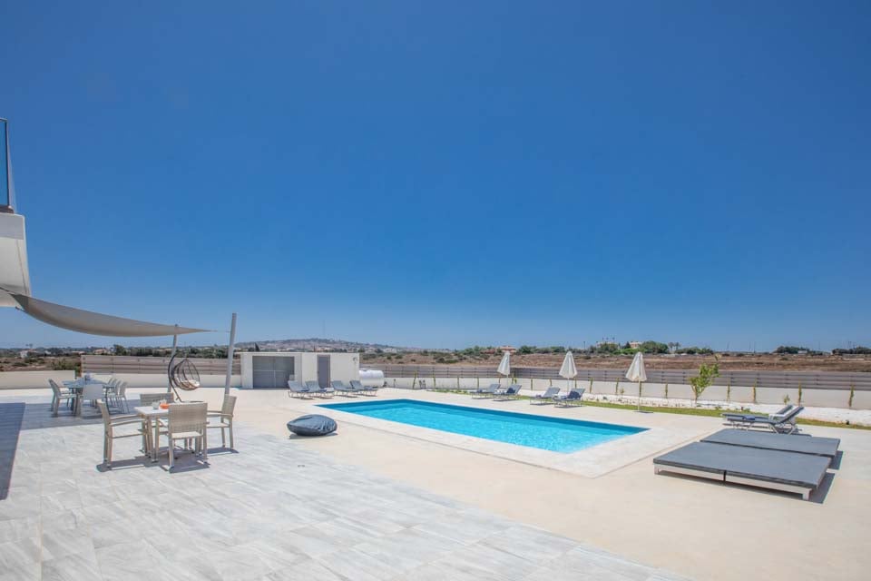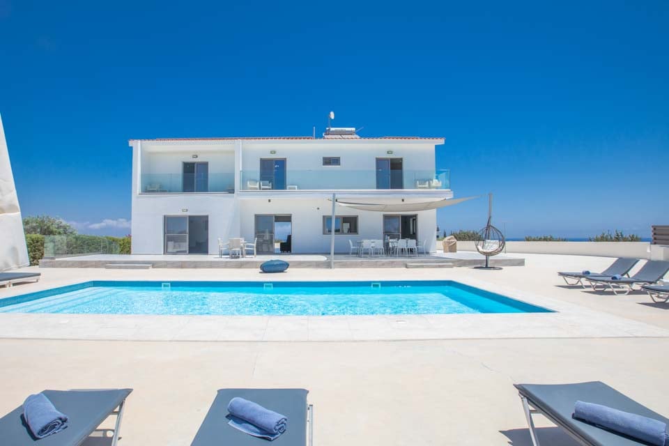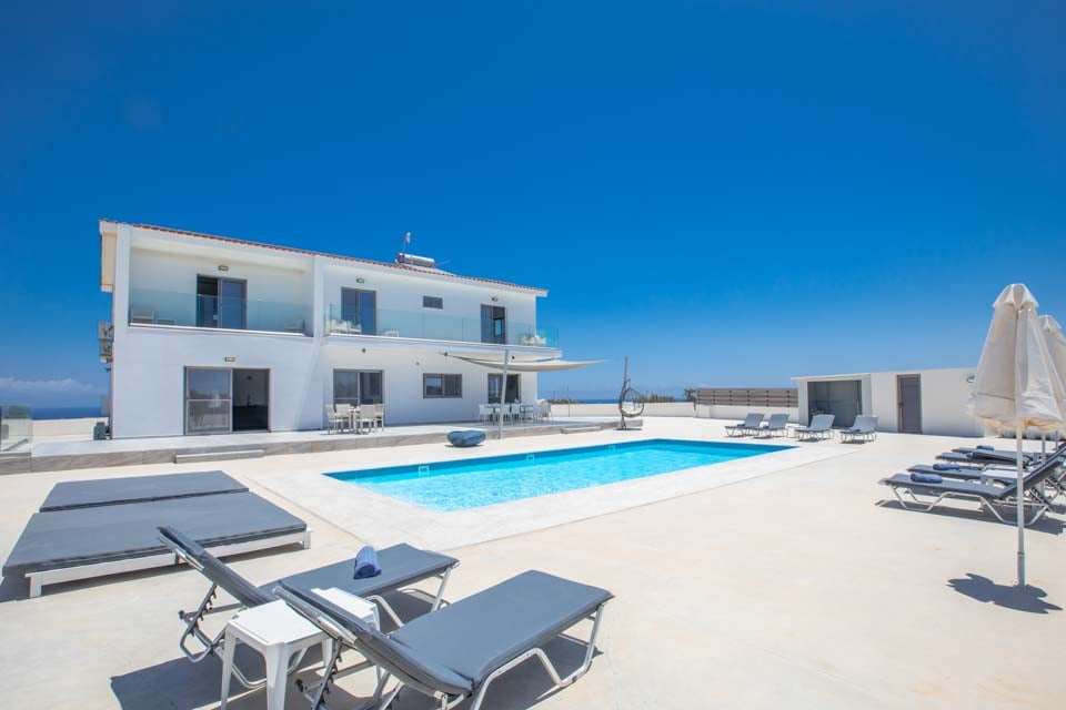 Villa Demeter er ideel til vennegrupper eller familier og har et moderne køkken og spiseplads, der fører til en åben stue med rigelig siddeplads. Døre fra stuen fører ud til den smukke åbne terrasse og poolområde med uforstyrret udsigt hele vejen rundt. Der er et stort udendørs spiseområde, som er perfekt til afslappede måltider i den cypriotiske sol. I stueetagen finder du også et af de seks soveværelser og et stort badeværelse med bruseniche.