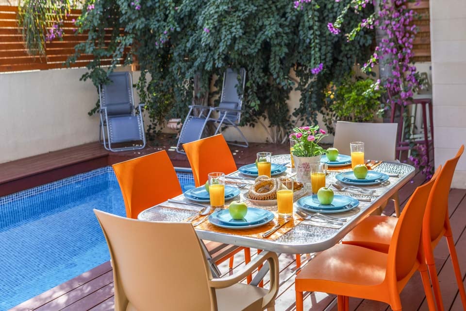 Denne villa ligger i et for det meste fladt område. For at komme til villaen er der en 90 cm bred sti. Hoveddøren har en bredde på 74 cm. Døren til terrassen er 67 cm bred, terrassen er flad med trædæk. Der er 4 trin ned til poolen. Døren til opholdsstuen er 90 cm bred, døren til køkkenområdet er 64 cm bred. Alle soveværelser er placeret på første sal. Der er 17 trin op til første sal, den bredeste soveværelsesdør er 74 cm, og døren til brusebadet er 67 cm bred. *Bemærk venligst, at selvom vi har gjort alt for at sikre, at de givne oplysninger er nøjagtige, kan der forekomme fejl, og hvis du har brug for mere specifik information om villaen, er du velkommen til at kontakte os.