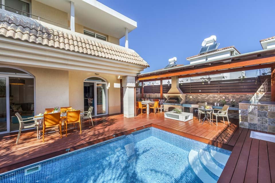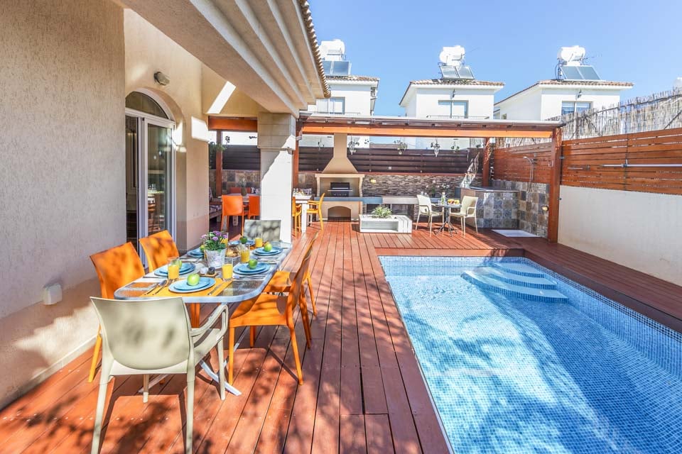Træd udenfor til din egen oase, hvor et murstensgrillområde venter, perfekt til at nyde kulinariske lækkerier udendørs. Villaens charme strækker sig til en forfriskende privat pool, der inviterer dig til at sole dig i Protaras' solbeskinnede ro.