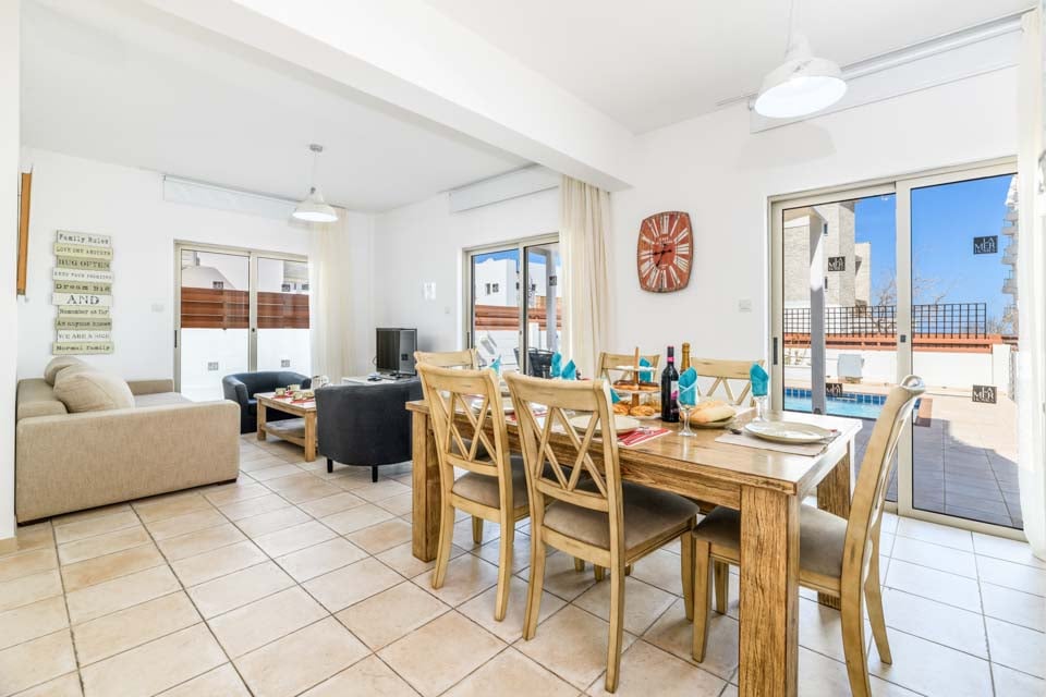 Villa Sunrise Bay 2 ligger i en førsteklasses beliggenhed. Villaen er en del af en lille klynge af nærliggende villaer, og disse kan bookes sammen for at imødekomme større bookinger. Disse villaer har plads til op til otte gæster og fire soveværelser, hvilket gør dem til et godt valg for dem, der ønsker ekstra plads på deres solferie. Du er inden for gåafstand af alle faciliteter og Protaras' hovedgade, hvilket giver ekstra bekvemmelighed.