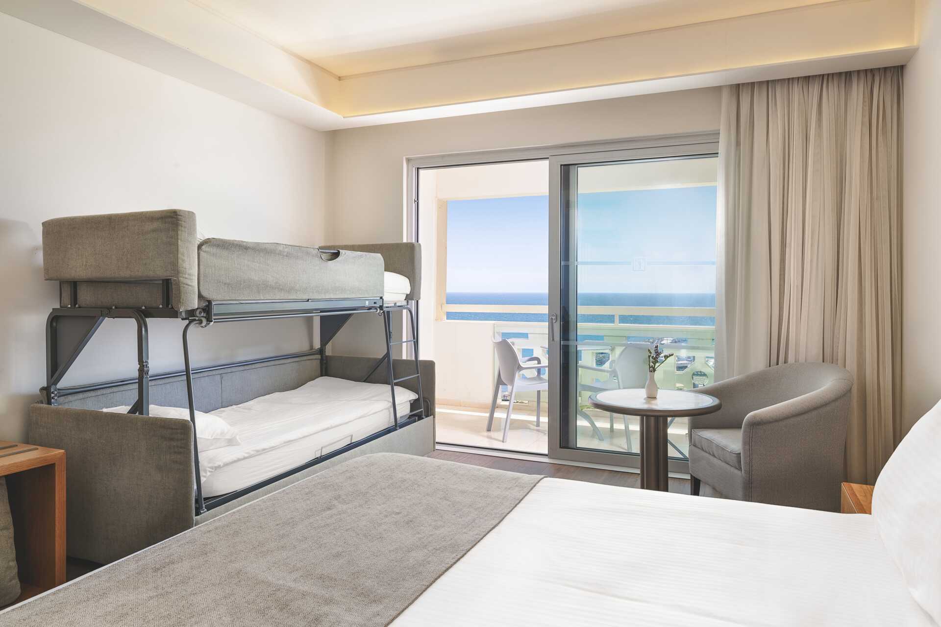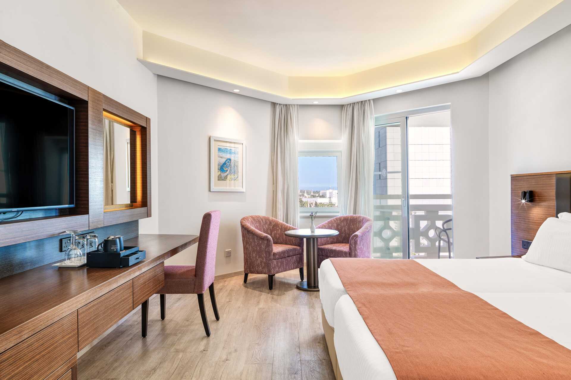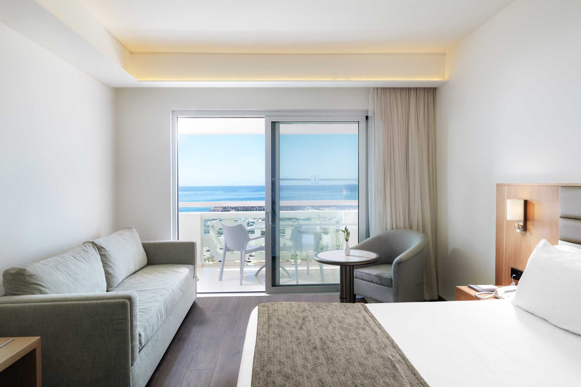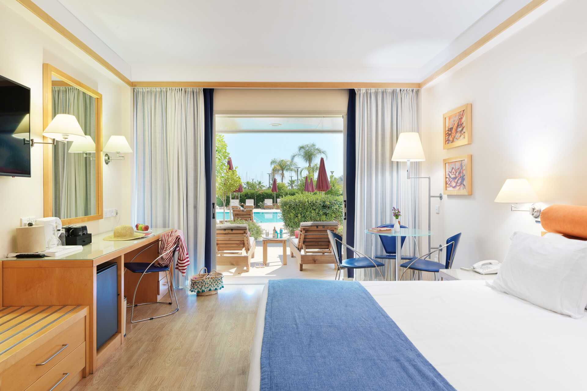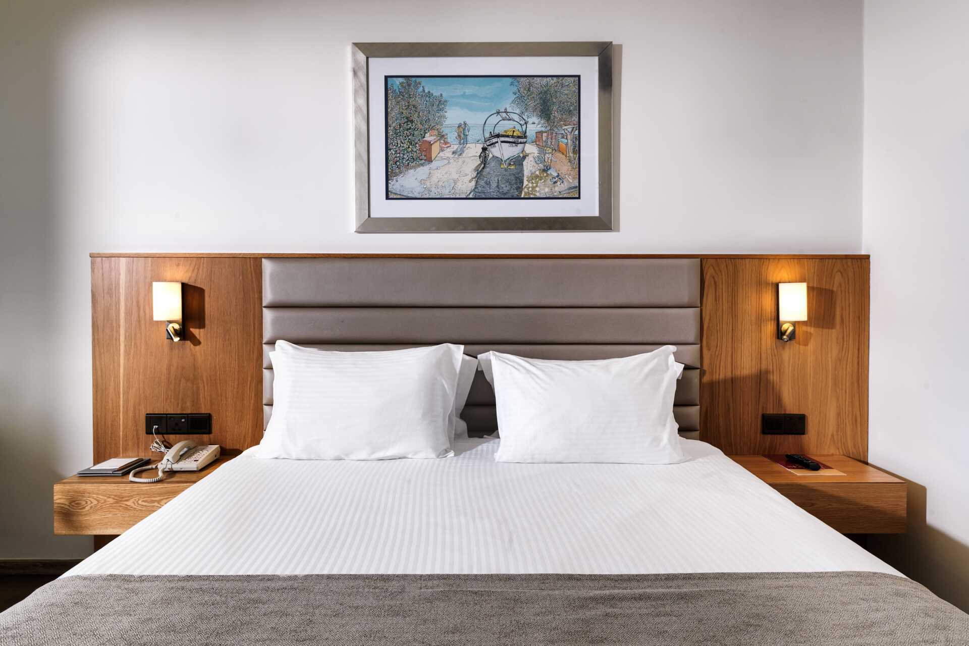 Dobbeltværelse uden udeplads eller med balkon, nogle med havudsigt og nogle med udsigt mod lagunen. En dobbeltseng eller to enkeltsenge. Mulighed for ekstra opredning i sovesofa eller i køjeseng. Gratis wifi, aircondition og deponering. Minibar mod betaling. El-kedel og kaffe/te. Tv med internationale kanaler. Badekåber og tøfler til to voksne. Hårtørrer. Badeværelse med badekar og toilet. Rengøring 7 gange om ugen. Børn under to år tæller med i det maksimale antal personer på værelset.