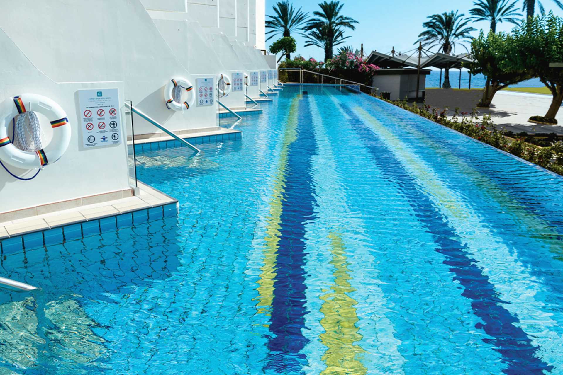 Junior-suite med privat pool, terrasse i stueplan med solstole og havudsigt. En dobbeltseng eller to enkeltsenge. Mulighed for ekstra opredning i sovesofa. Gratis wifi, aircondition og deponering. Køleskab. El-kedel og kaffe/te. Espressomaskine - kapsler er ikke inkluderet, men kan købes på hotellet. Tv med internationale kanaler. Strygejern og strygebræt. Hårtørrer. Badekåber og tøfler. Badeværelse med badekar, bruser samt toilet. Rengøring 7 gange om ugen.