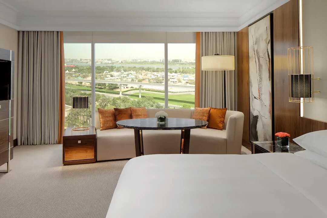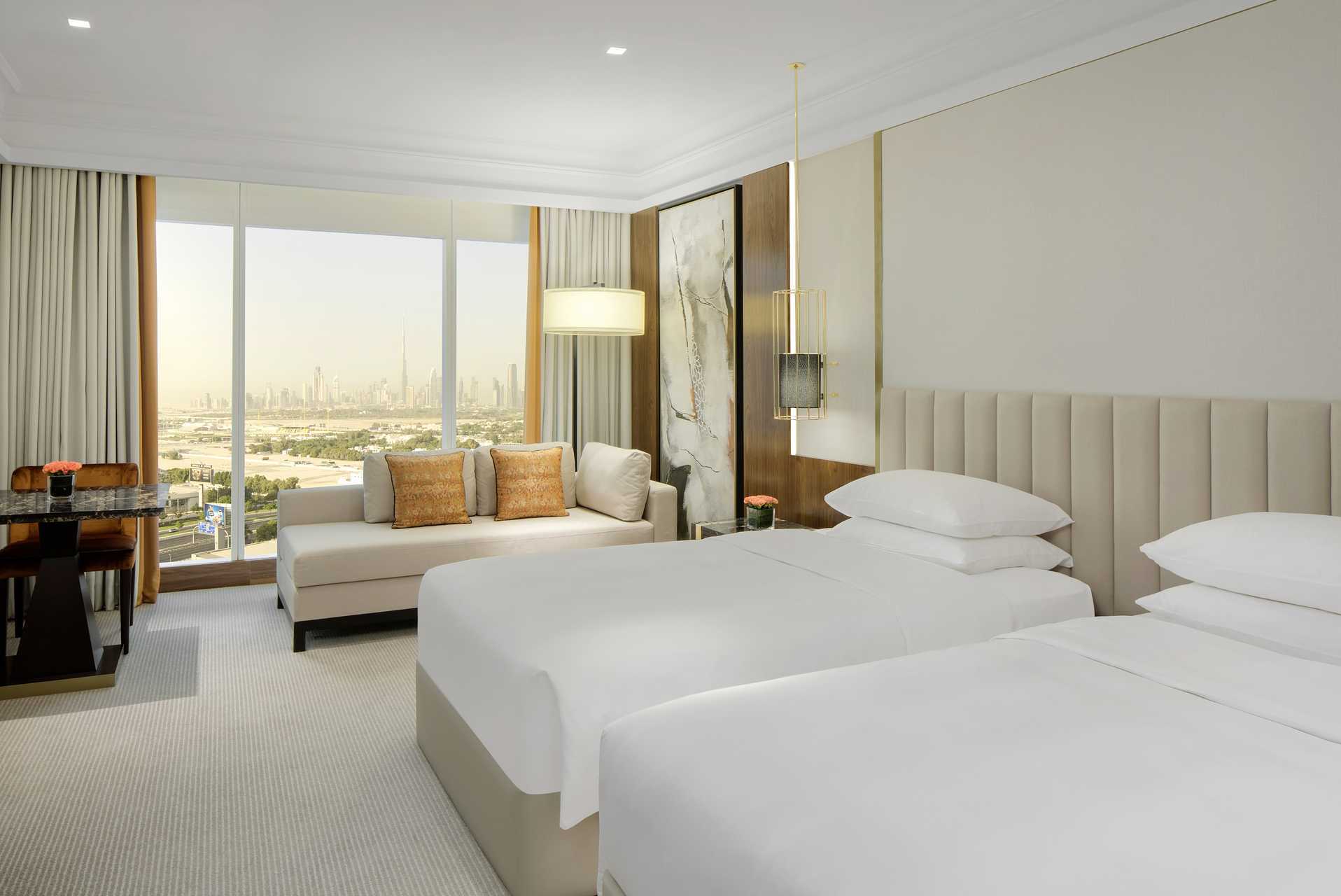 Deluxe-værelser, nogle med udsigt over Dubais skyline. Værelserne har ingen udeplads. En dobbeltseng eller to enkeltsenge. Mulighed for ekstra opredning i sovesofa. Gratis wifi, aircondition og deponering. Væg til væg-tæppe. Minibar. Kaffemaskine. Tv med internationale kanaler. Strygejern og strygebræt. Hårtørrer. Badekåber og tøfler. Badeværelse med badekar eller bruser samt toilet. Rengøring 7 gange om ugen. Børn under to år tæller med i det maksimale antal personer på værelset.