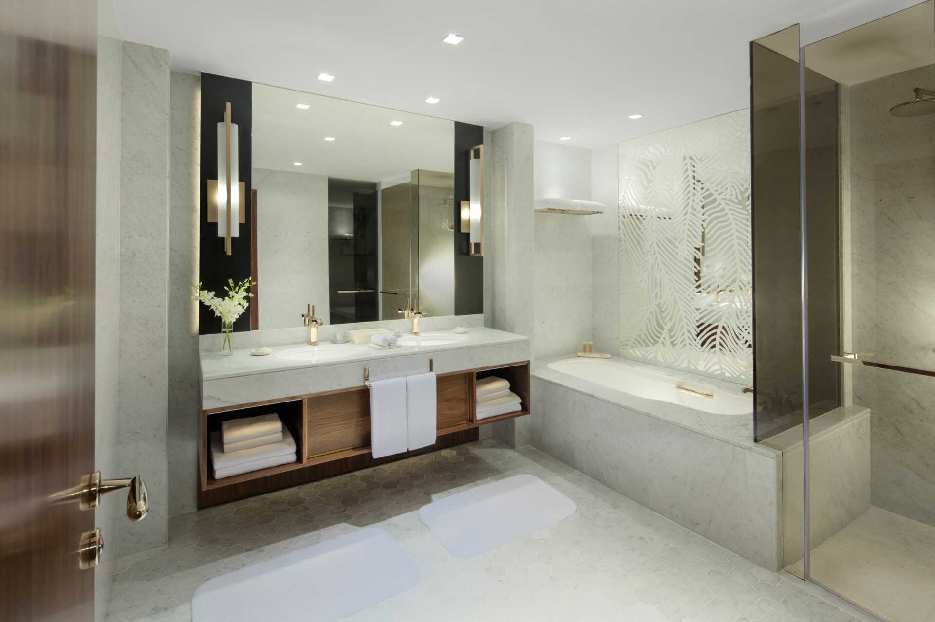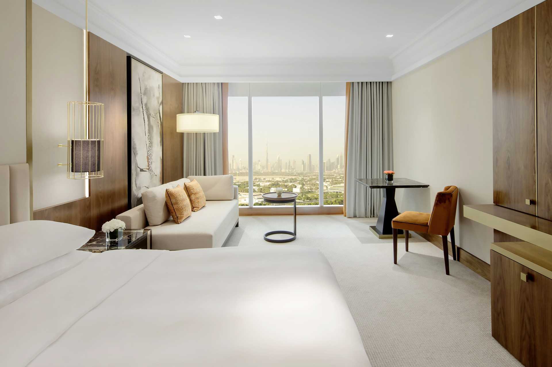 Club-værelser, nogle med udsigt over Dubais skyline. Værelserne har inge udeplads. En dobbeltseng eller to enkeltsenge. Mulighed for ekstra opredning i sovesofa. Gratis wifi, aircondition og deponering. Væg til væg-tæppe. Minibar. Kaffemaskine. Tv med internationale kanaler. Hårtørrer. Badeværelse med badekar og separat bruser og toilet. Rengøring 7 gange om ugen.
