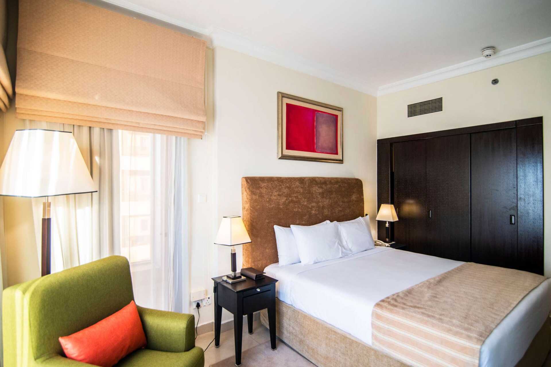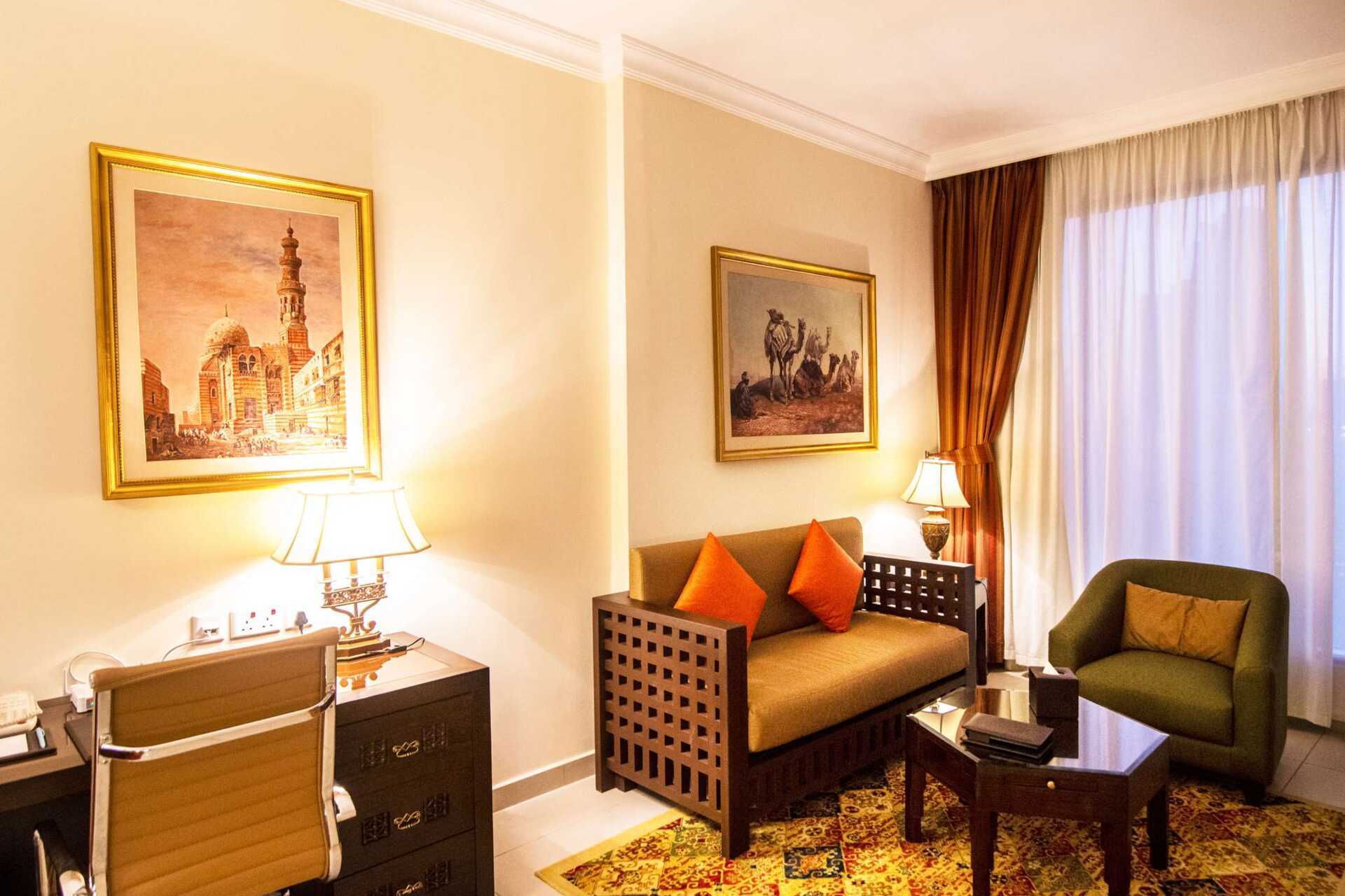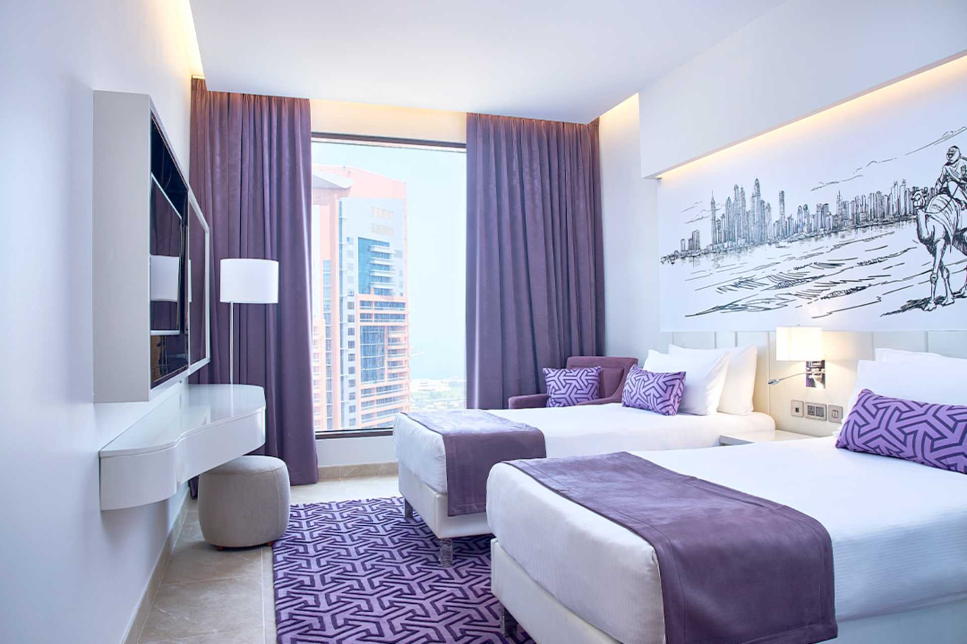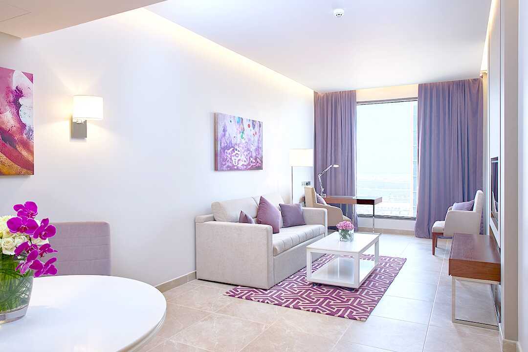 2-værelses suite med balkon, nogle med udsigt over byens skyline. 2-værelses suiten ligger på etage 28 eller højere - hotellet har 40 etager. To soveværelser og opholdsrum. Et soveværelse med dobbeltseng og et soveværelse med to enkeltsenge. Mulighed for ekstra opredning i fold ud-seng. Køleskab og el-kedel. Gratis wifi, aircondition og deponering. Tv med internationale kanaler. Hårtørrer. To badeværelser med badekar, bruser samt toilet. Rengøring 7 gange om ugen.