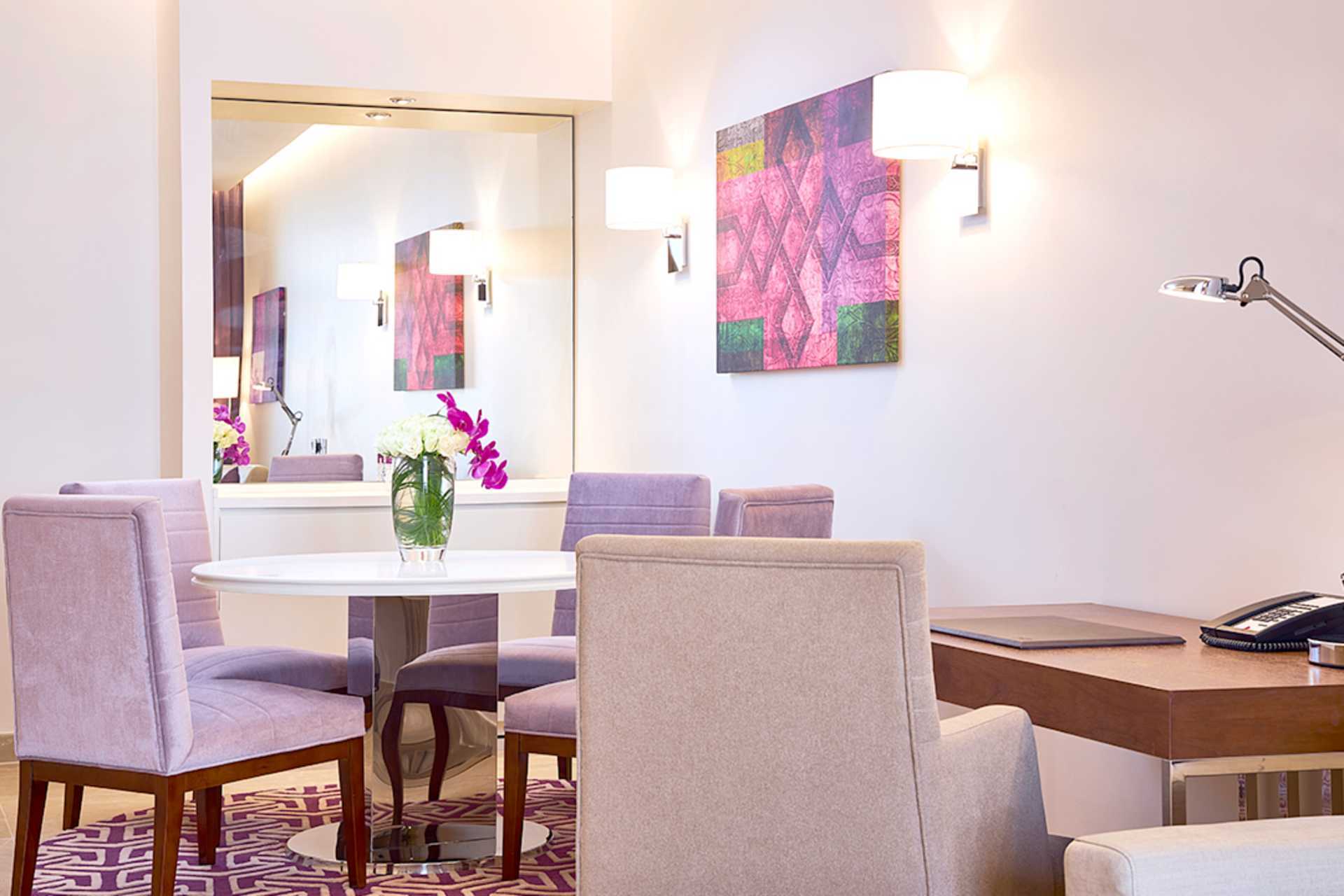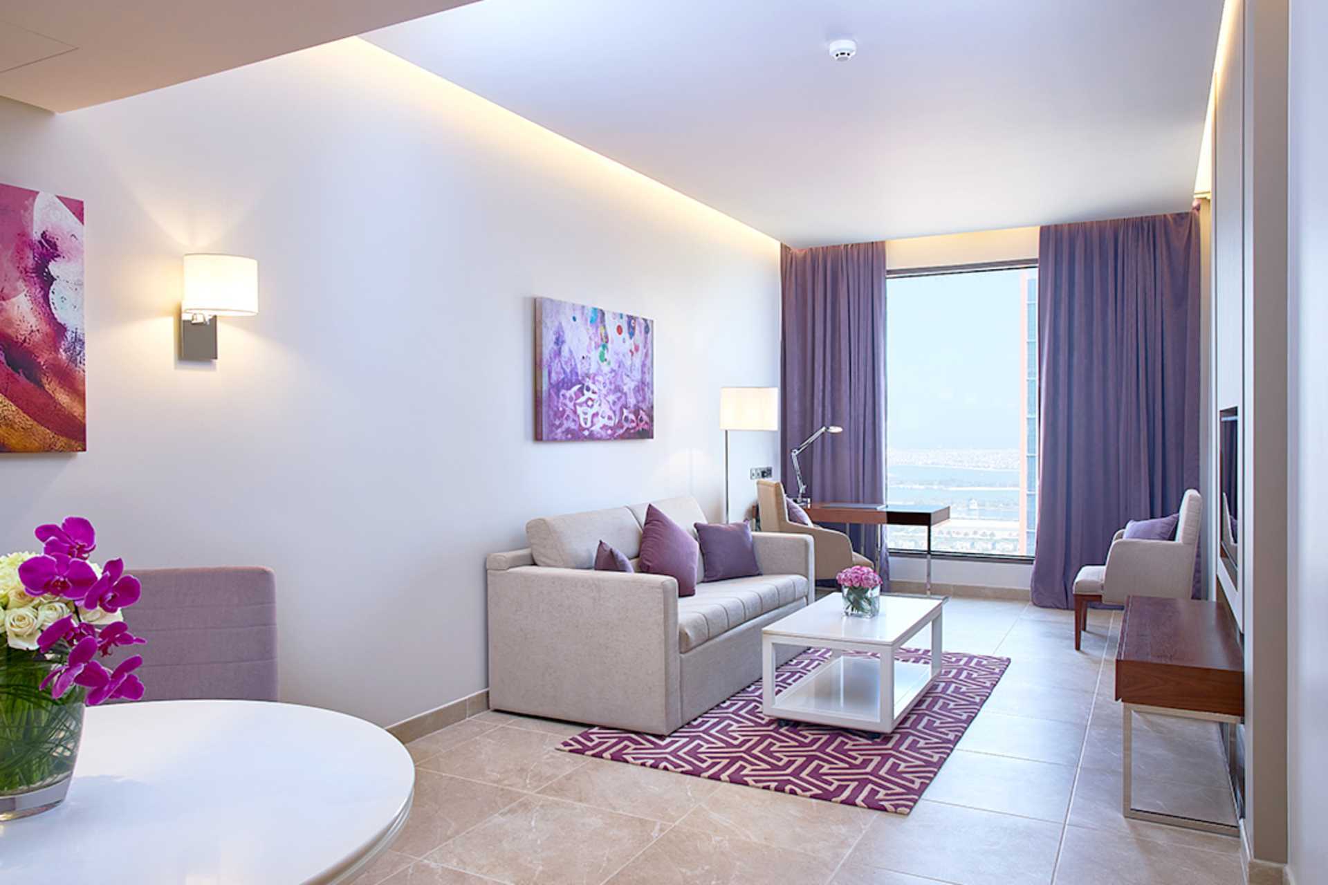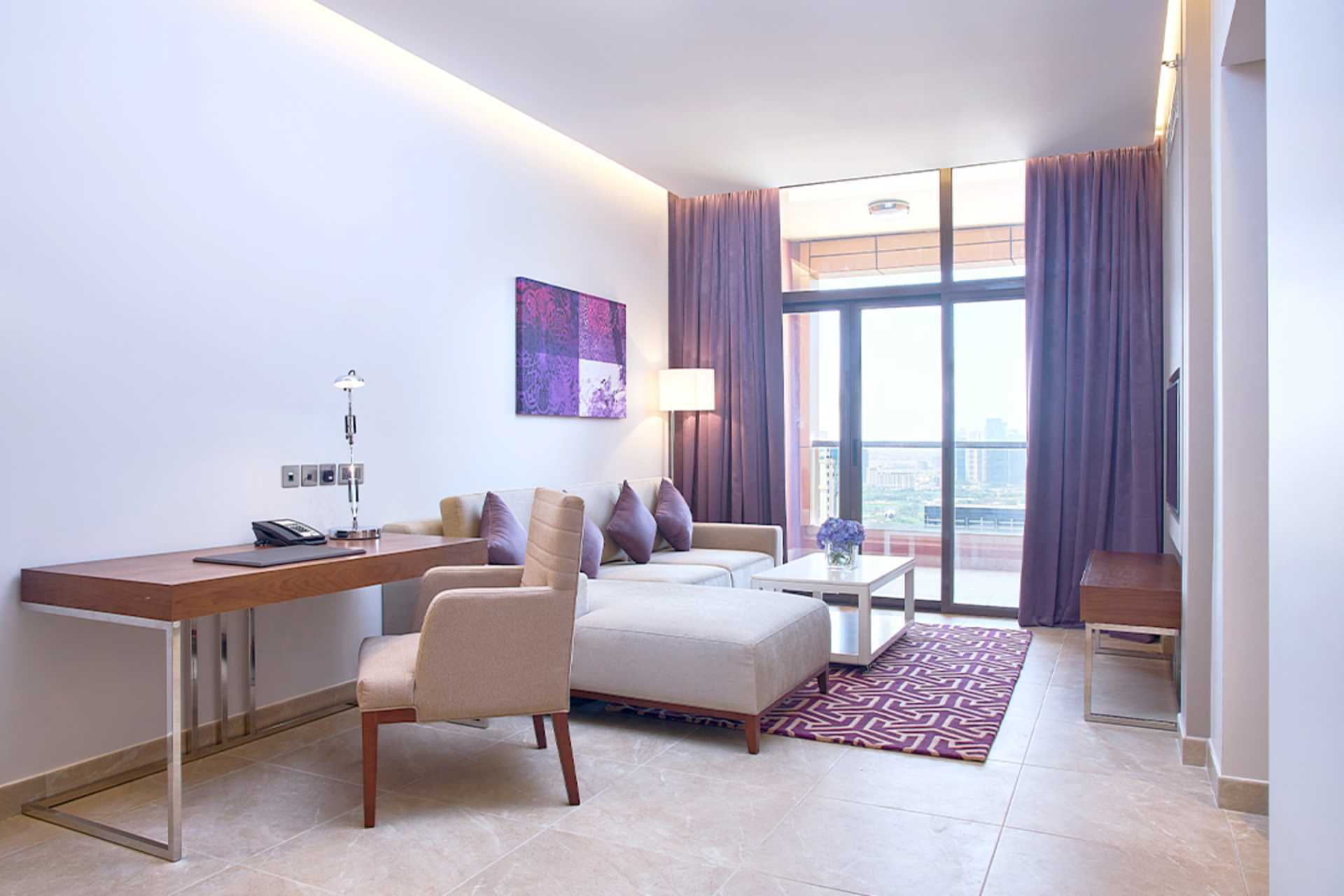 Suite med balkon, nogle med udsigt over byens skyline. Suiterne er fra etage 28 og opefter - hotellet har 40 etager. Soveværelse og opholdsrum. En dobbeltseng eller to enkeltsenge. Mulighed for ekstra opredning i sovesofa. Køleskab og el-kedel. Gratis wifi, aircondition og deponering. Tv med internationale kanaler. Hårtørrer. Badeværelse med badekar, bruser og toilet. Rengøring 7 gange om ugen.