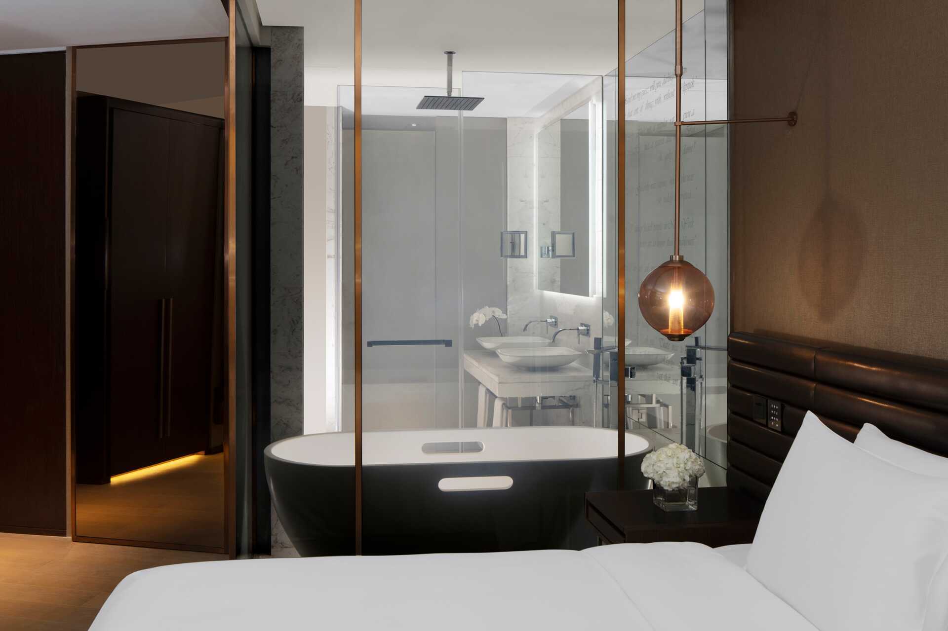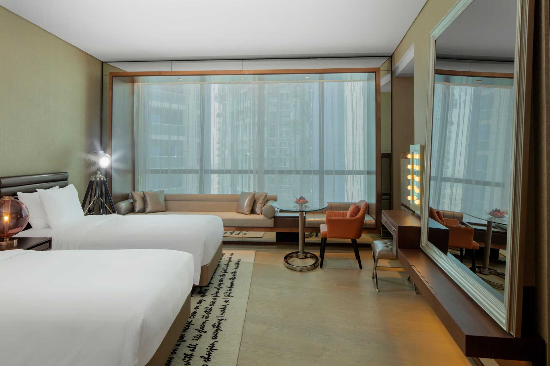 Dobbeltværelser uden udeplads, nogle har udsigt mod Dubai Downtown. En dobbeltseng. Separat siddeområde. Gratis wifi, aircondition og deponering. Minibar. El-kedel og kaffe/te. Nespresso-maskine. Tv med internationale kanaler. Strygejern og strygebræt. Badekåber og tøfler. Hårtørrer. Badeværelset, som har en glasvæg ud mod værelset, har badekar og separat bruser samt toilet. Rengøring 7 gange om ugen.