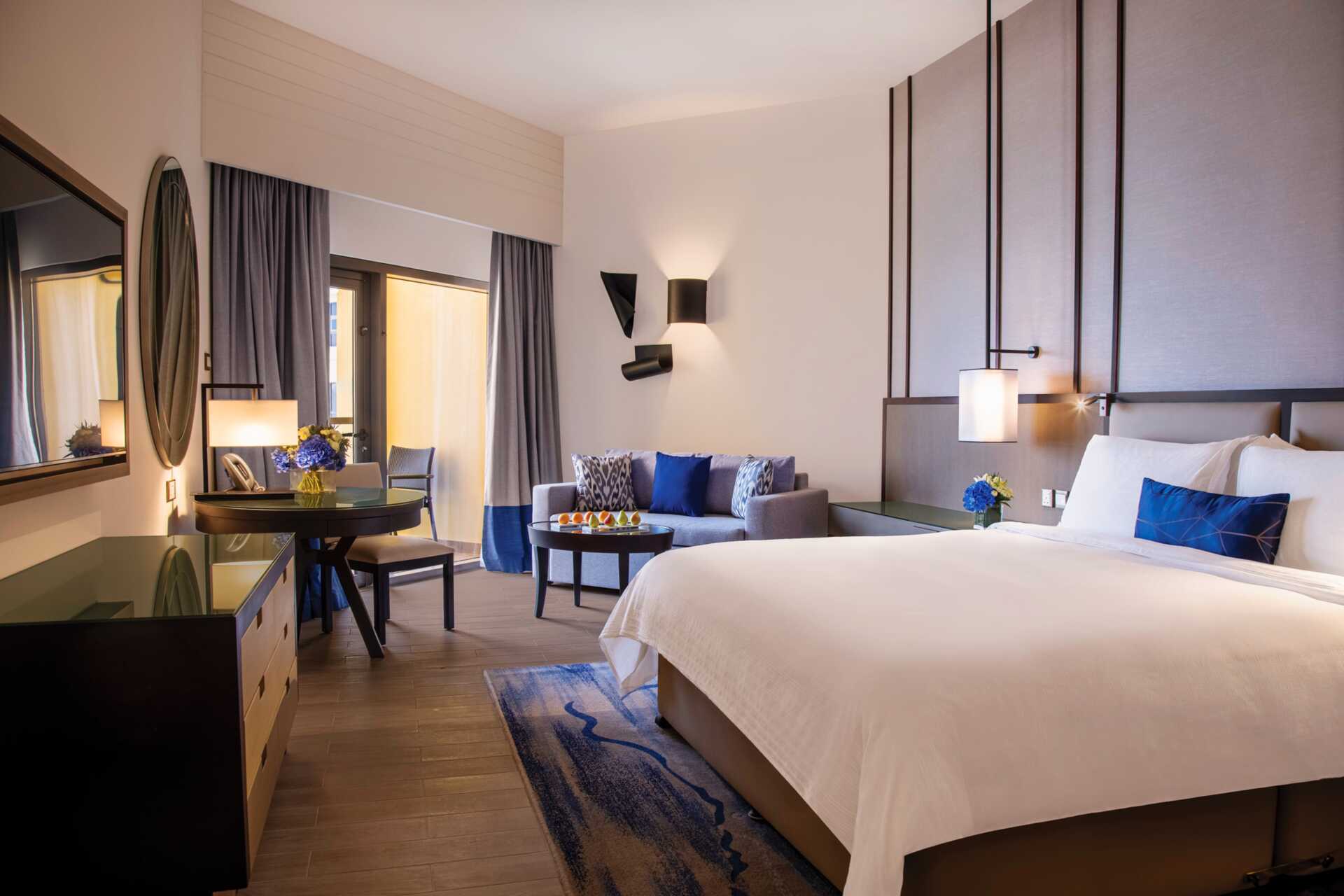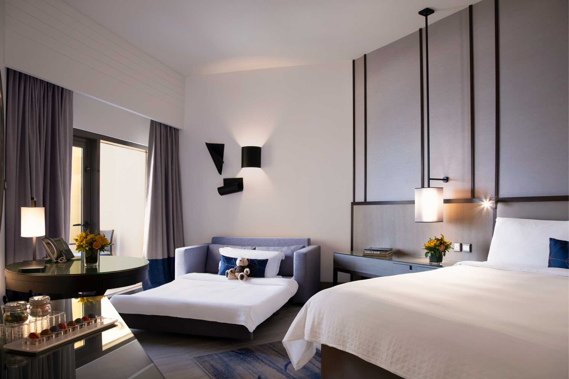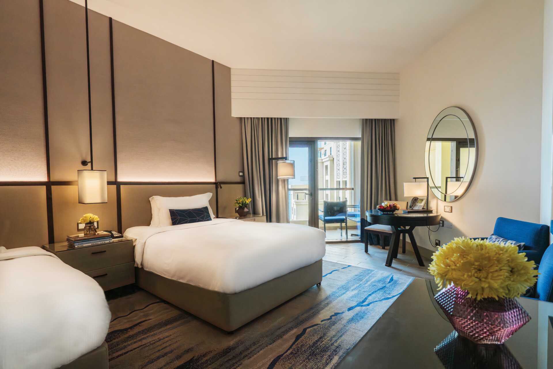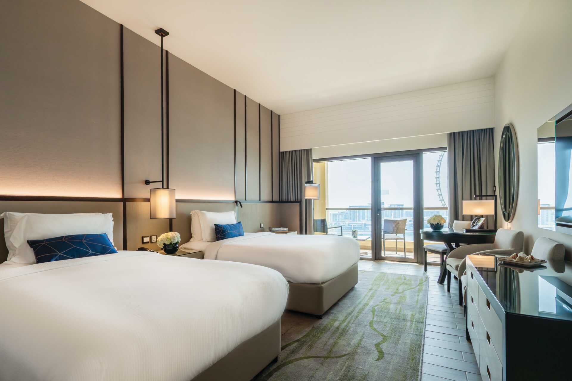 Deluxe-værelse med balkon og udsigt over Ain Dubai. En dobbeltseng eller to enkeltsenge. Mulighed for ekstra opredning i enkeltseng. Gratis wifi, aircondition og deponering. Minibar. El-kedel og kaffe/te. Badekåber. Hårtørrer. Badeværelse med badekar eller bruser samt toilet. Rengøring 7 gange om ugen. Børn under to år tæller med i det maksimale antal personer på værelset.