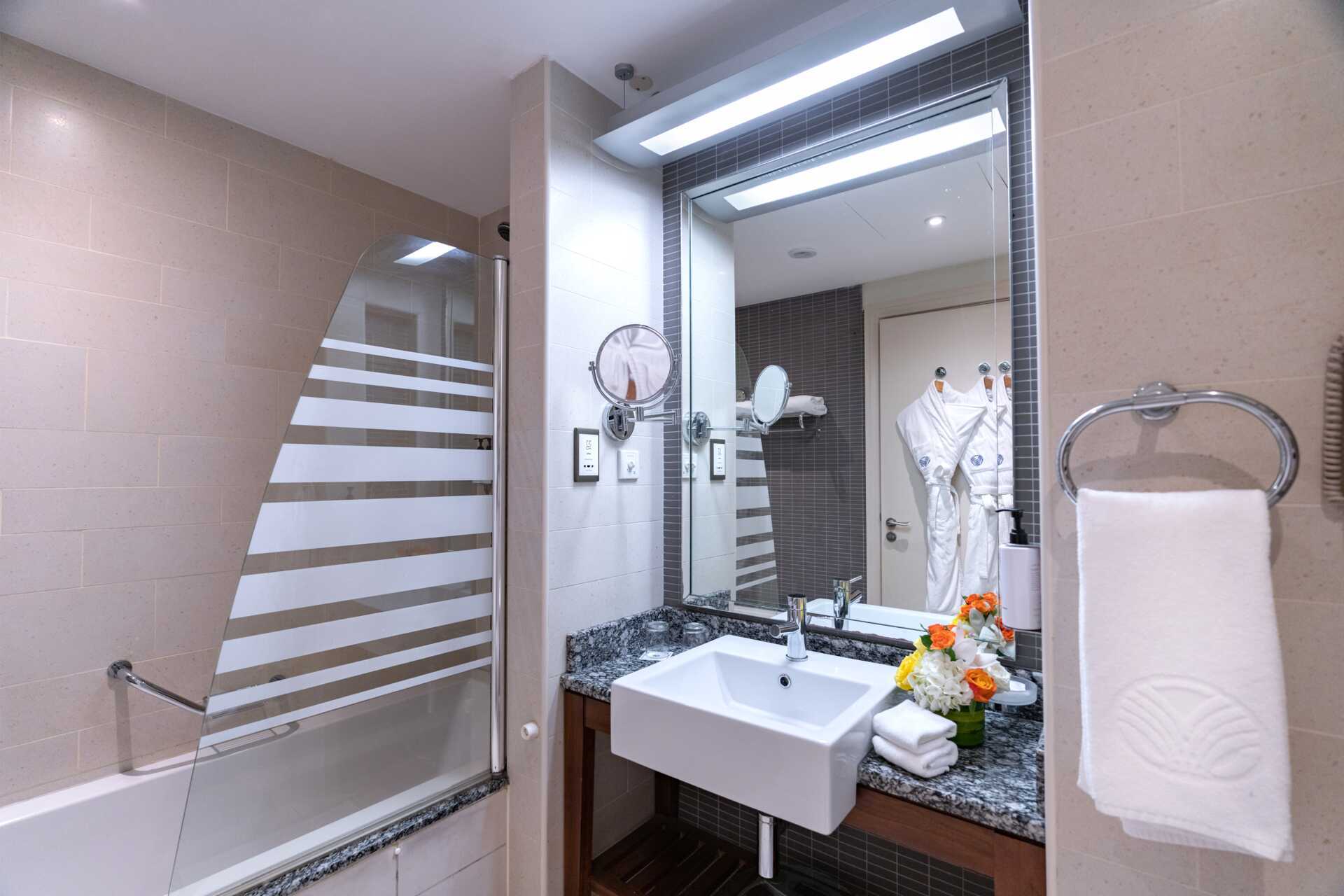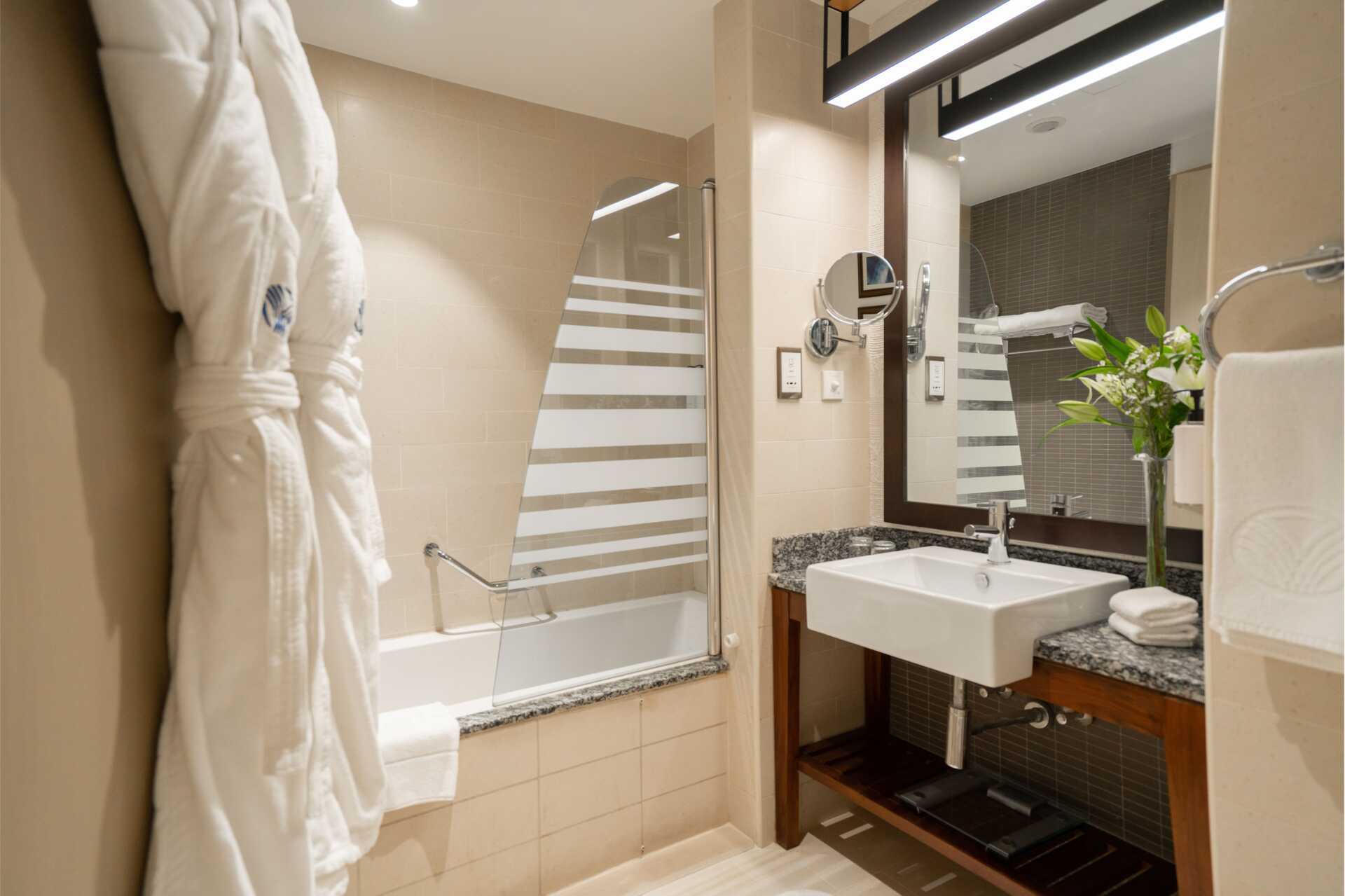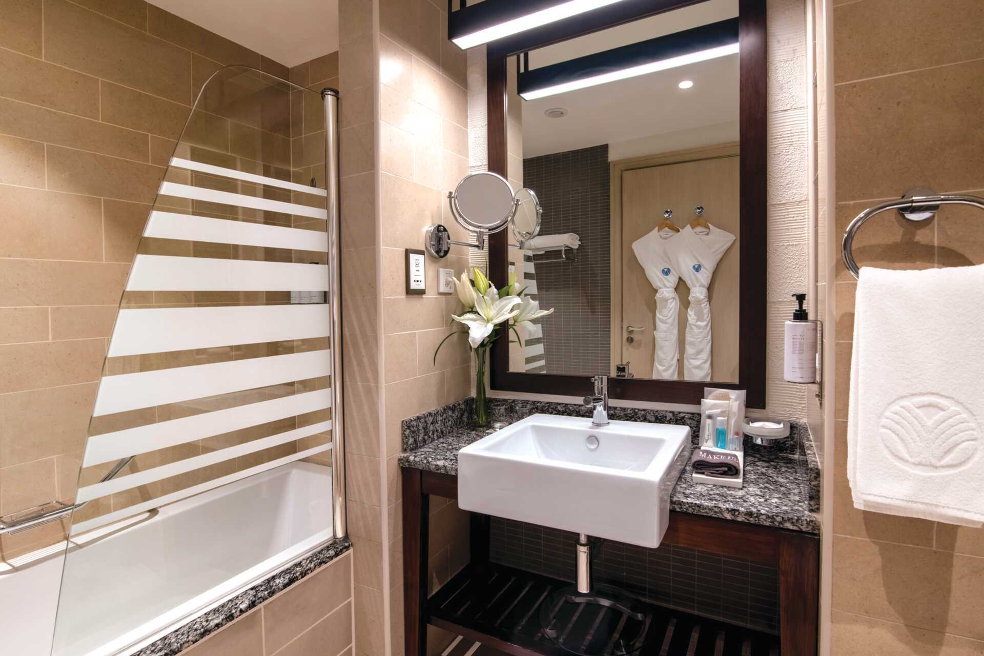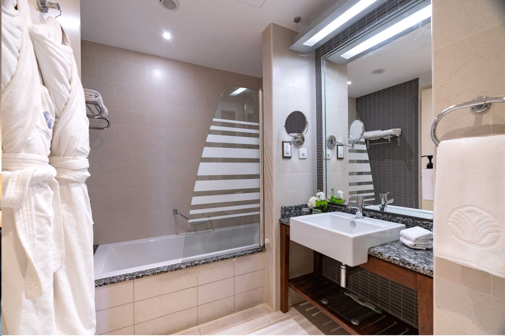 Deluxe-værelse med balkon og udsigt over Ain Dubai. En dobbeltseng eller to enkeltsenge. Mulighed for ekstra opredning i enkeltseng. Gratis wifi, aircondition og deponering. Minibar. El-kedel og kaffe/te. Badekåber. Hårtørrer. Badeværelse med badekar eller bruser samt toilet. Rengøring 7 gange om ugen. Børn under to år tæller med i det maksimale antal personer på værelset.