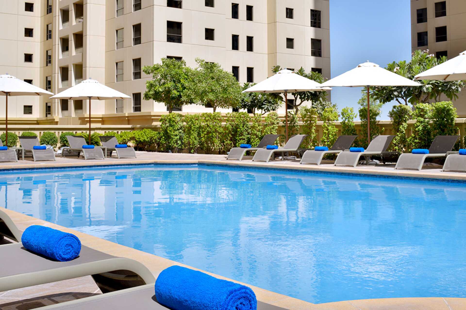 Sheraton The Walk, Dubai ligger i Dubais Jumeirah Beach-område, et stenkast fra den fine sandstrand og den berømte shoppinggade The Walk. Her findes et mindre poolområde med en pool samt solstole og parasoller. Poolhåndklæder indgår. Strandpakke med hynder, parasol og strandhåndklæde indgår.
